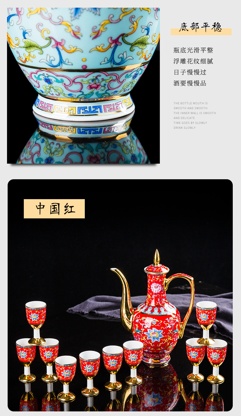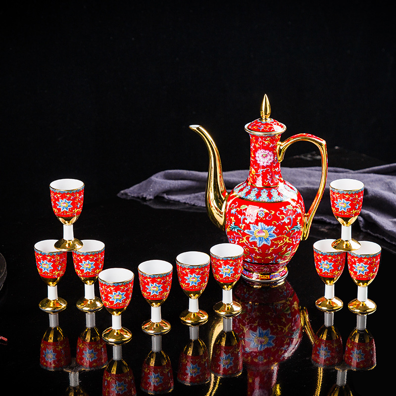 프놈펜 에나멜 와인 세트 가정용 궁전 스타일 Jingdezhen 세라믹 와인 냄비 컵 선물