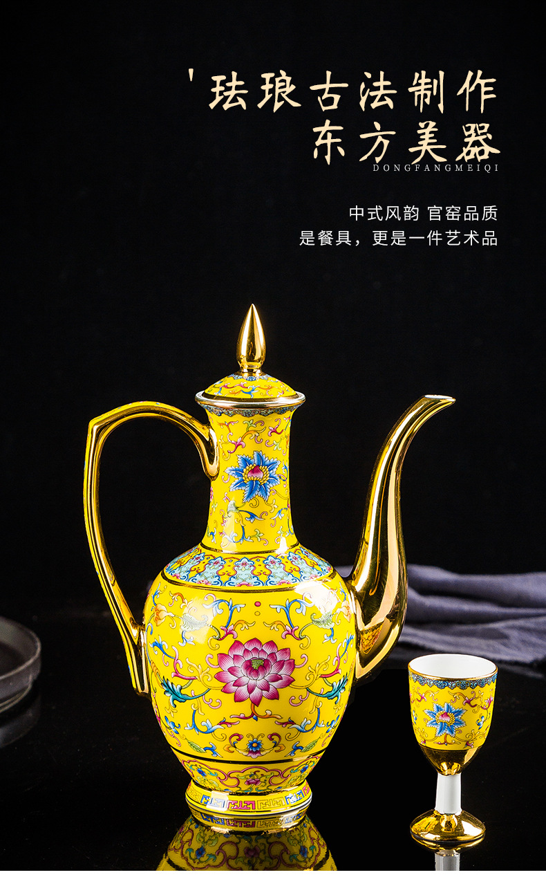 프놈펜 에나멜 와인 세트 가정용 궁전 스타일 Jingdezhen 세라믹 와인 냄비 컵 선물스토어 가기
