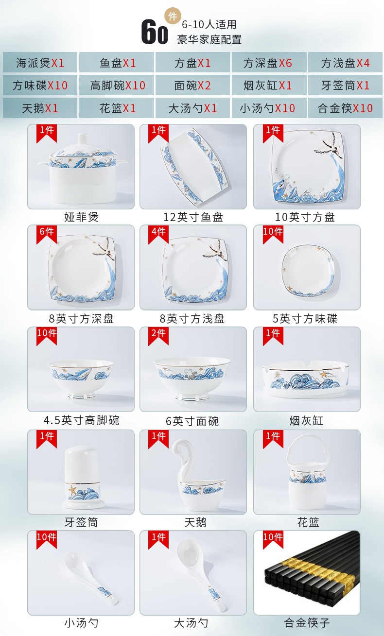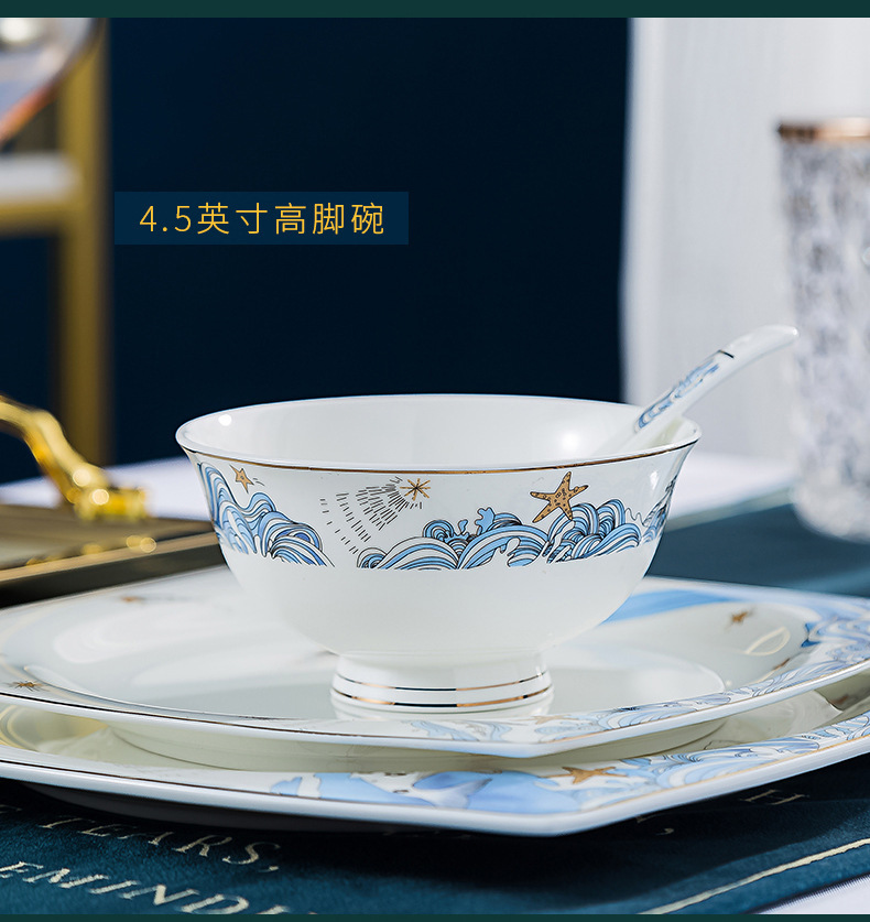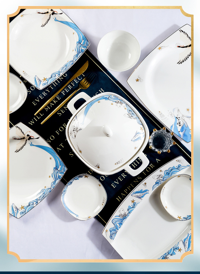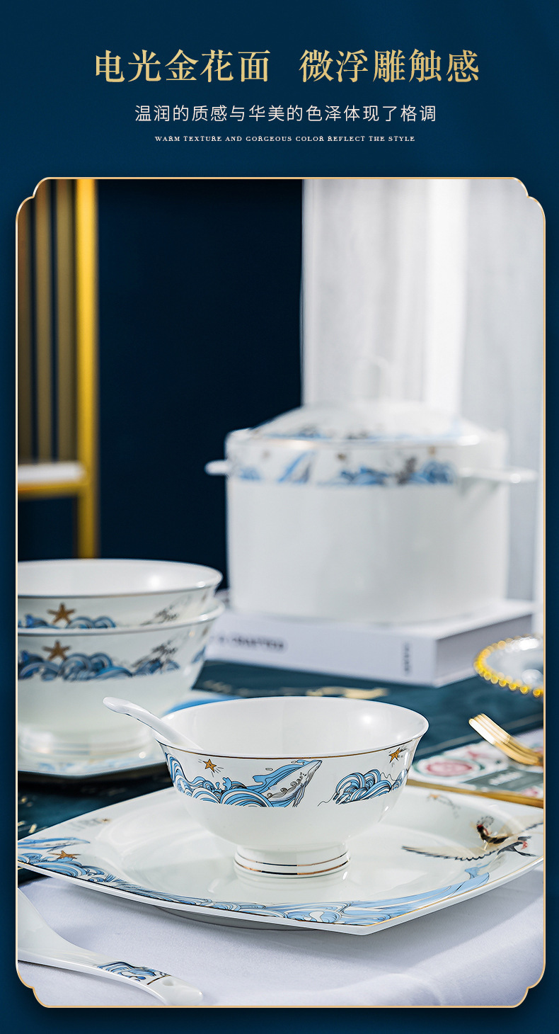 Jingdezhen 세라믹 식기 요리 세트 가정용 광장 간단한 뼈 중국 식기 식기 선물