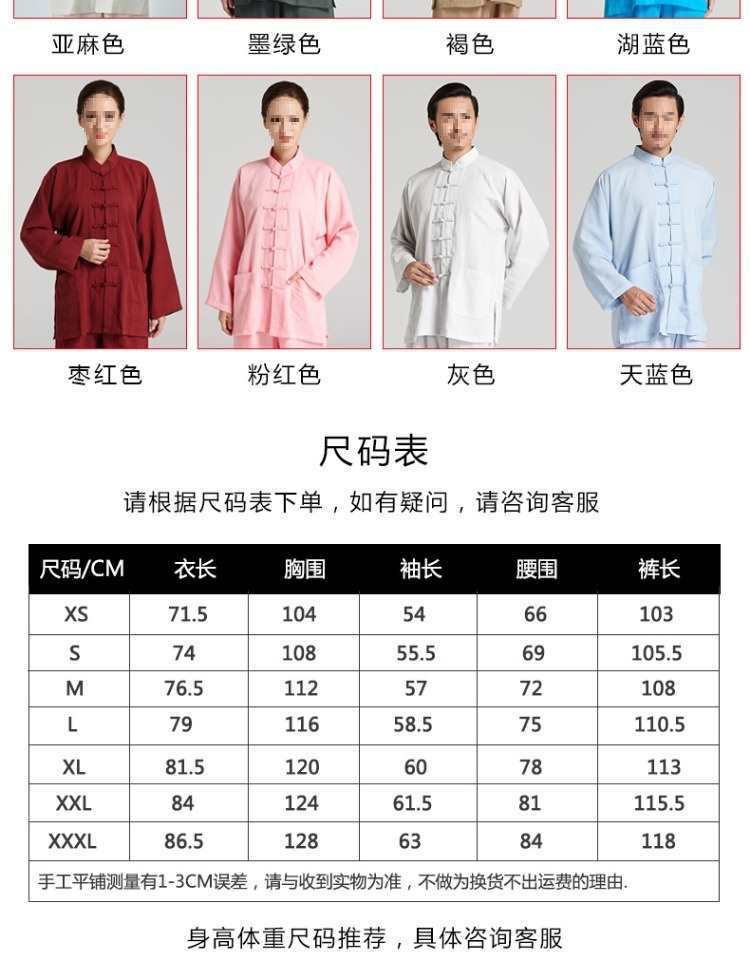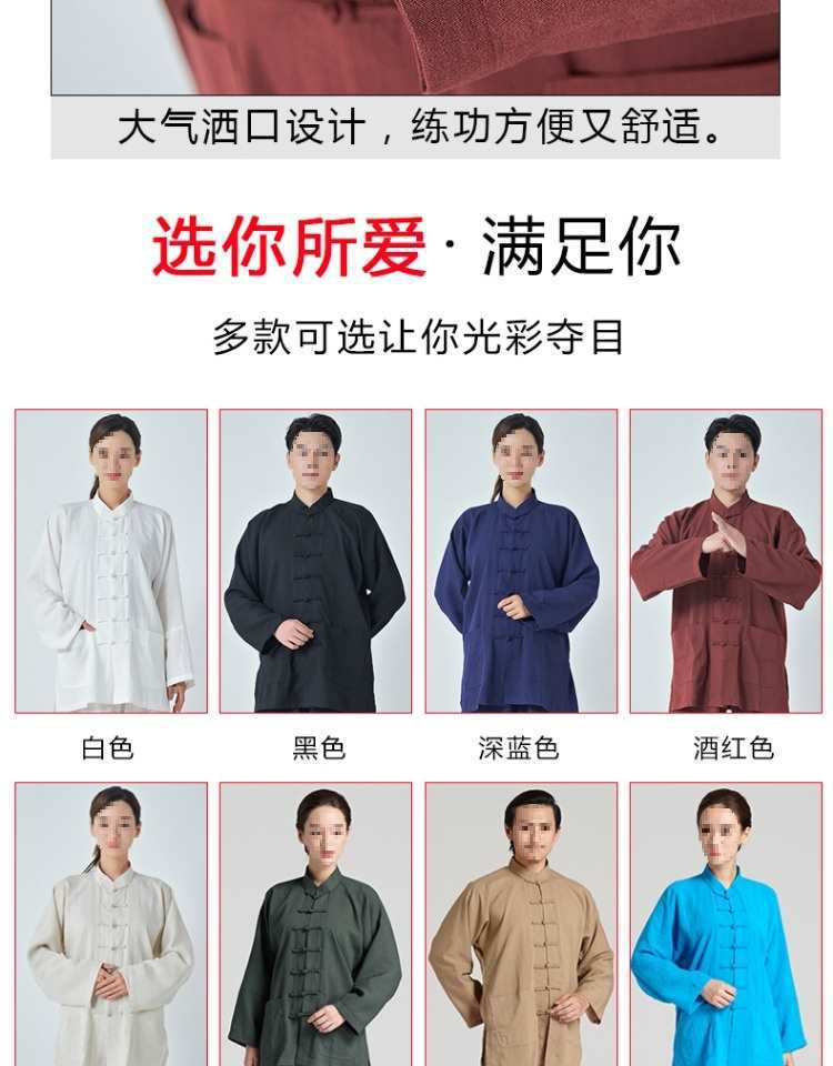 Taiji 의류 면화 및 린넨 2024 봄 새로운 남성과 여성의 Taijiquan 의류 Baduanjin 중국식 무술 훈련 의류 세트