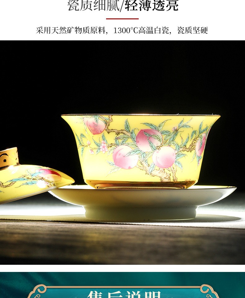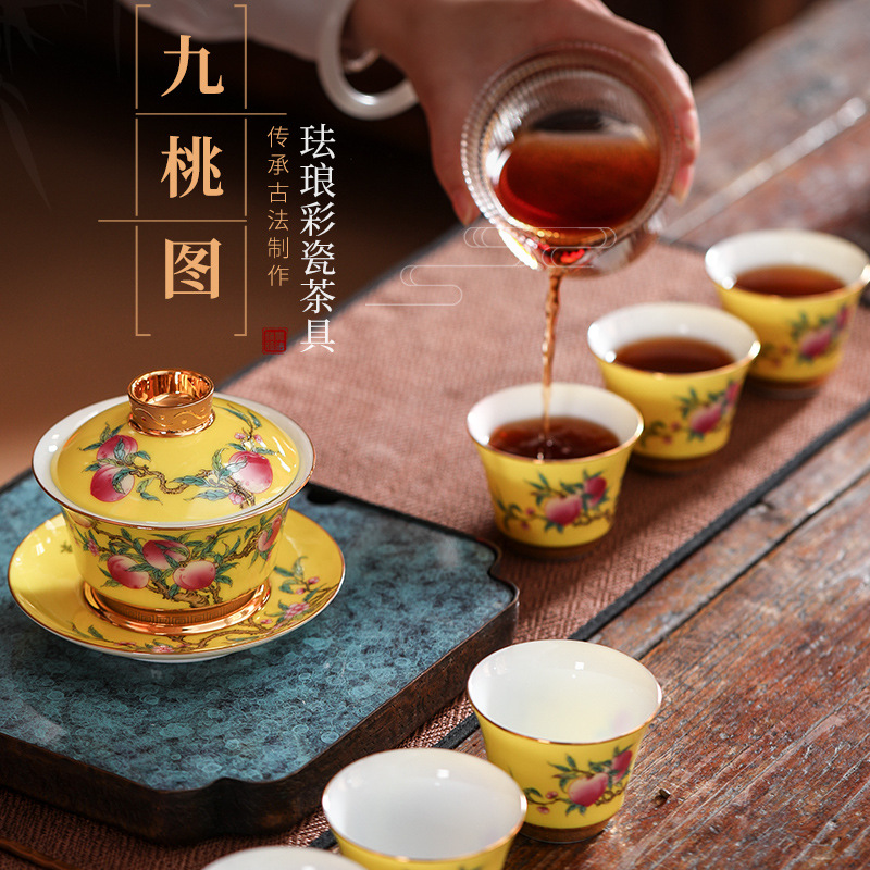 Jingdezhen 세라믹 차 세트 세트 가정용 쿵푸 차 세트 티 컵 티 볼 골드 에나멜 컬러 3 인재 커버 볼 세트스토어 가기