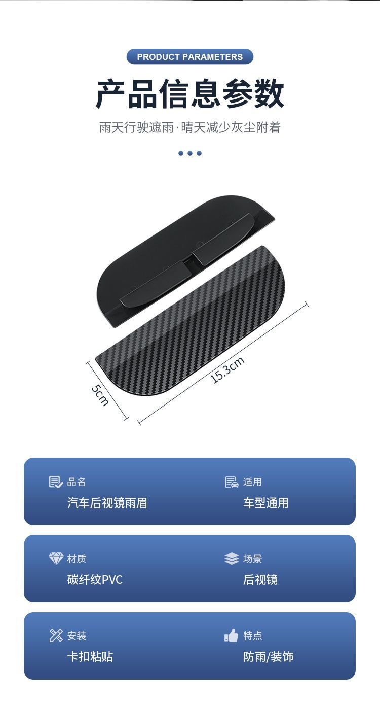 자동차 백미러 레인브로우 클립형 탄소섬유 반사 백미러 차창 방수 방진 레인커버