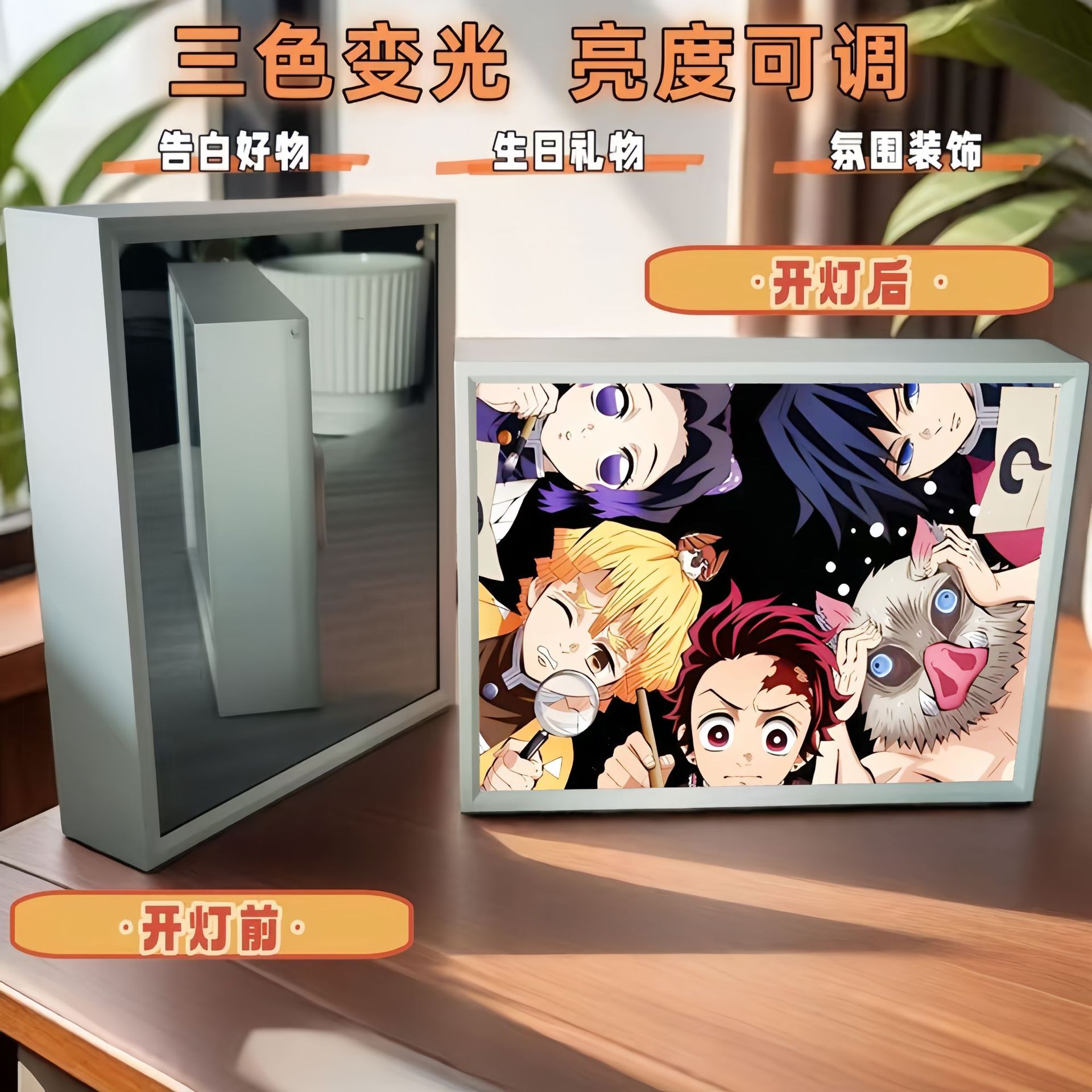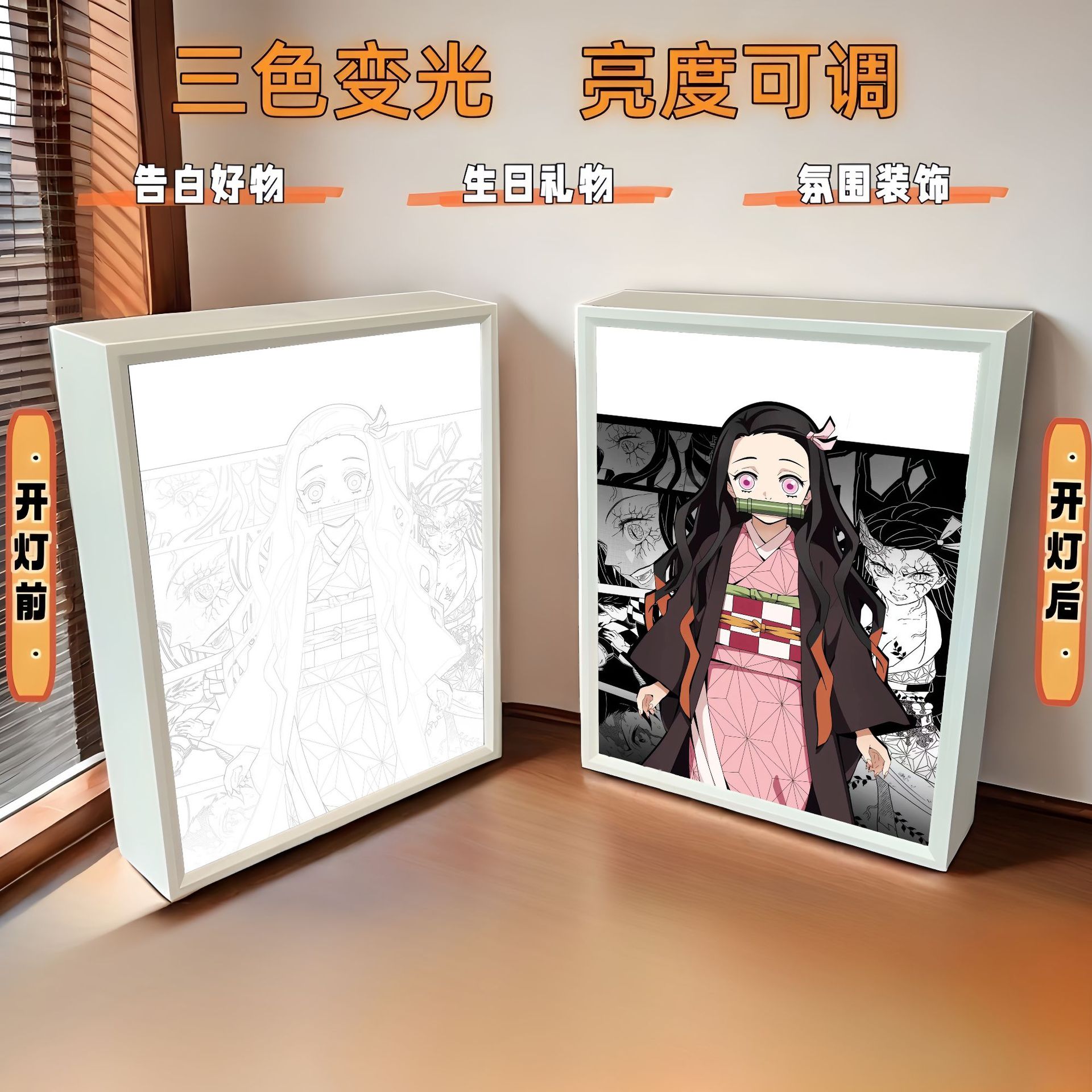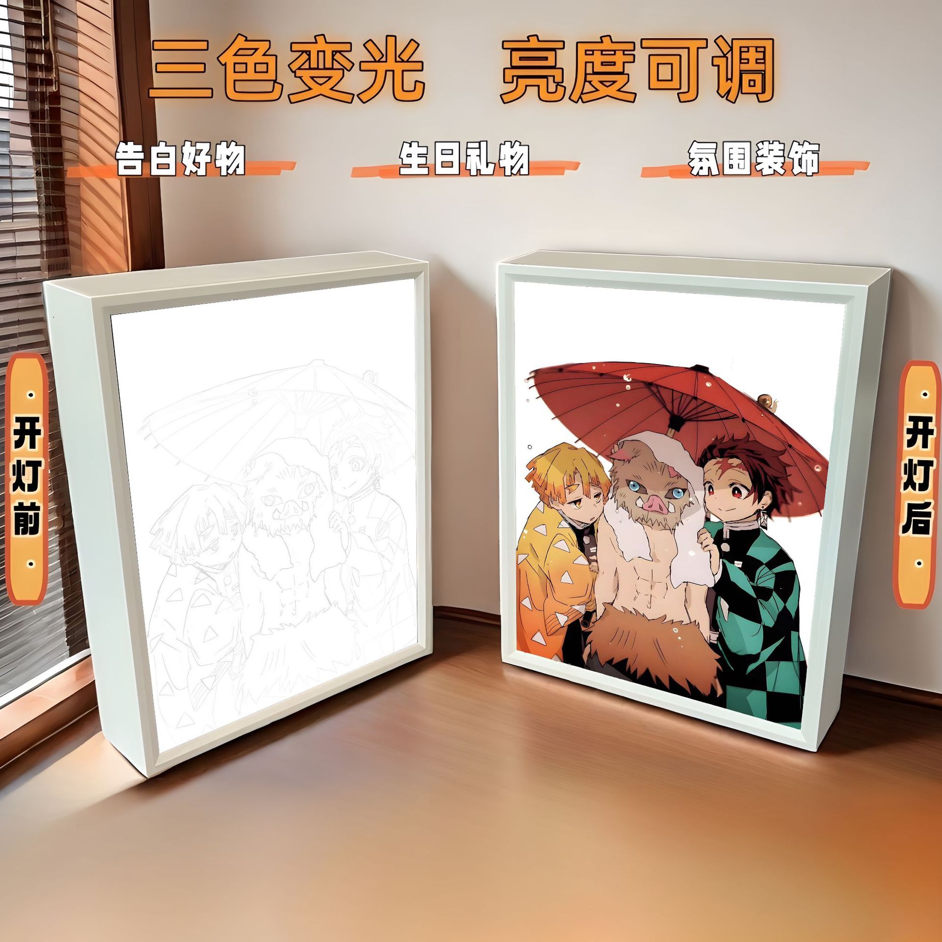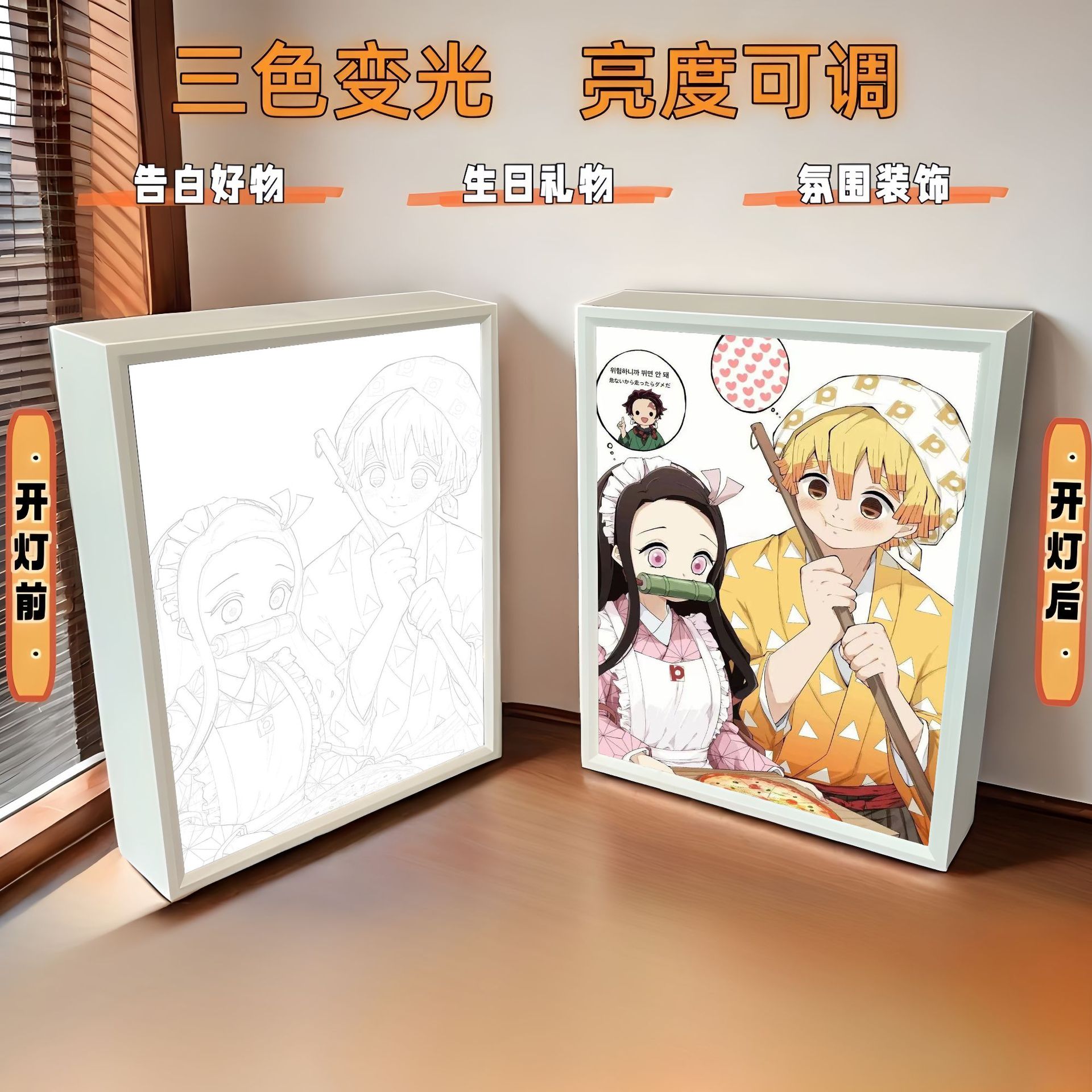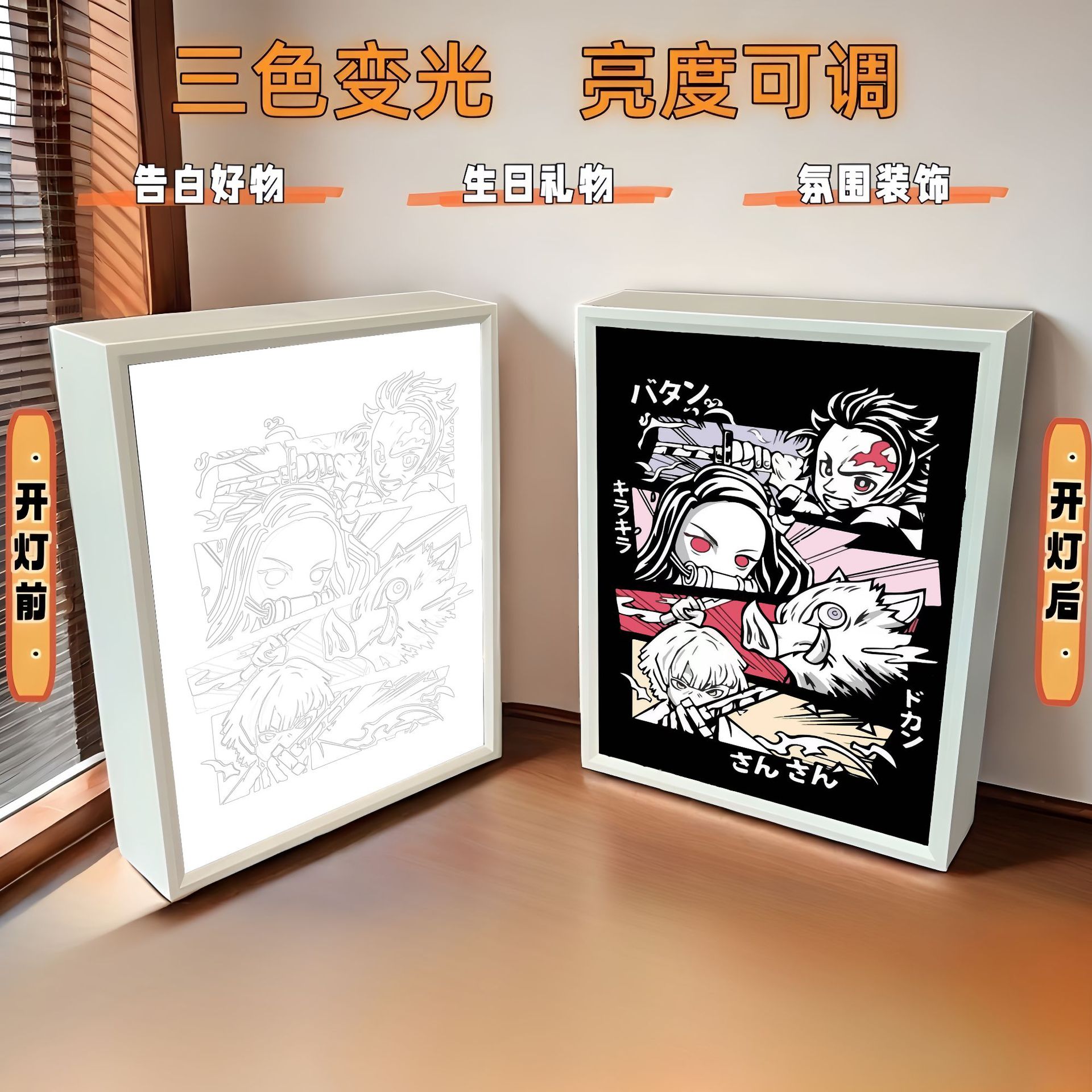 유령 소화 블레이드 조명 그림 새로운 장식 그림 데스크탑 장식품 기숙사 침실 나이트 라이트 숯 Zhilang 생일 선물