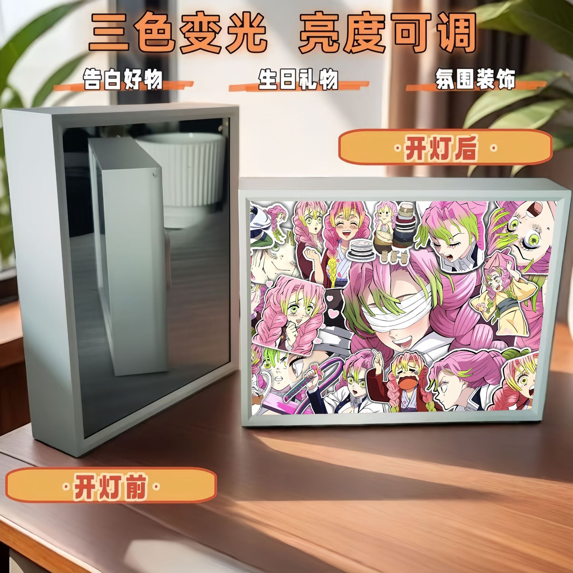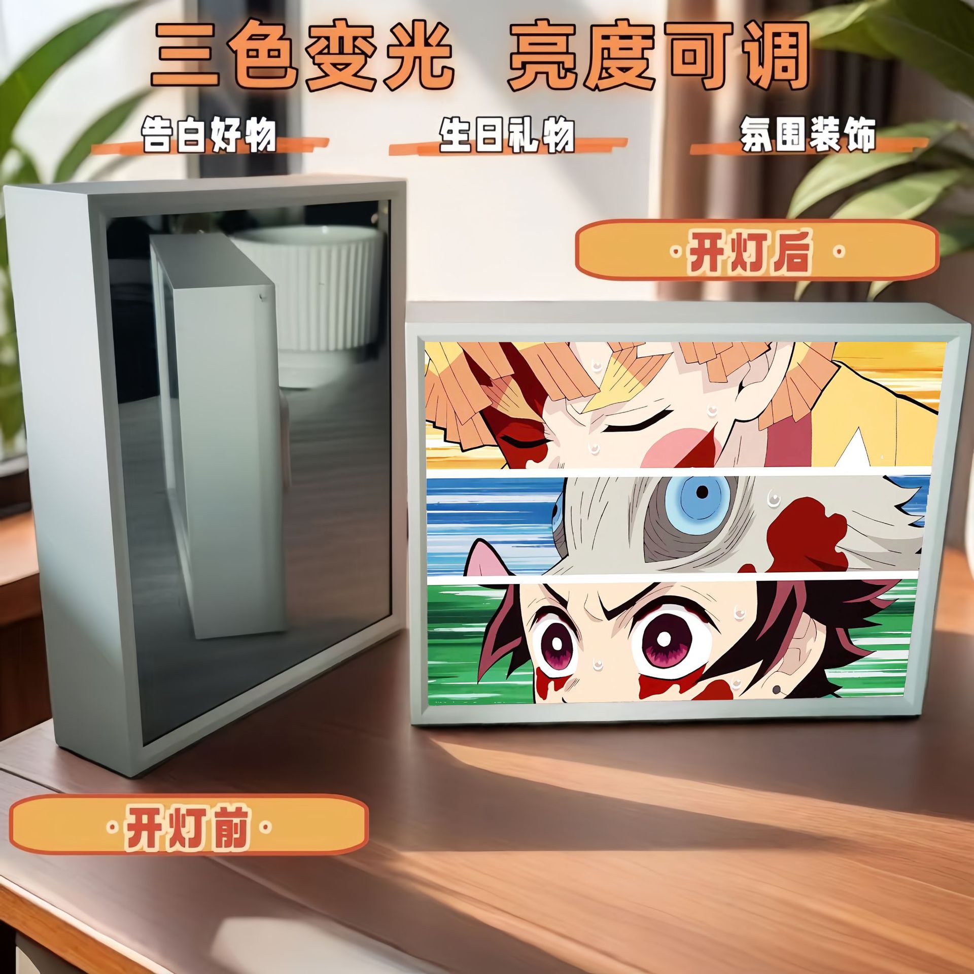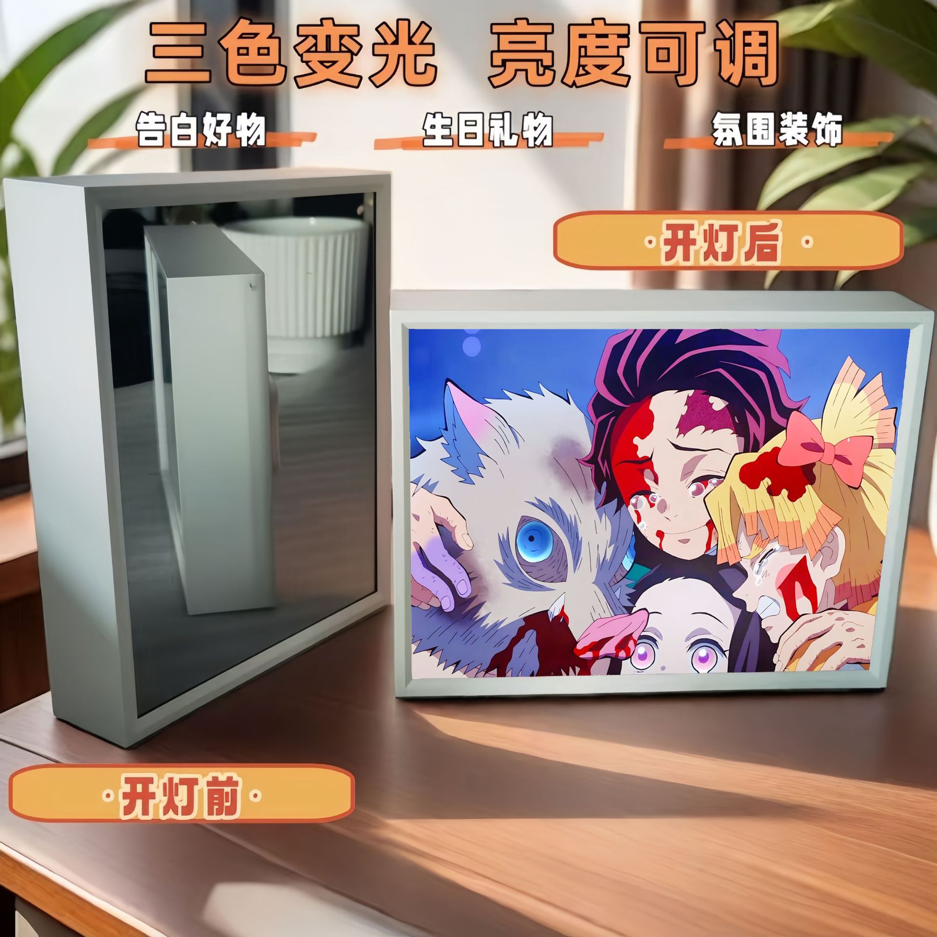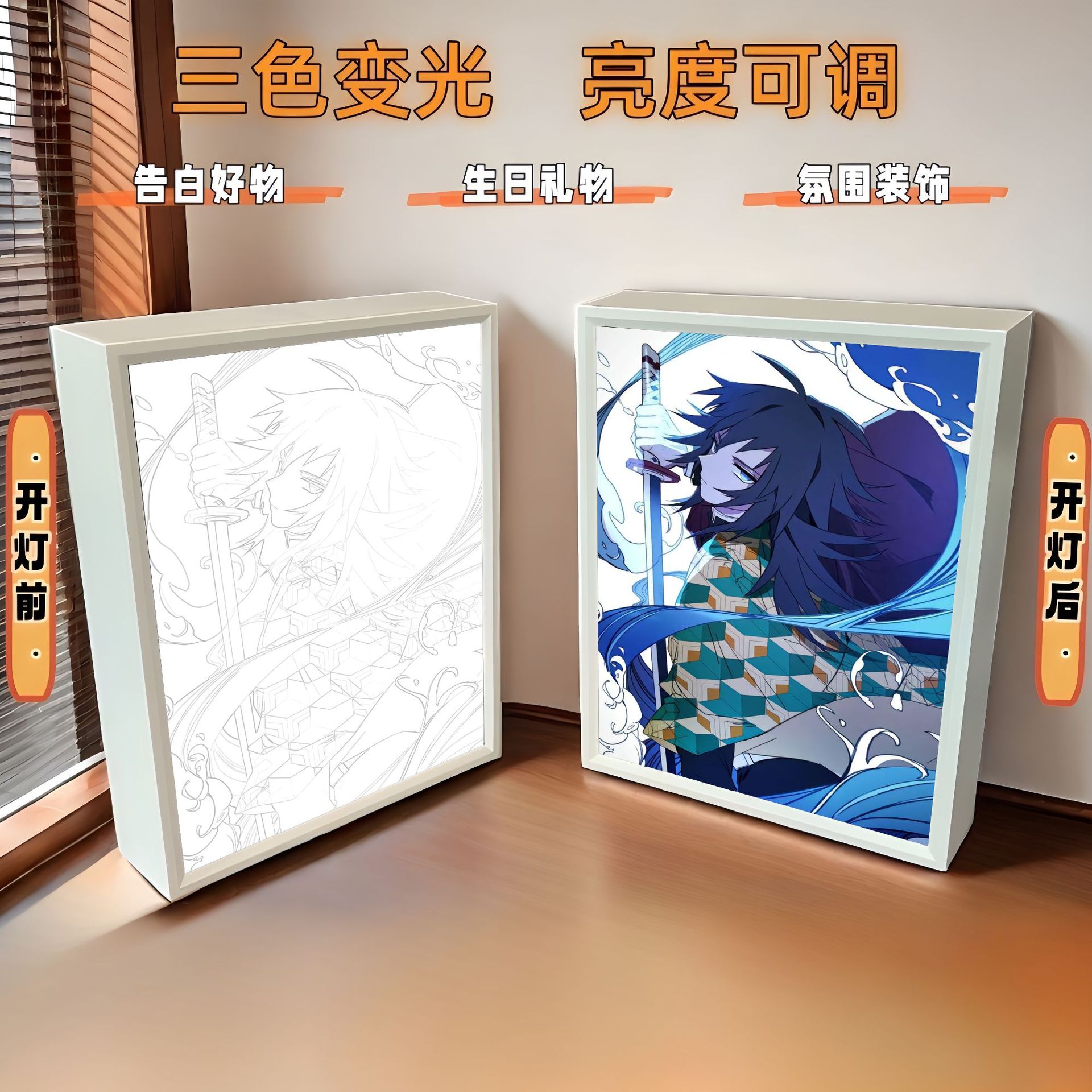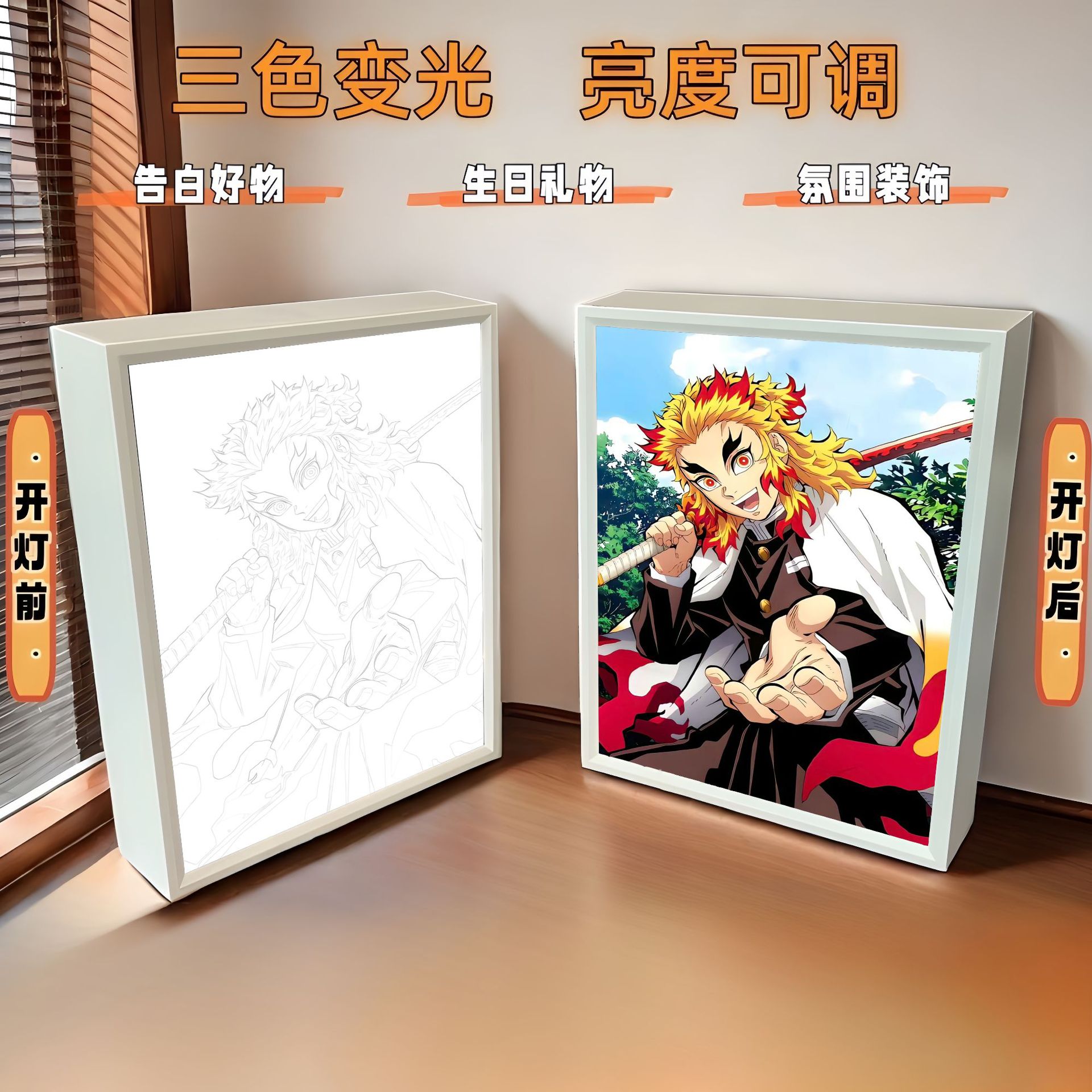 유령 소화 블레이드 조명 그림 새로운 장식 그림 데스크탑 장식품 기숙사 침실 나이트 라이트 숯 Zhilang 생일 선물