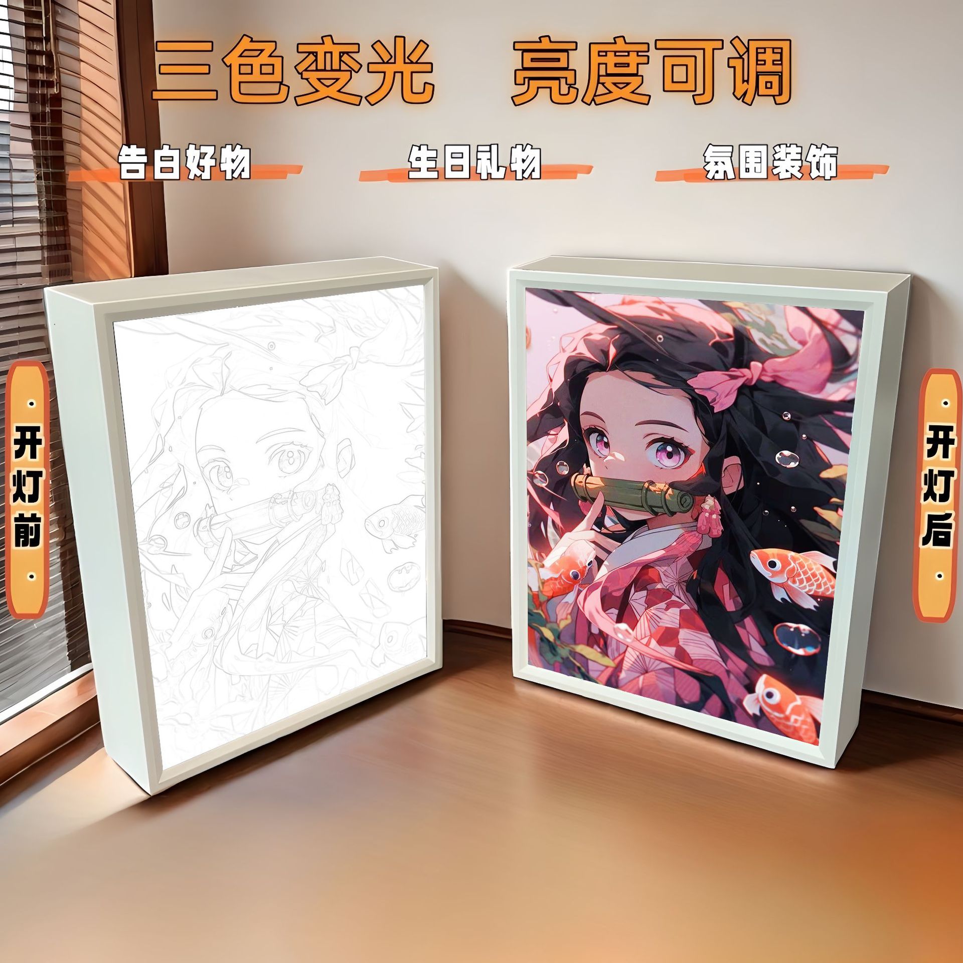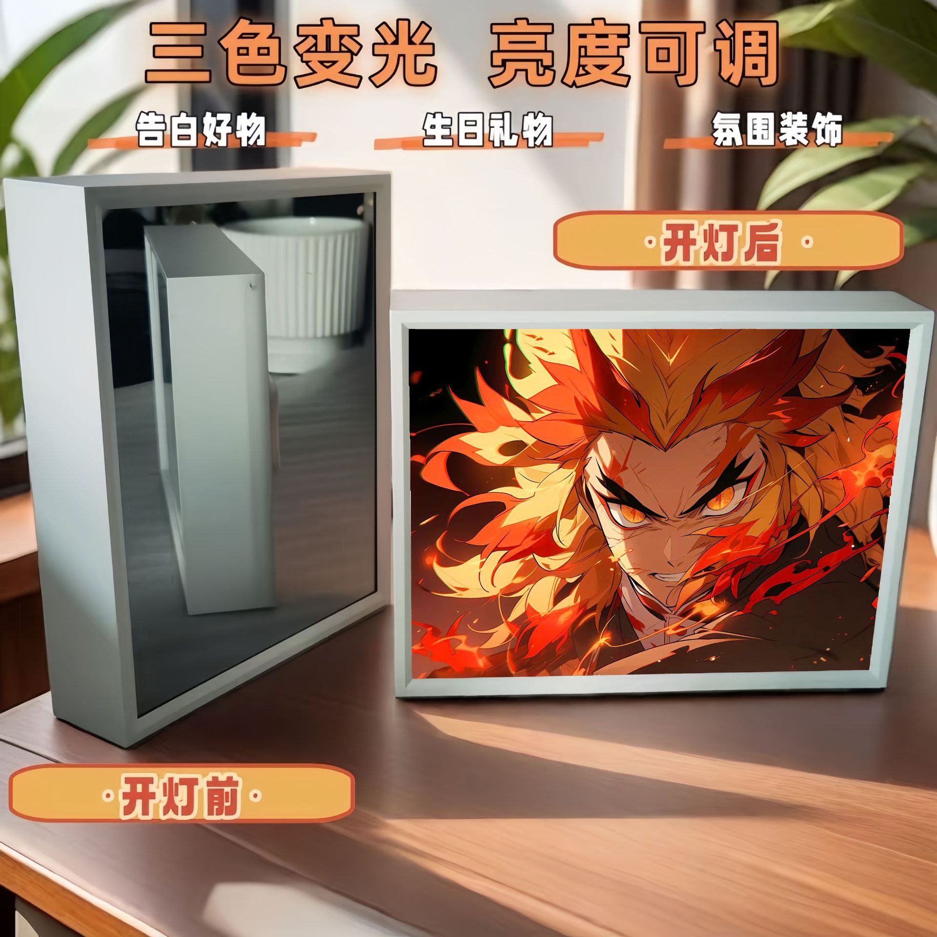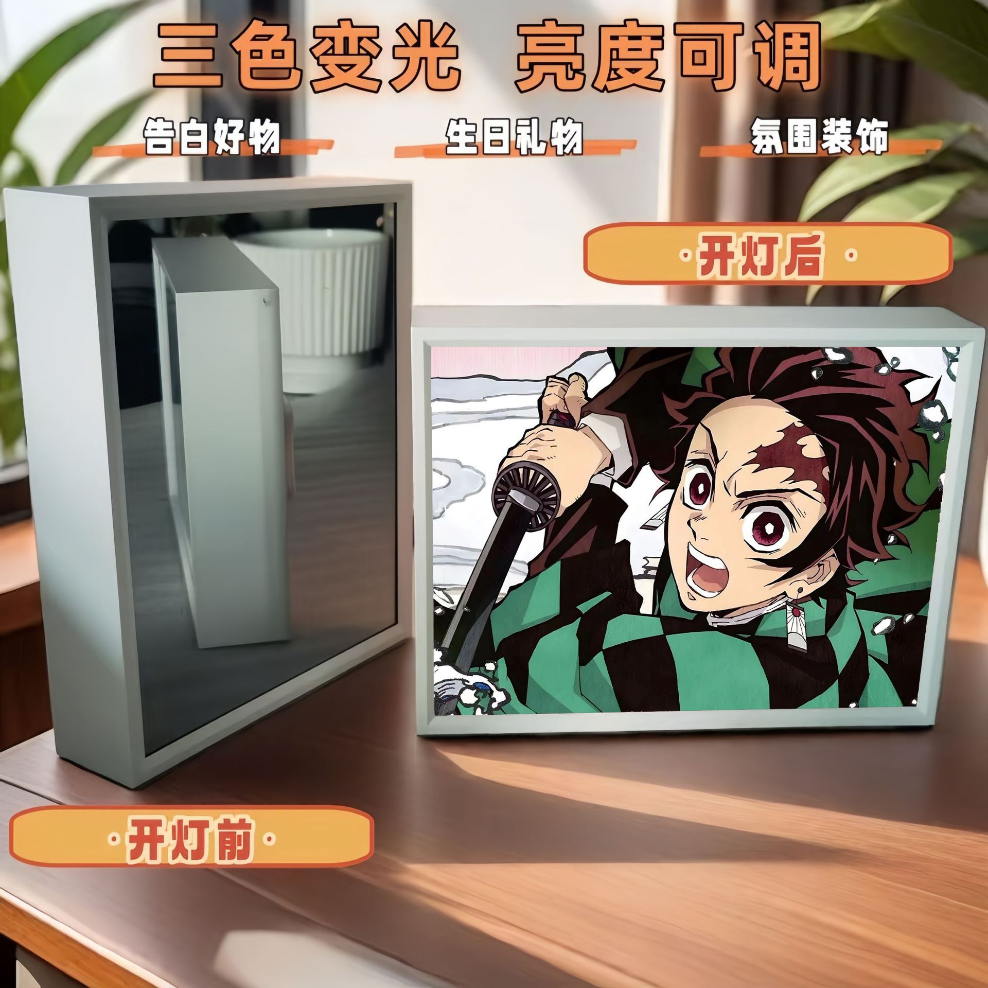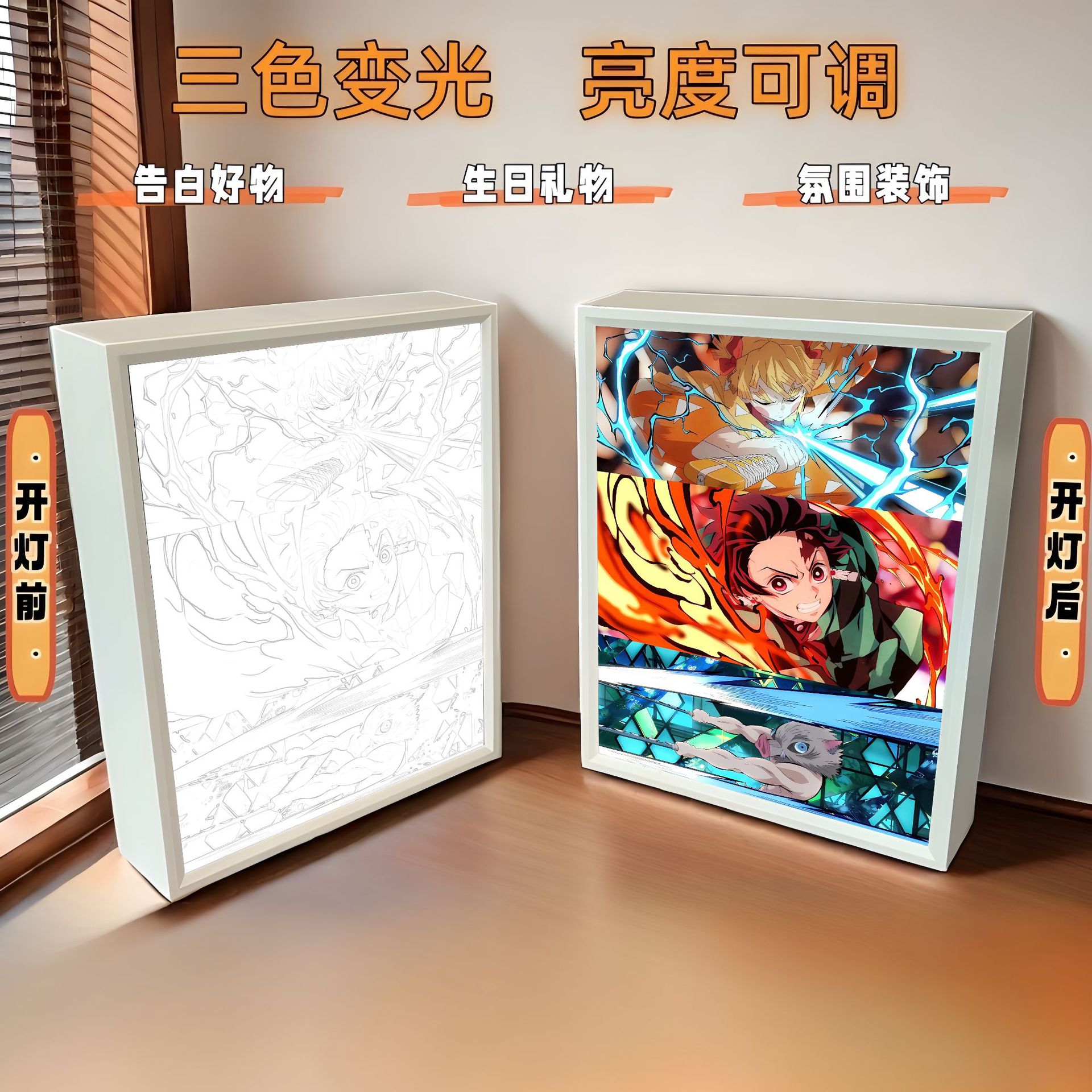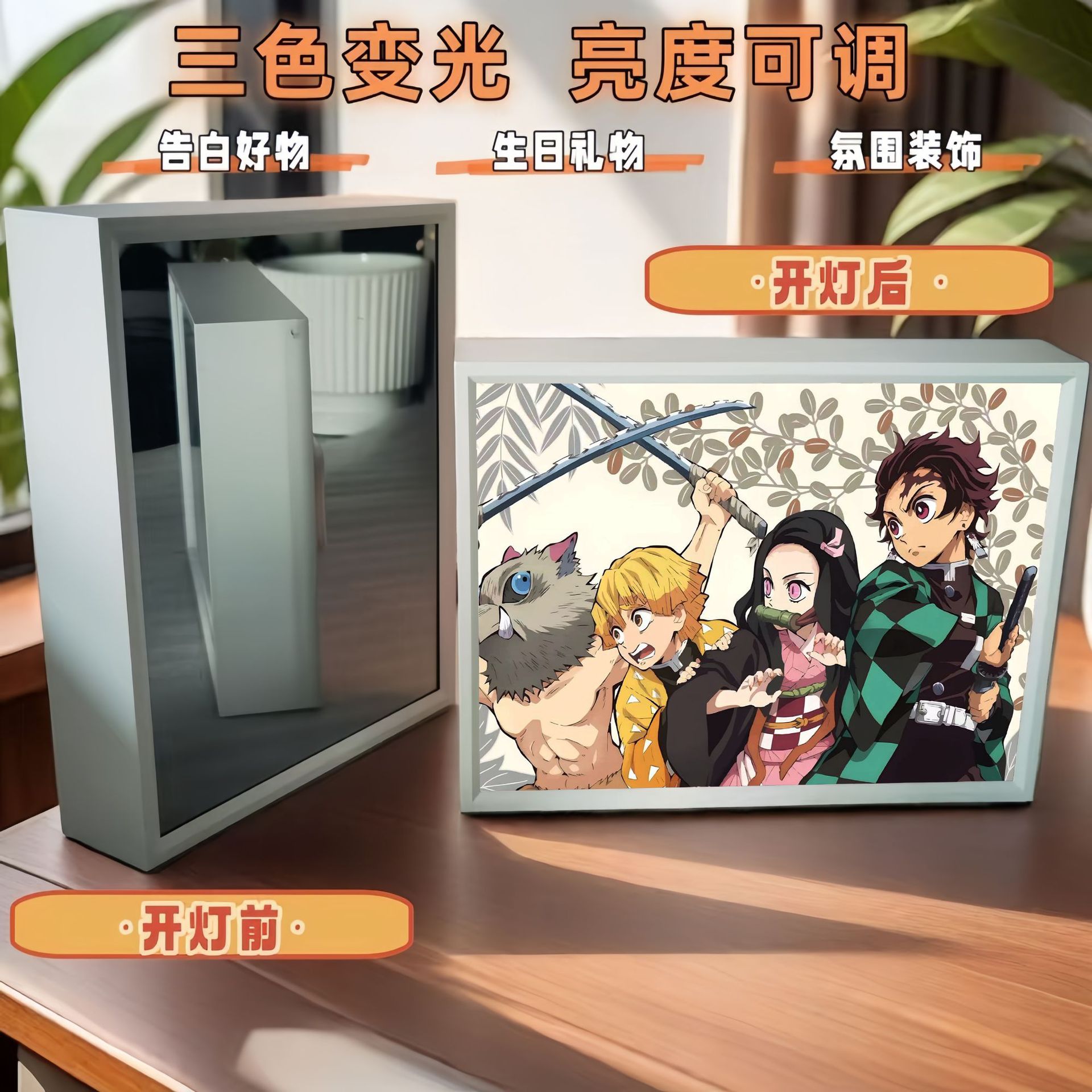 유령 소화 블레이드 조명 그림 새로운 장식 그림 데스크탑 장식품 기숙사 침실 나이트 라이트 숯 Zhilang 생일 선물