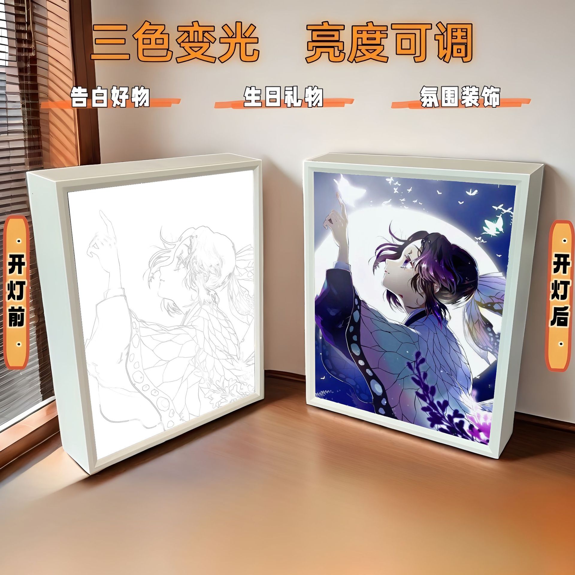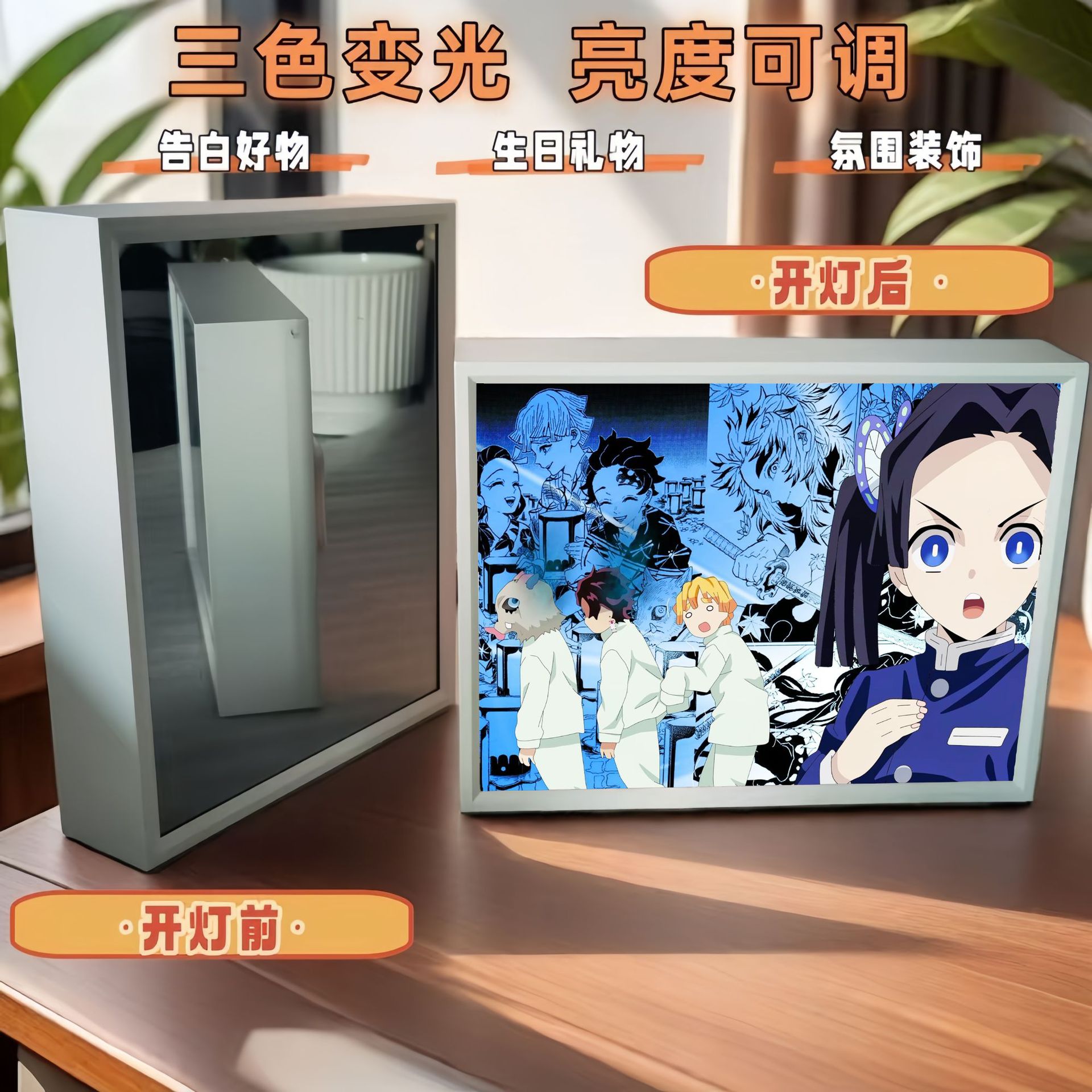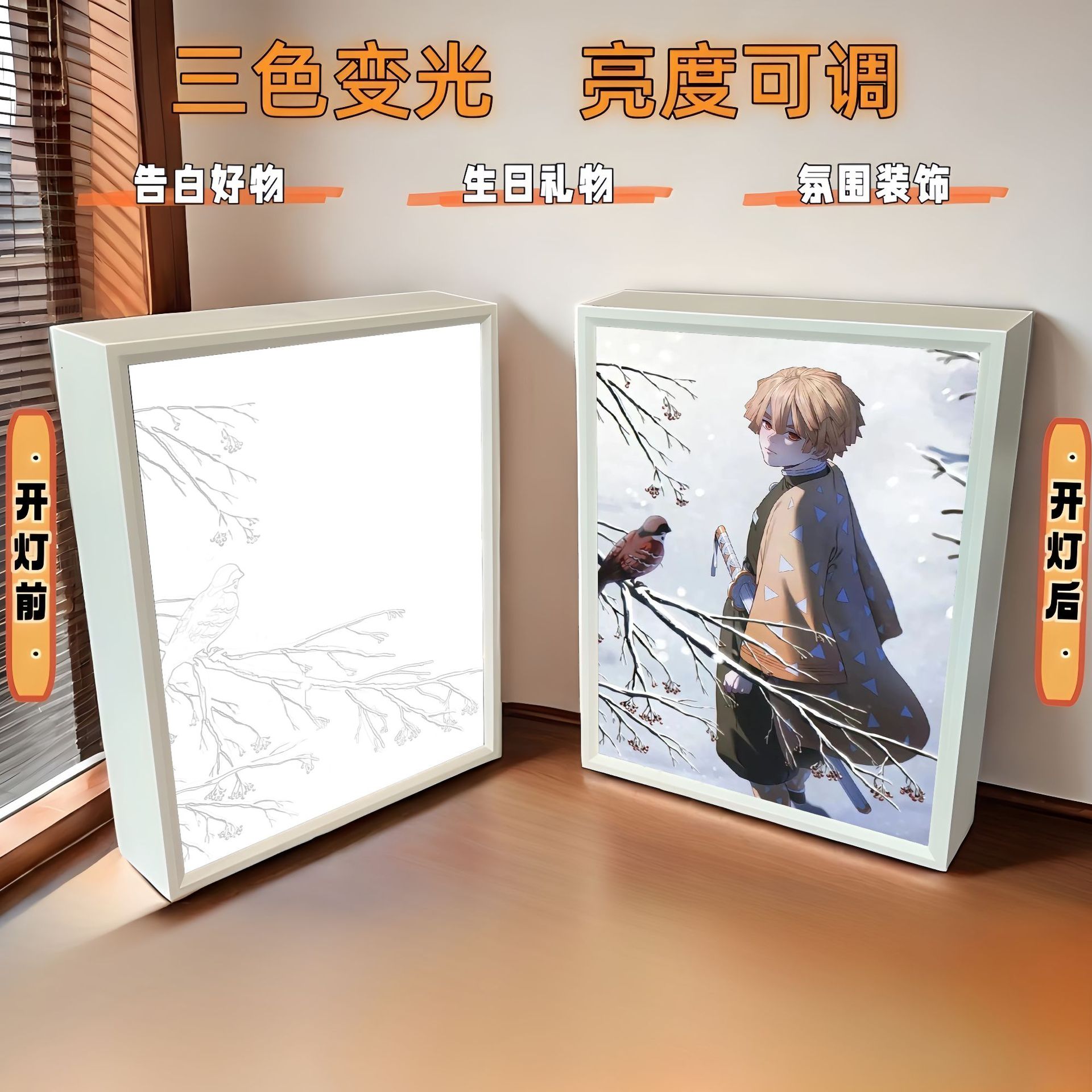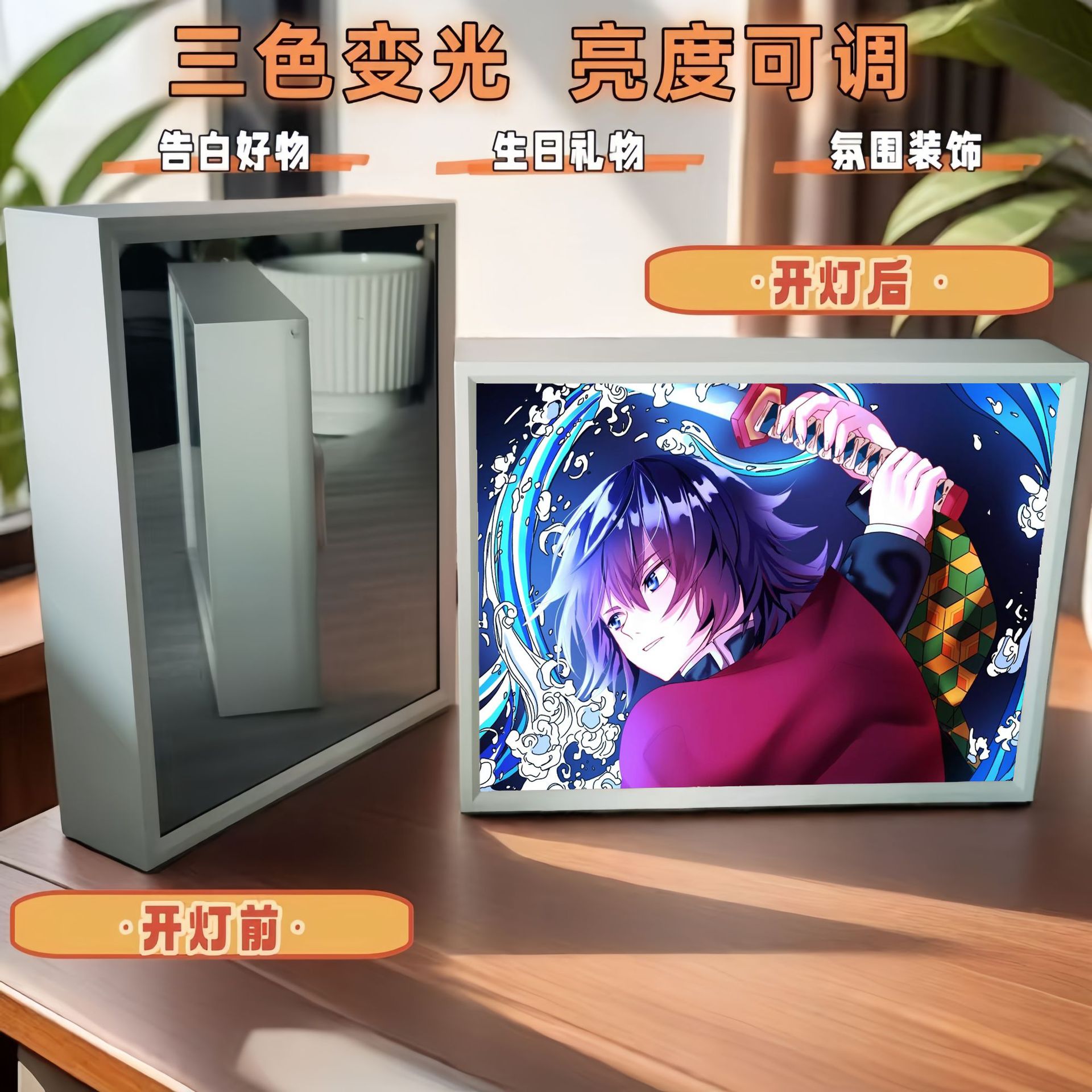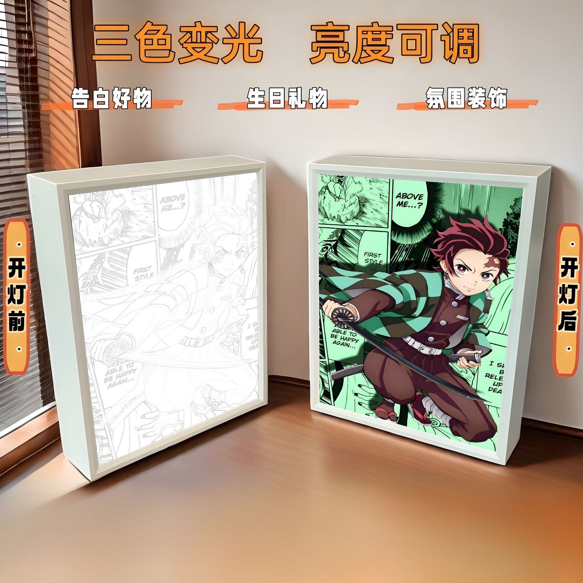 유령 소화 블레이드 조명 그림 새로운 장식 그림 데스크탑 장식품 기숙사 침실 나이트 라이트 숯 Zhilang 생일 선물