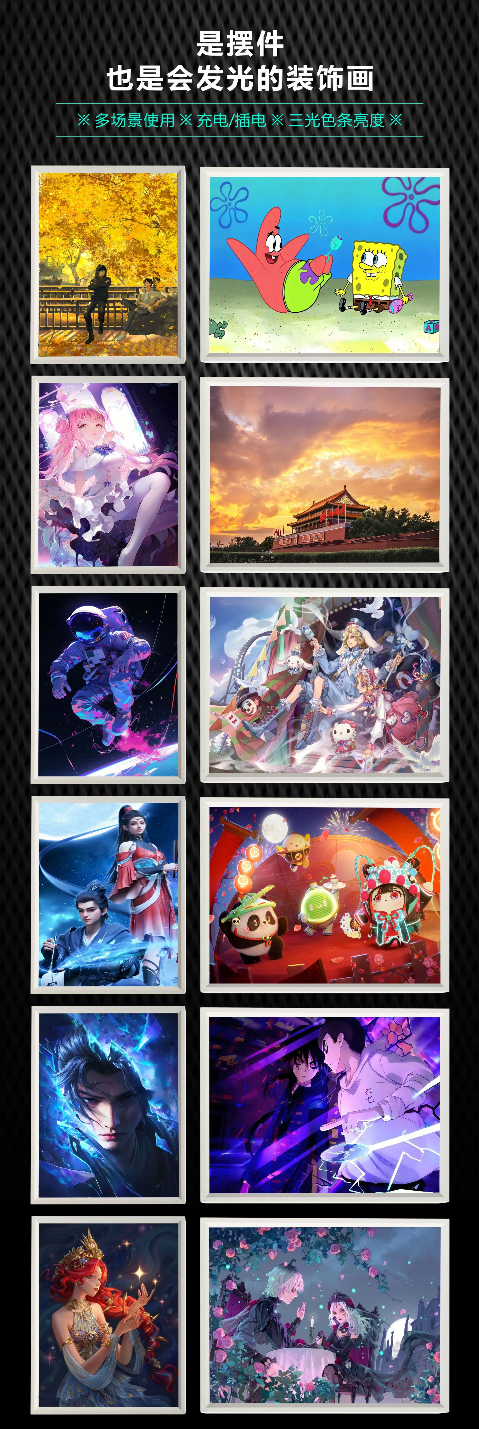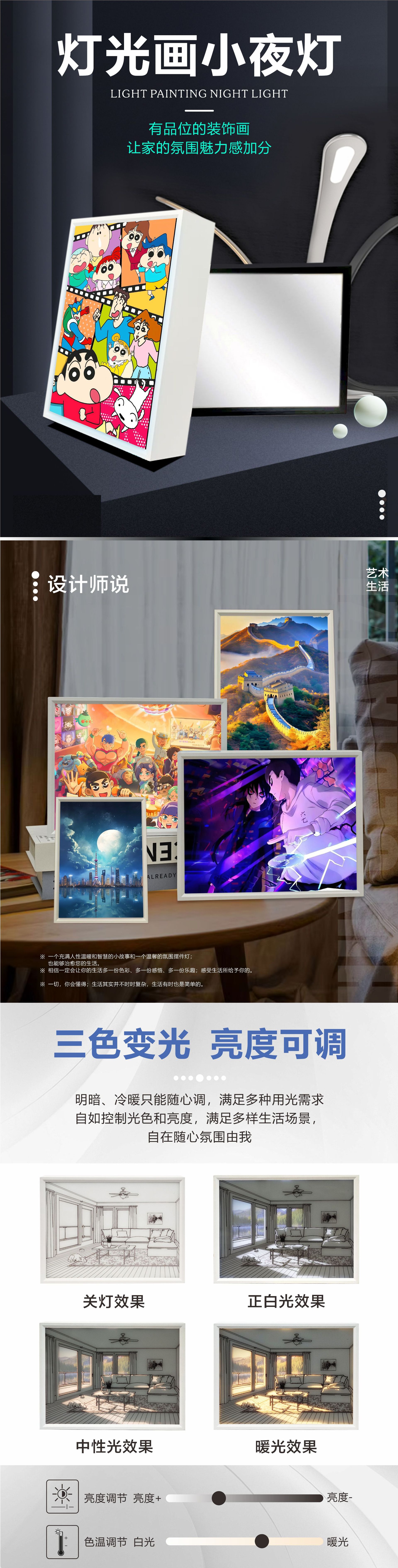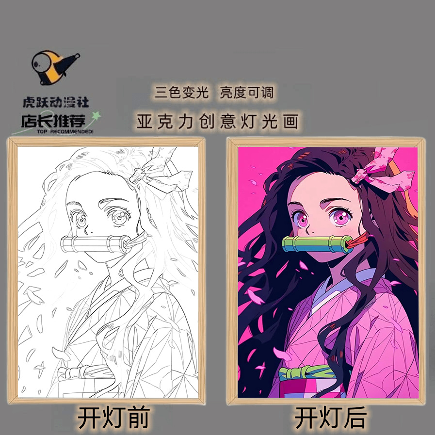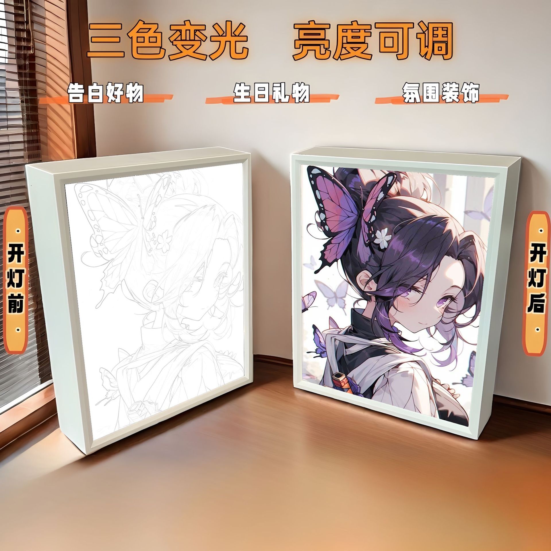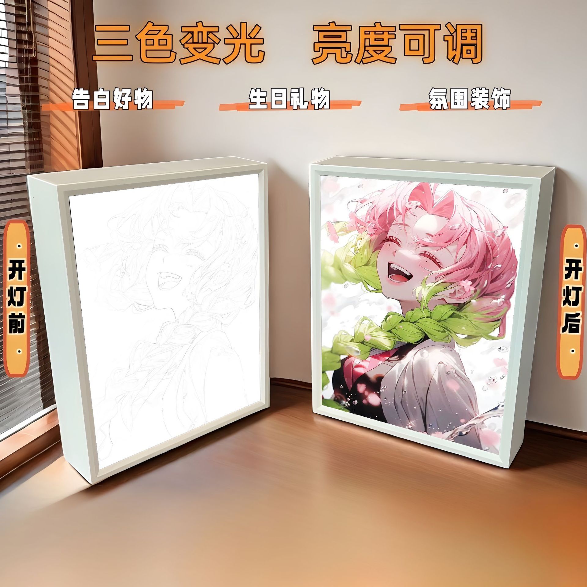 유령 소화 블레이드 조명 그림 새로운 장식 그림 데스크탑 장식품 기숙사 침실 나이트 라이트 숯 Zhilang 생일 선물