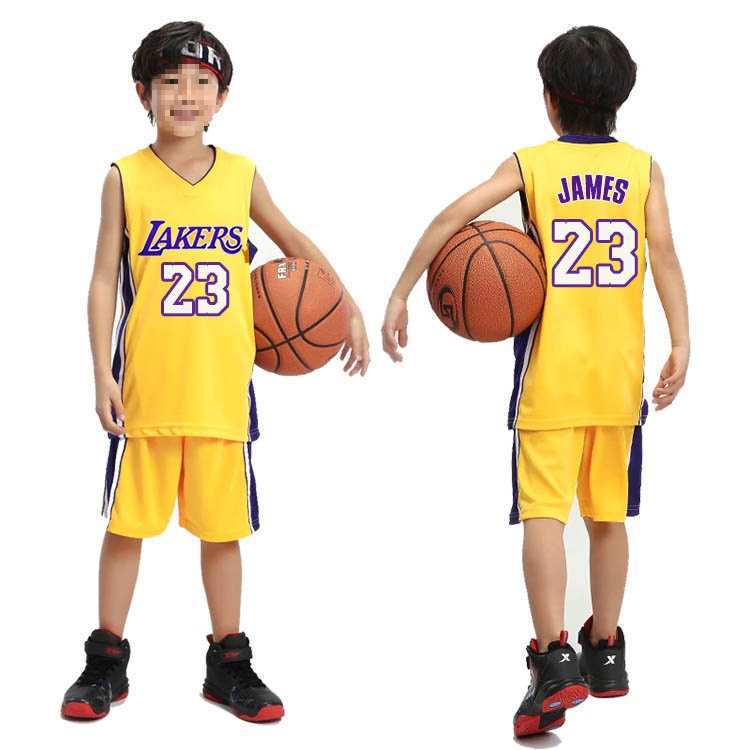 어린이 농구 옷 짧은 소매 세트 남자와 여자 레이커스 고베 23 제임스 저지 초등학교 학생 대회 맞춤 인쇄스토어 가기