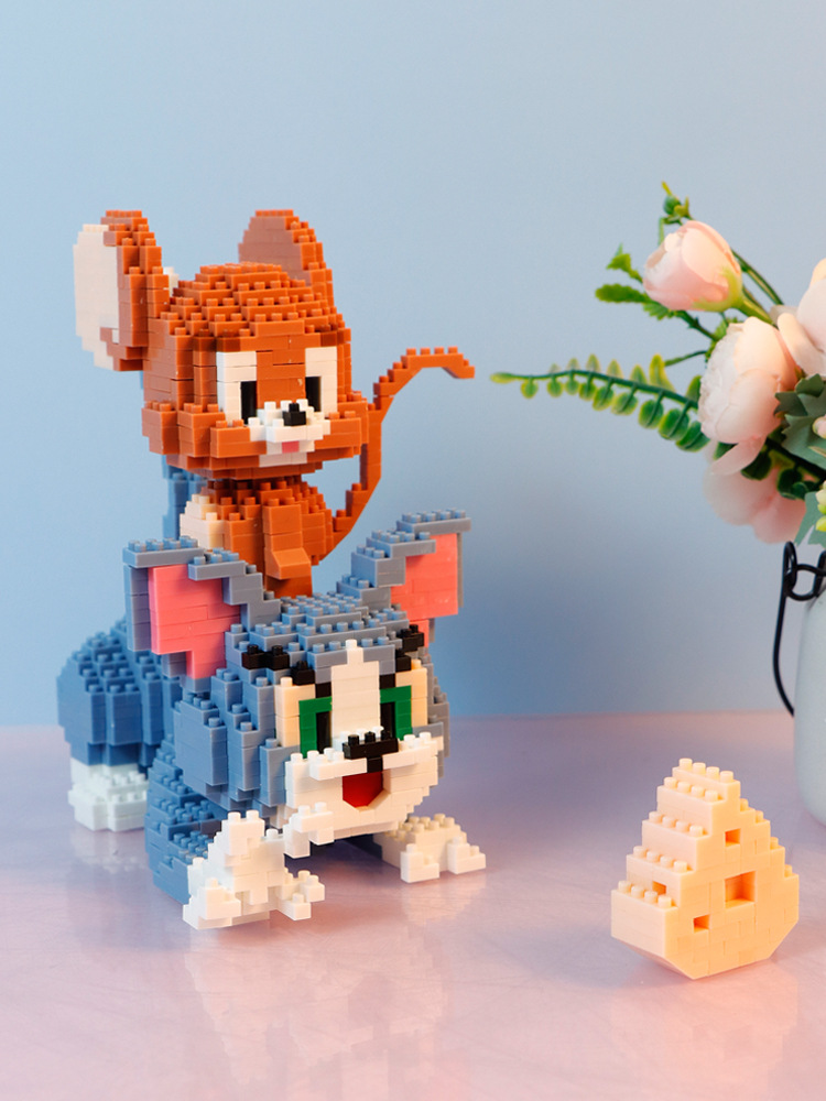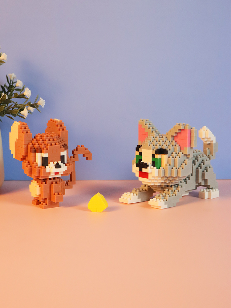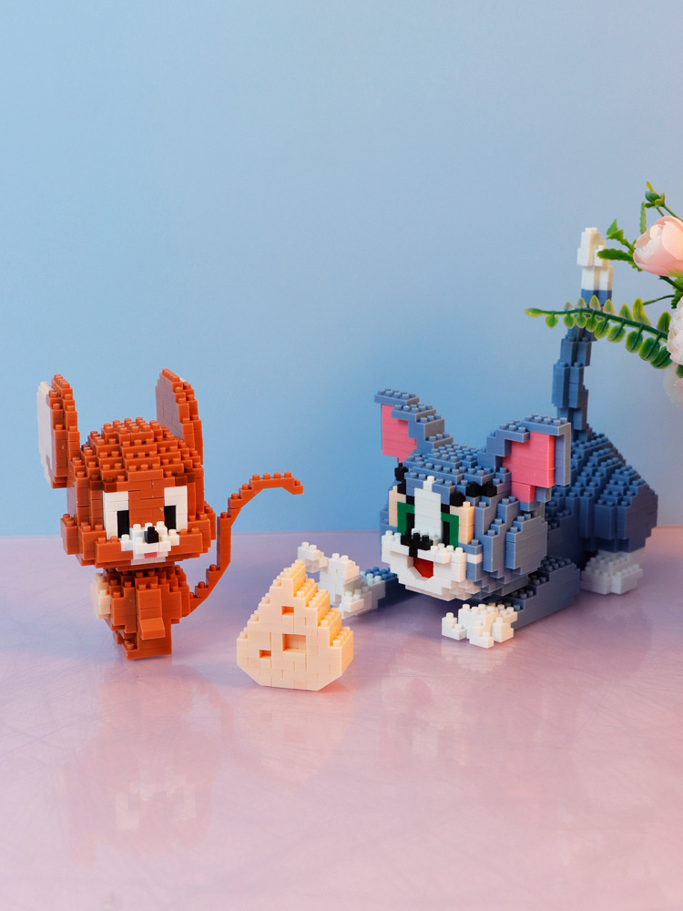 국경을 넘는 배송으로 제공되는 새끼 고양이와 쥐 조립 블록, 마이크로 입자 어린이 장난감, 레고와 호환되는 만화 생일 선물 남아용스토어 가기