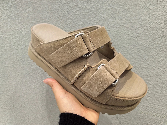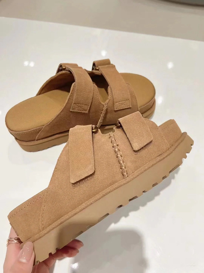 2024 년 여름 새로운 여성 벨크로 플랫폼 샌들 버클 정품 가죽 의복 증가 오픈 토 무스 정품 가죽 슬리퍼