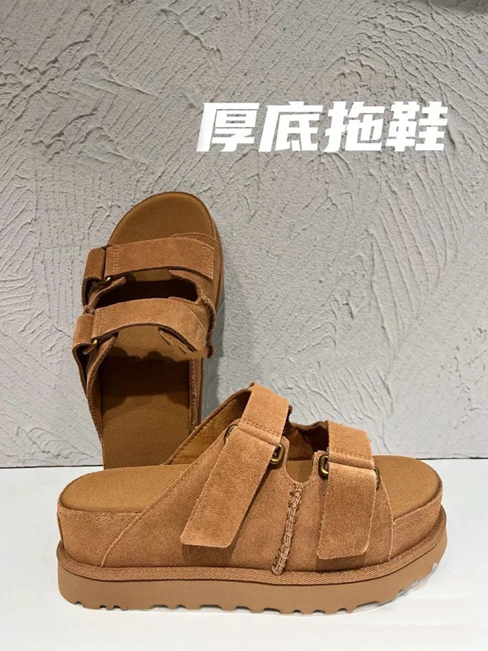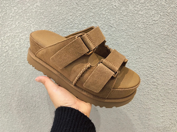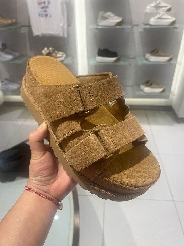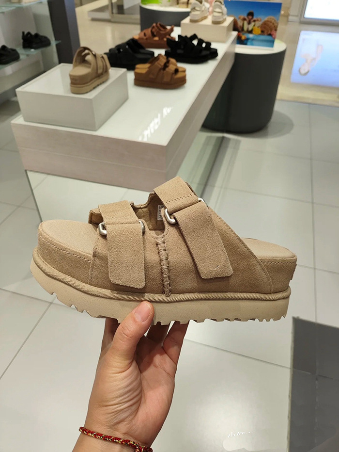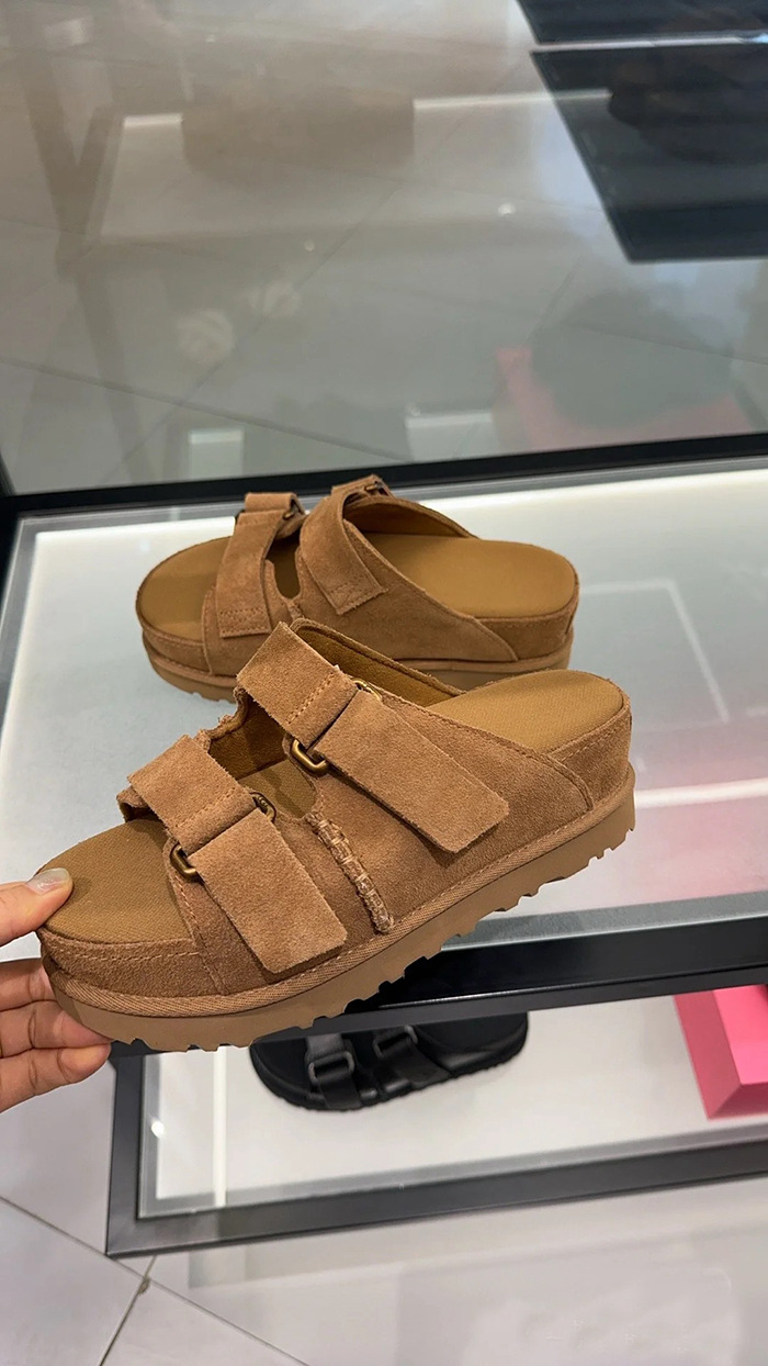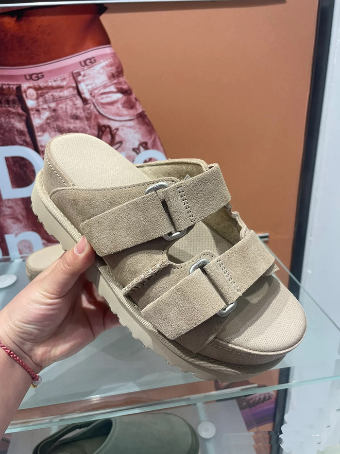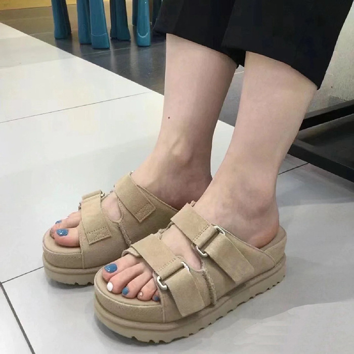 2024 년 여름 새로운 여성 벨크로 플랫폼 샌들 버클 정품 가죽 의복 증가 오픈 토 무스 정품 가죽 슬리퍼스토어 가기