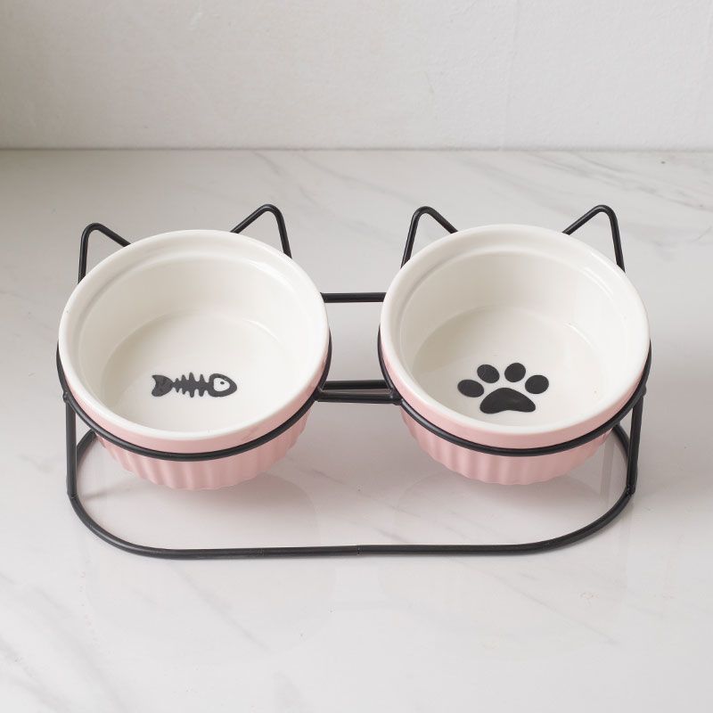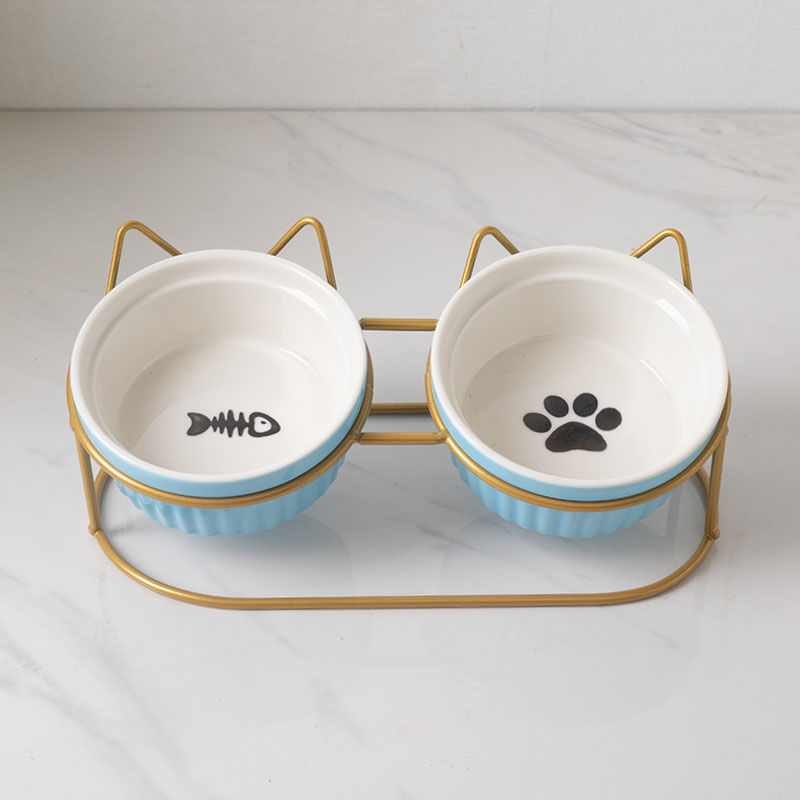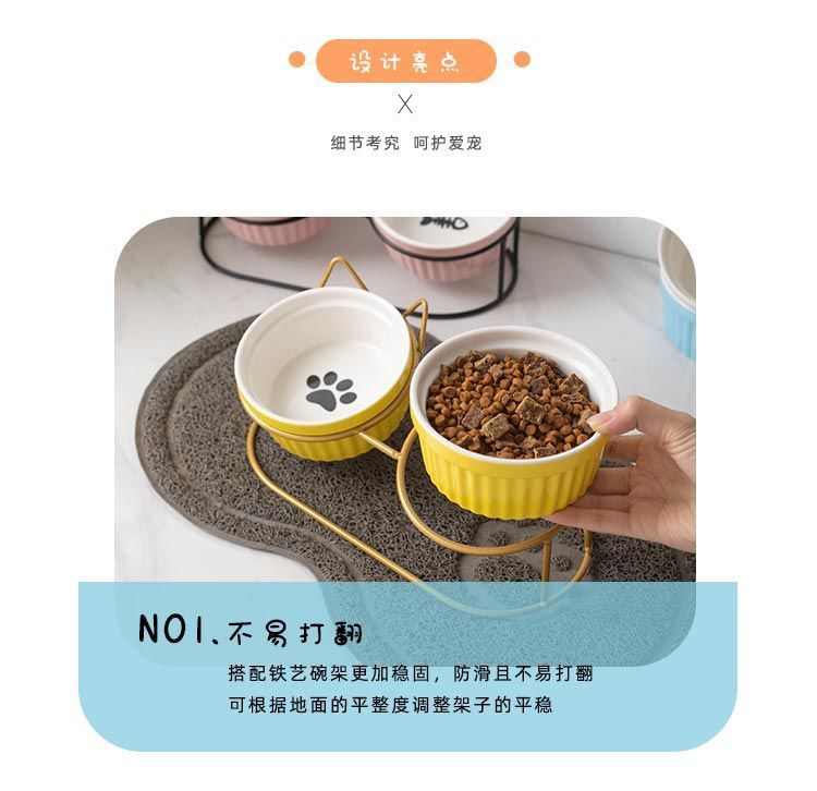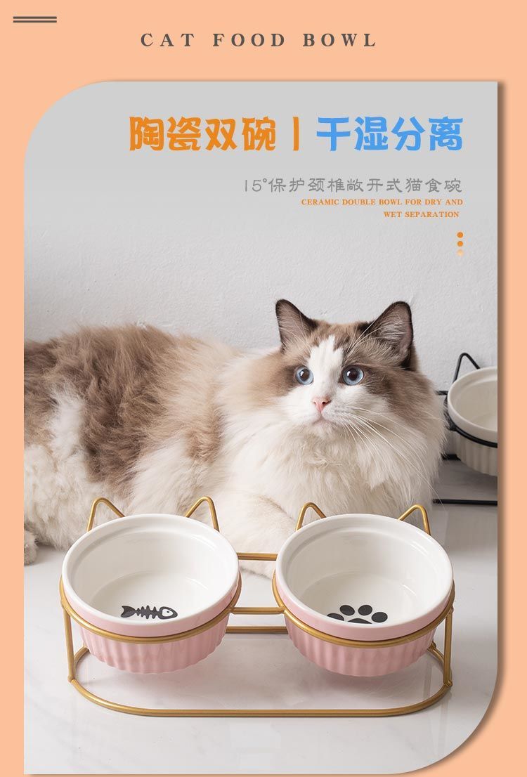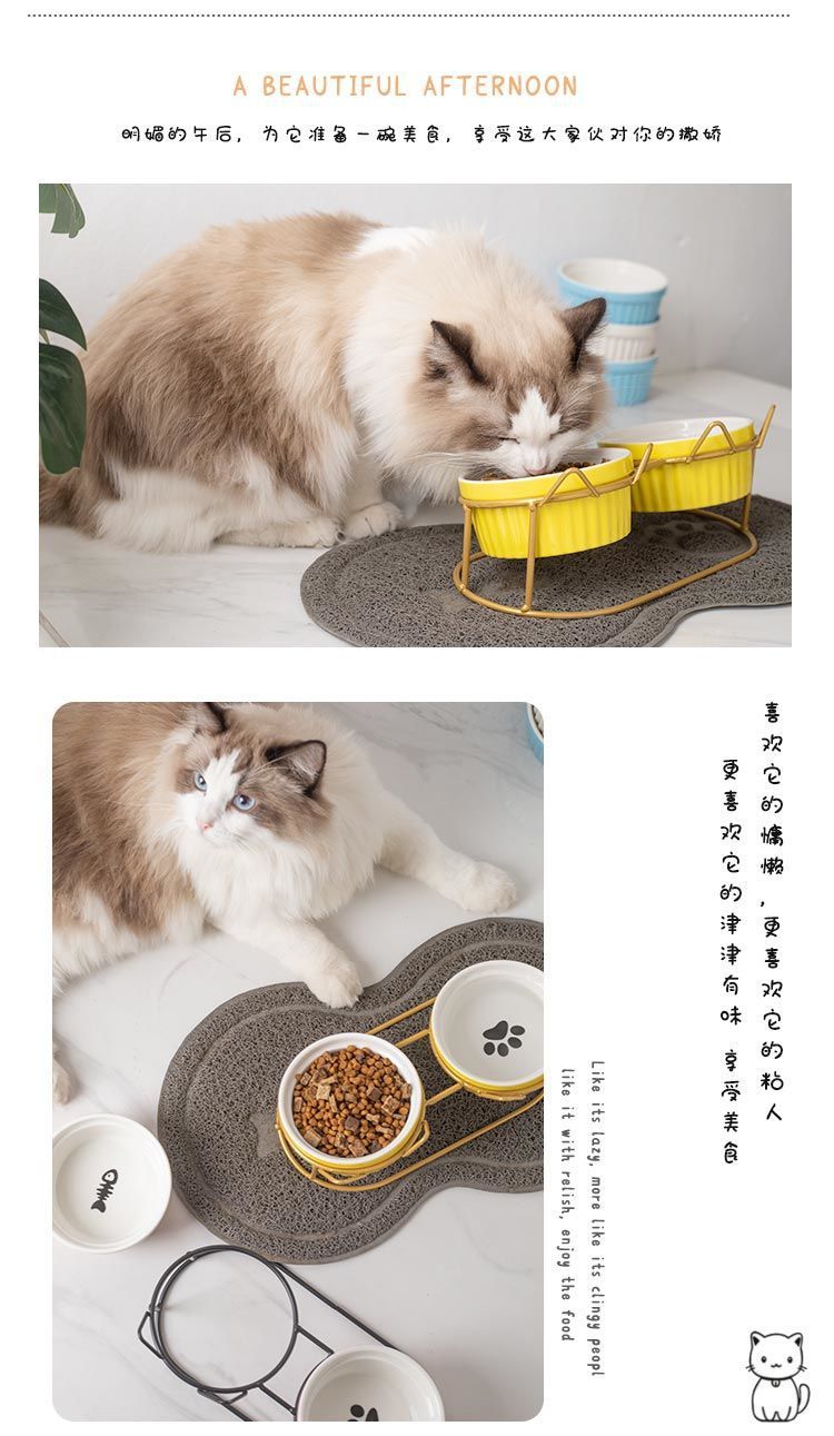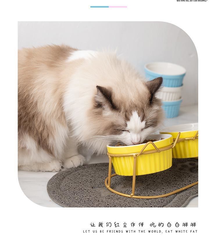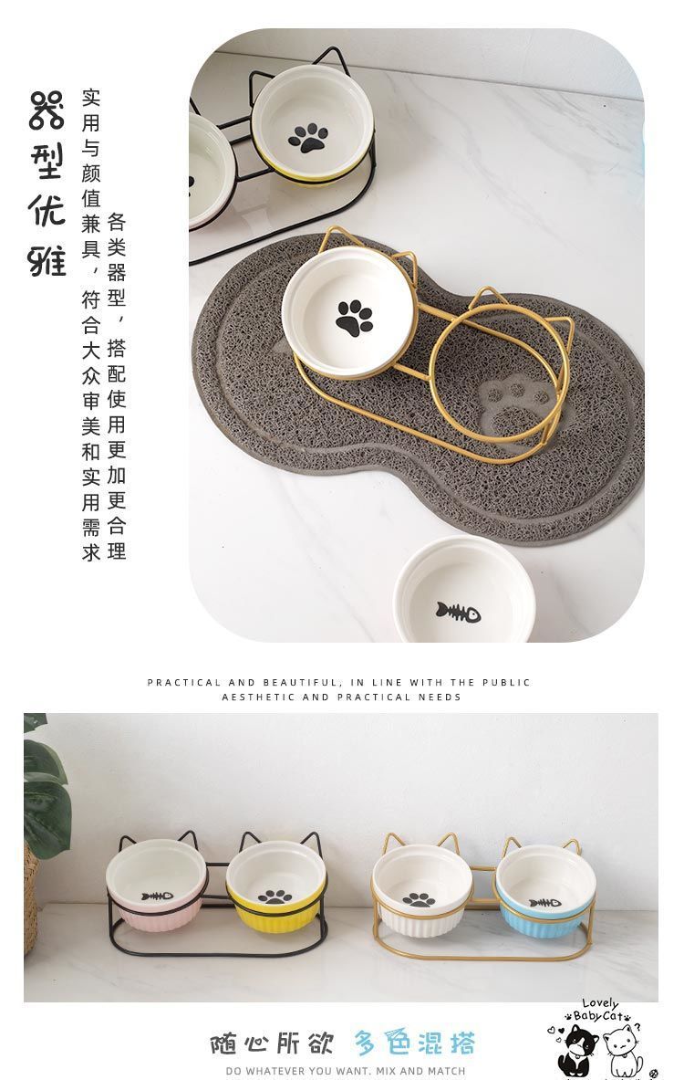 세라믹 고양이 그릇 높은 발 목 보호 더블 그릇 고정 프레임 뒤집기 애완 동물 고양이와 개 음식 분지 물 그릇 틸트 보호 무료 배송스토어 가기