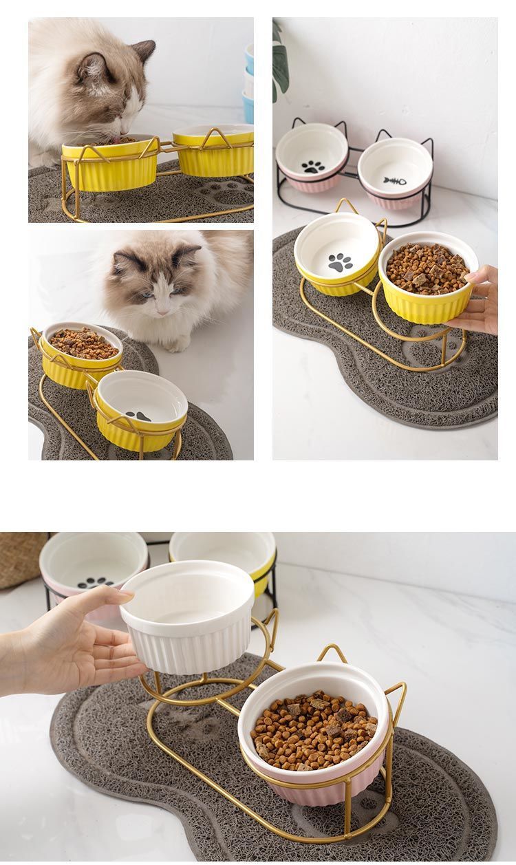 세라믹 고양이 그릇 높은 발 목 보호 더블 그릇 고정 프레임 뒤집기 애완 동물 고양이와 개 음식 분지 물 그릇 틸트 보호 무료 배송