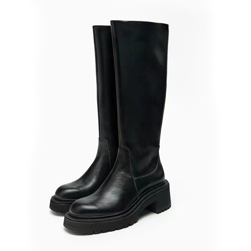 24인치 하이탑 부츠, 키 작은 여성용 두꺼운 밑창 롱부츠, 천연 가죽 나이트 부츠, 마틴 부츠, 롱부츠, 신주마오 신발 공장, 키높이 효과