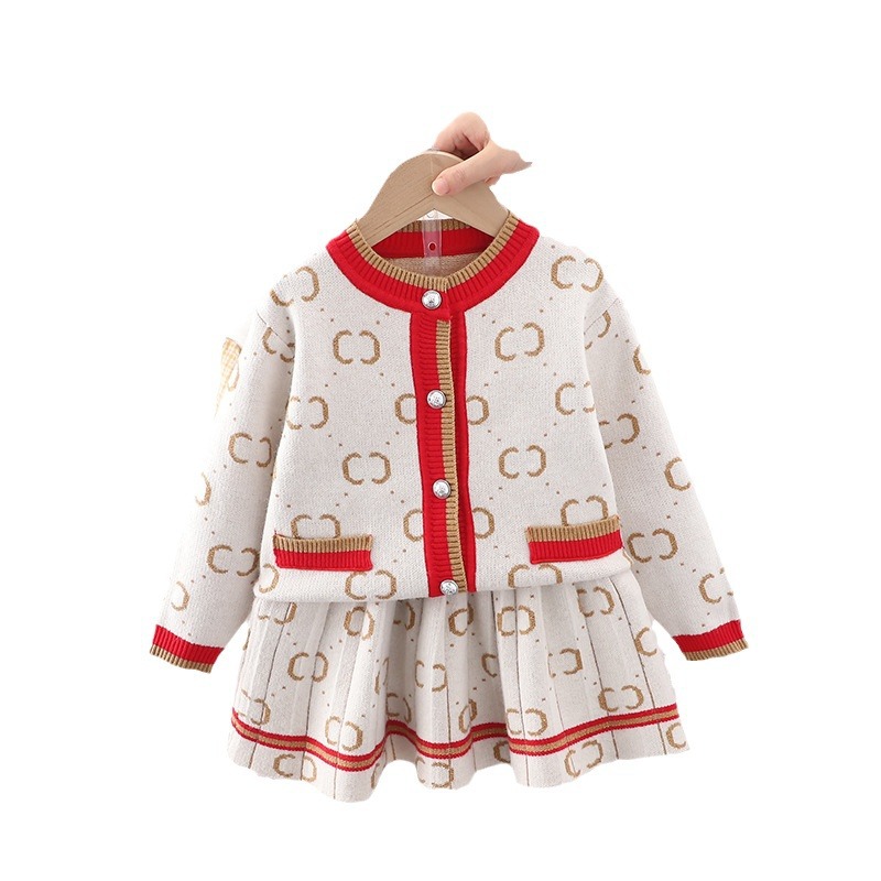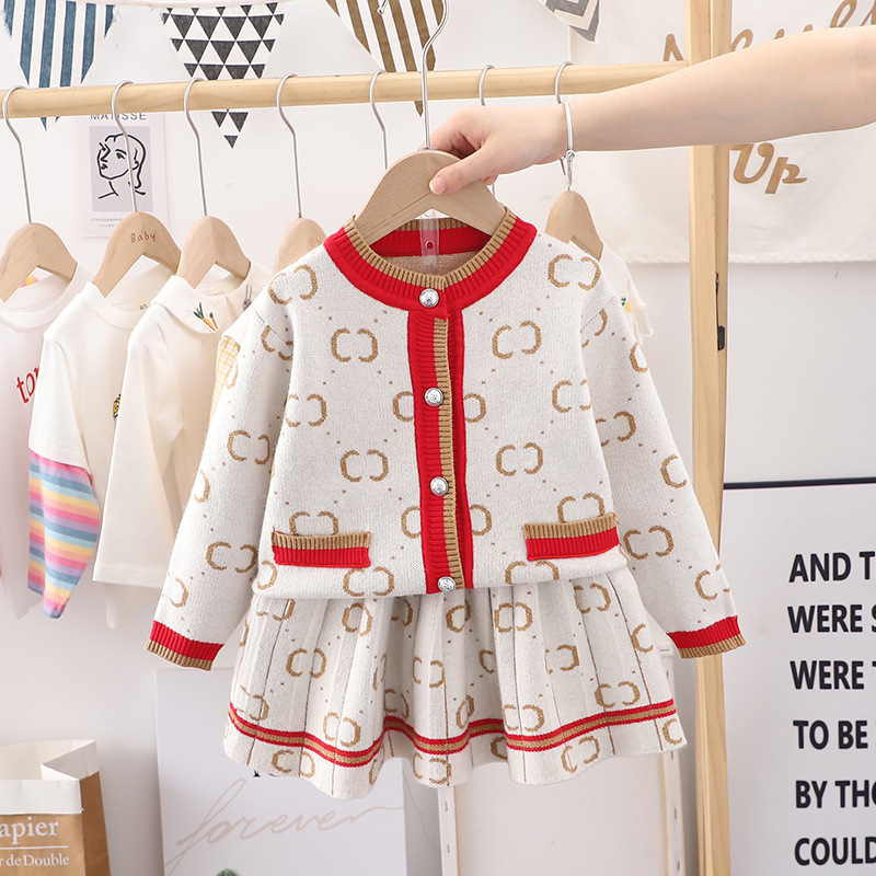어린이 스웨터 가디건 세트 2024 가을 스타일 여자 아기 코트 작은 프랑스 스타일 여자 아이 세트스토어 가기