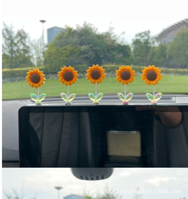 자동차 장식품 2024 새로운 머리 흔들어 해바라기 자동차 장식품 치유 신선한 꽃 자동차 센터 콘솔 장식