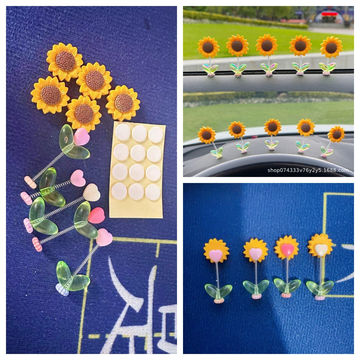 자동차 장식품 2024 새로운 머리 흔들어 해바라기 자동차 장식품 치유 신선한 꽃 자동차 센터 콘솔 장식스토어 가기