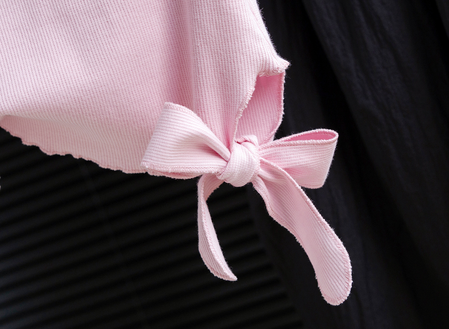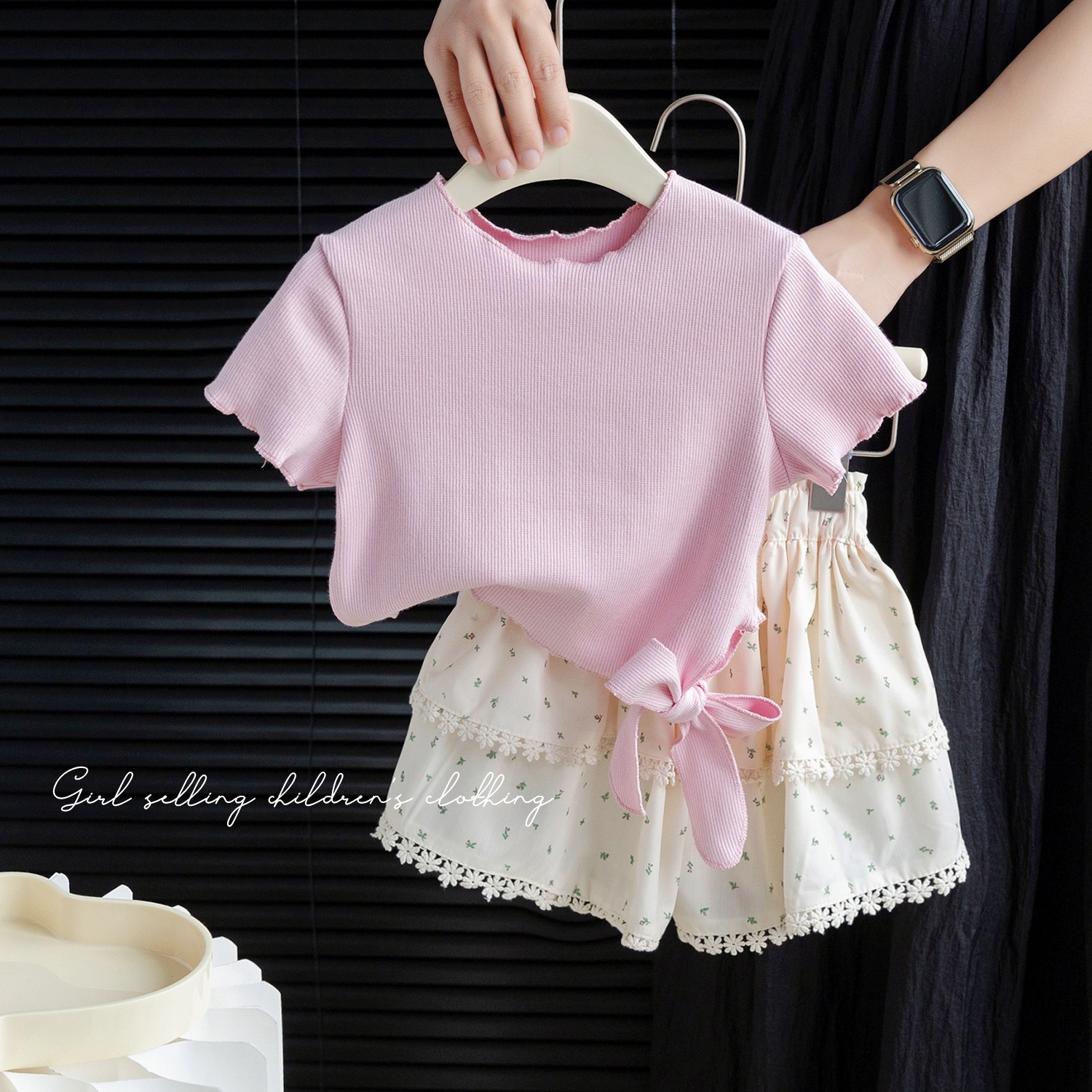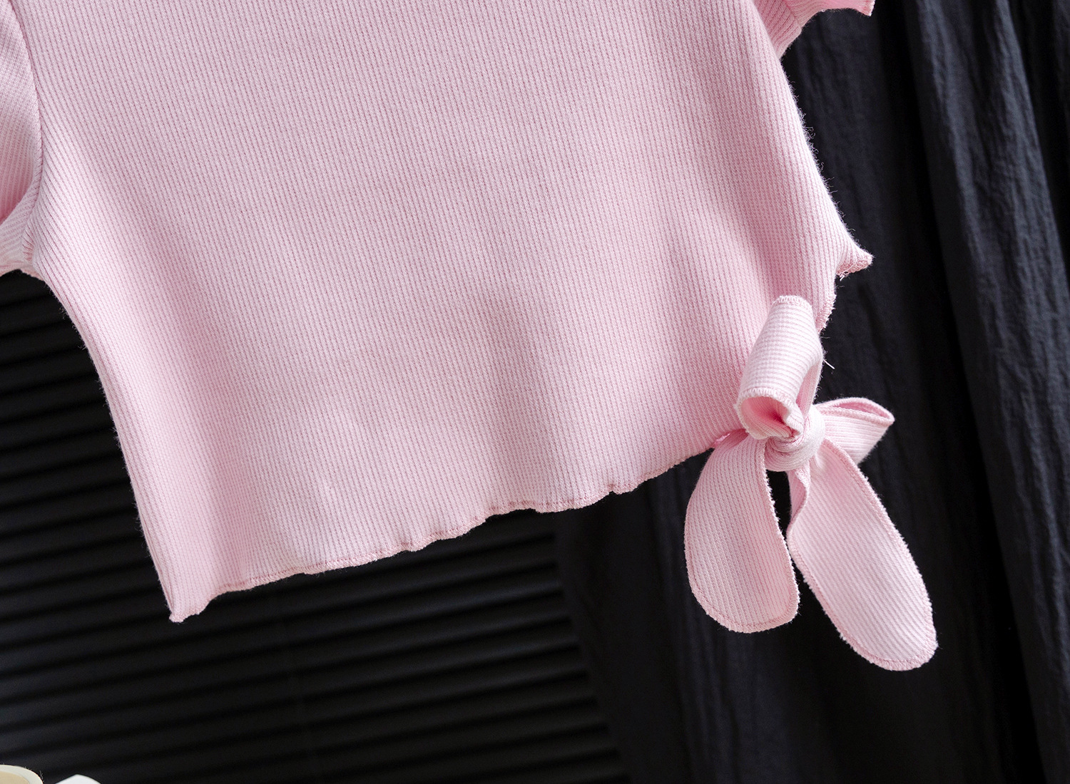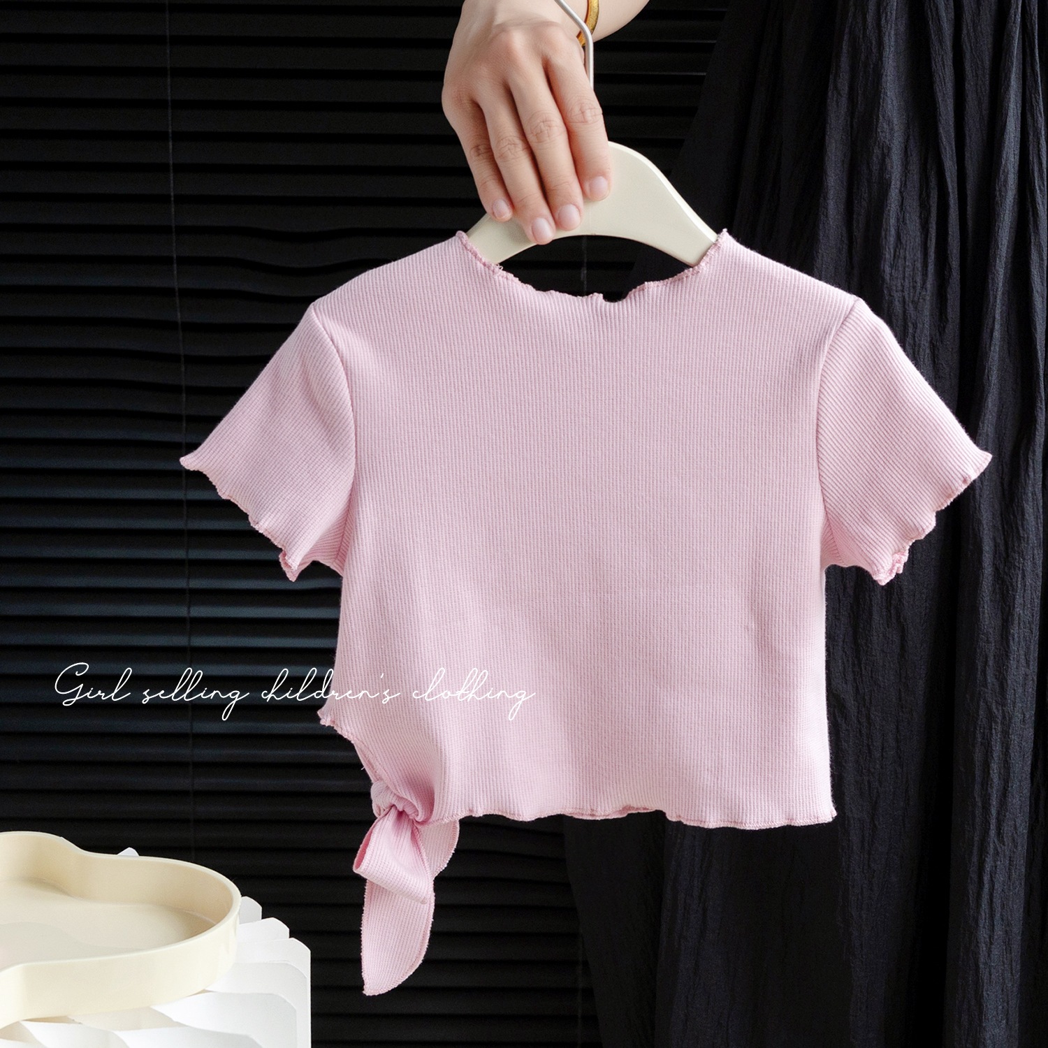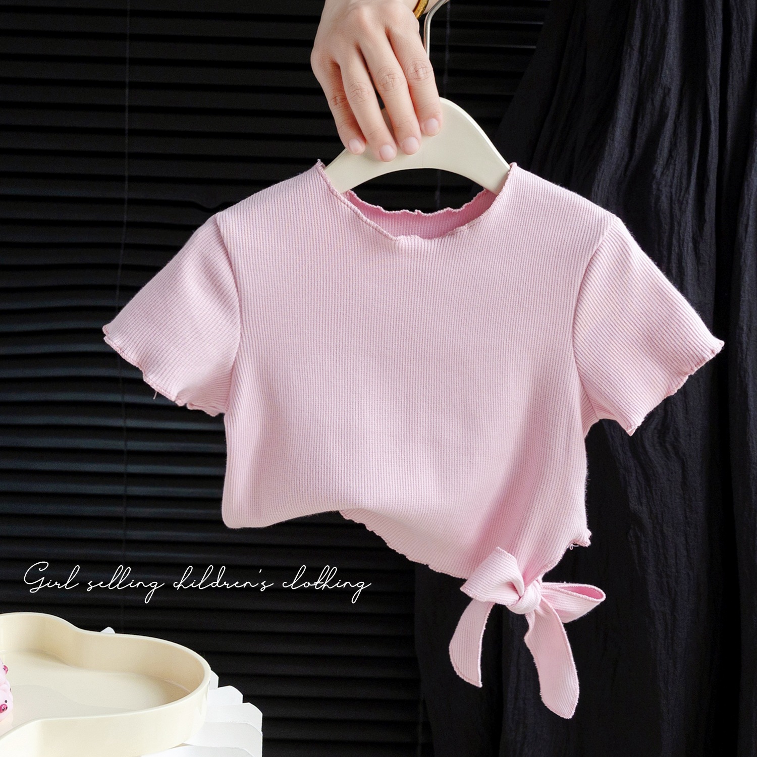 한국 아동복 소녀 반팔 티셔츠 2025 여름 새로운 유행과 세련된 아기 소녀 나비 넥타이 탑