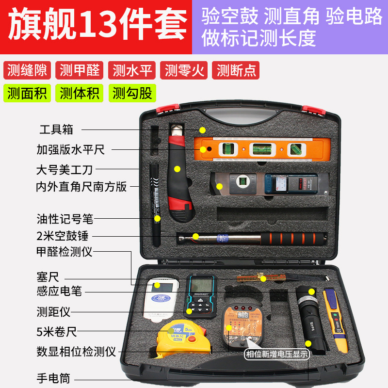 방 검사 도구 세트 텔레스코픽 빈 드럼 해머 타악기 세라믹 타일 전기 스코프 위상 검출기 레벨 통치자 장식 수락