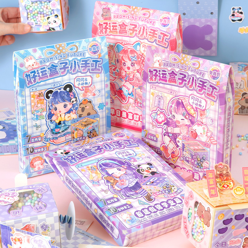 핵심 낯선 사람 스파클링 좋은 행운 상자 작은 수제 스티커 창조적 인 컷-무료 조용한 책 스티커 어린이 수제 장난감 책