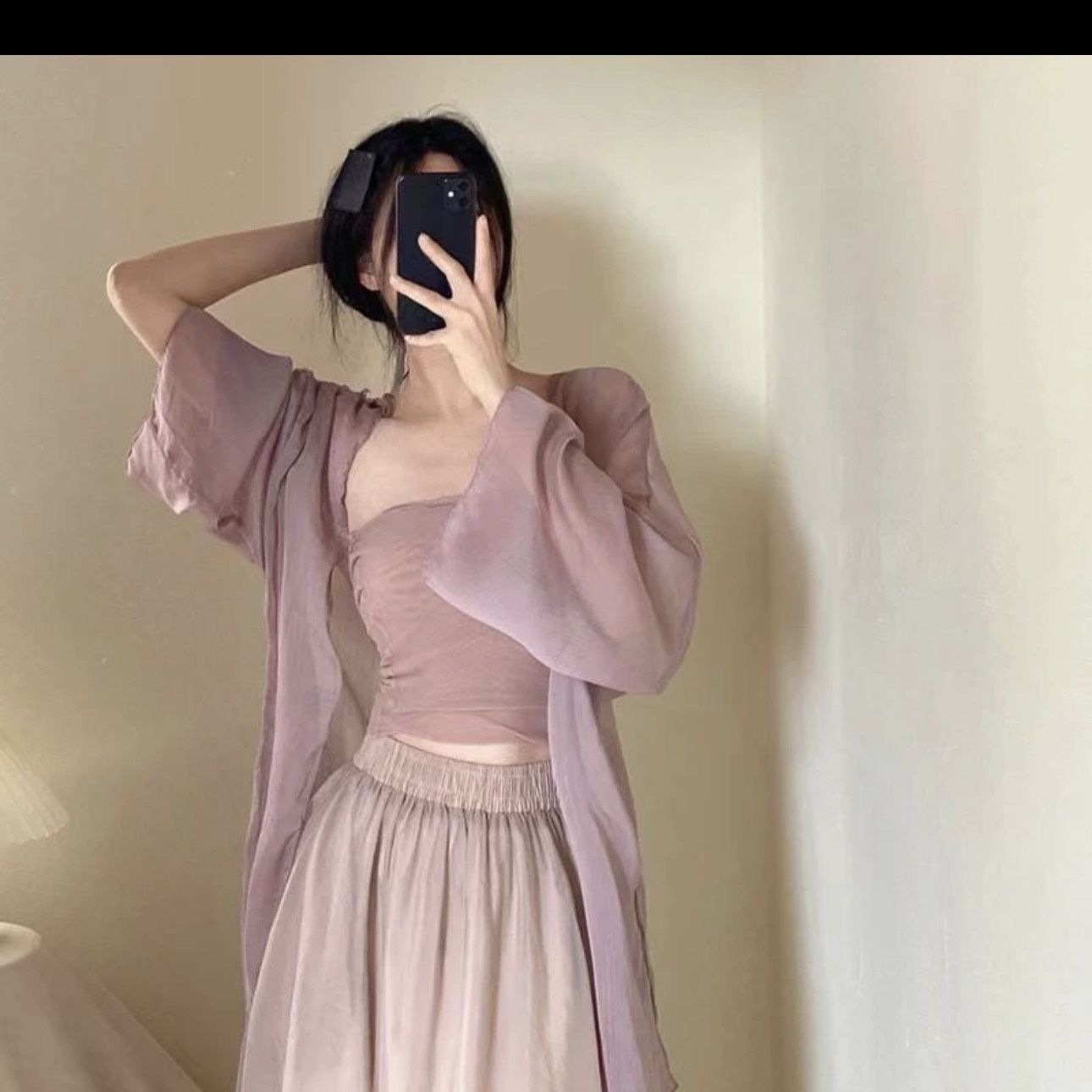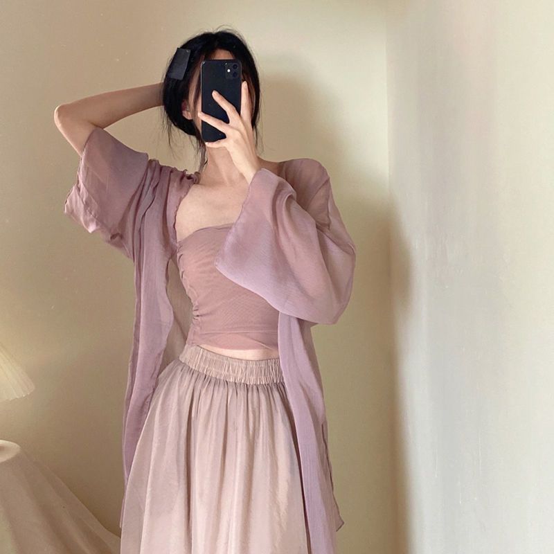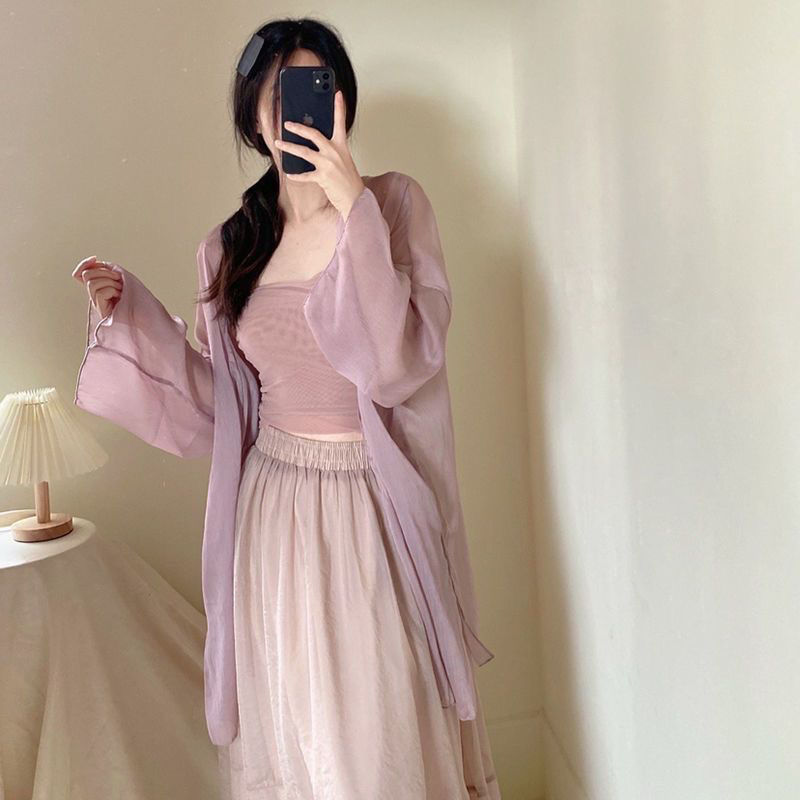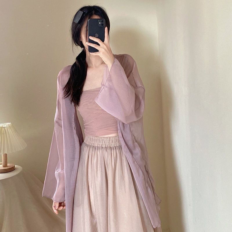 요정 부드러운 복고풍 스타일 쉬폰 긴 카디건 순수한 욕망 느슨한 자외선 차단제 셔츠 기질 우아한 에어컨 셔츠 여성에 눈을 감스토어 가기