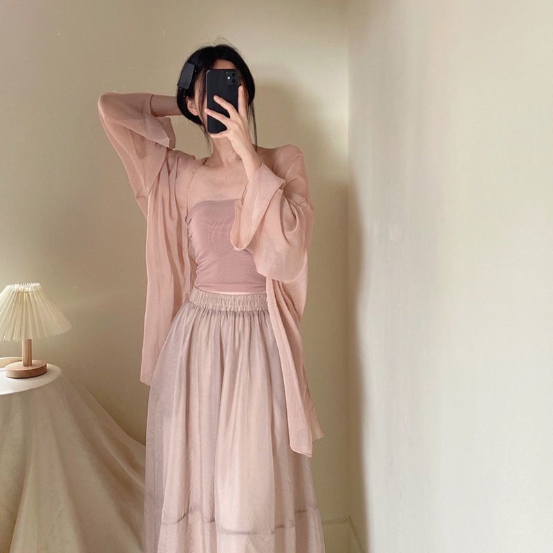 요정 부드러운 복고풍 스타일 쉬폰 긴 카디건 순수한 욕망 느슨한 자외선 차단제 셔츠 기질 우아한 에어컨 셔츠 여성에 눈을 감