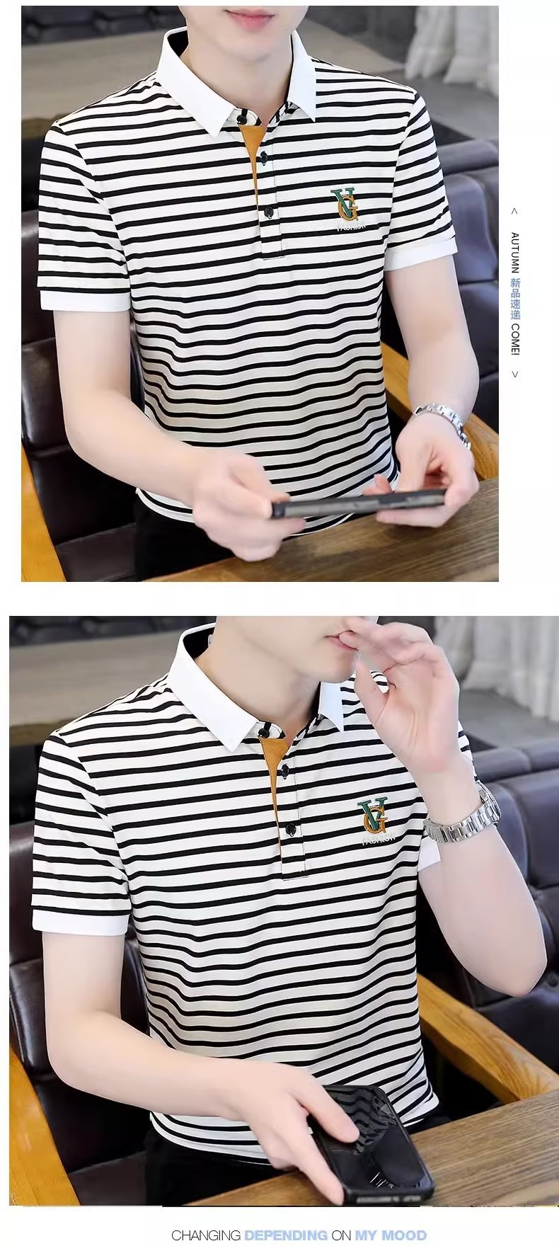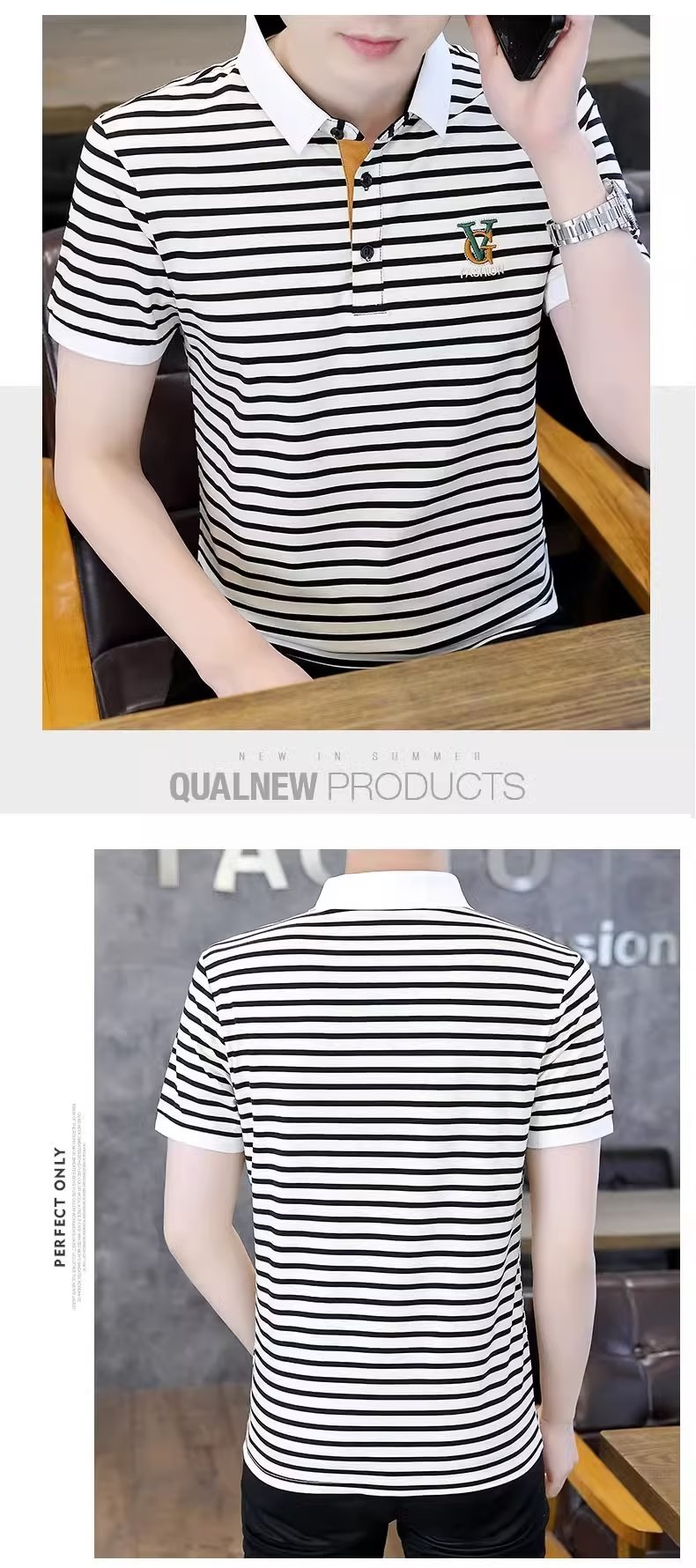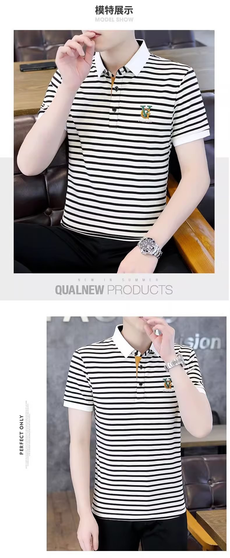 스트라이프 셔츠 남성용 짧은 소매 폴로 셔츠 도매 슬림 아이스 실크 티셔츠 여름 패션 브랜드 인 캐주얼 짧은 소매 탑