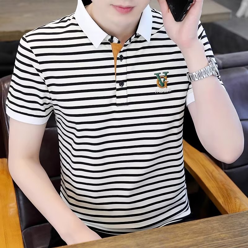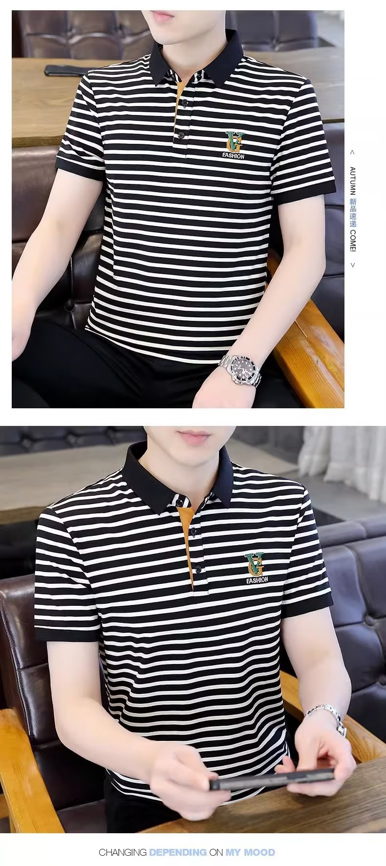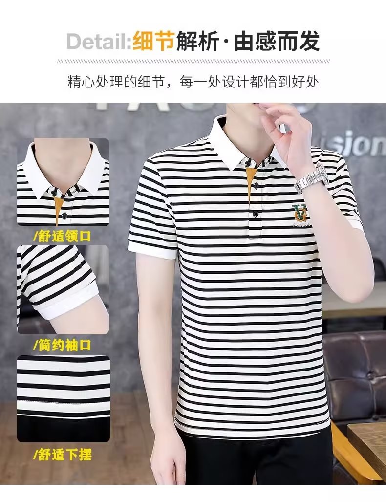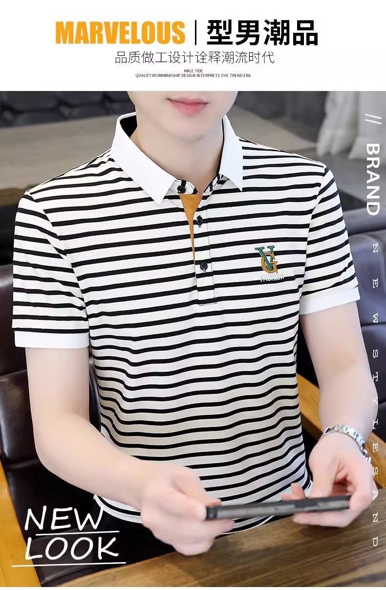 스트라이프 셔츠 남성용 짧은 소매 폴로 셔츠 도매 슬림 아이스 실크 티셔츠 여름 패션 브랜드 인 캐주얼 짧은 소매 탑