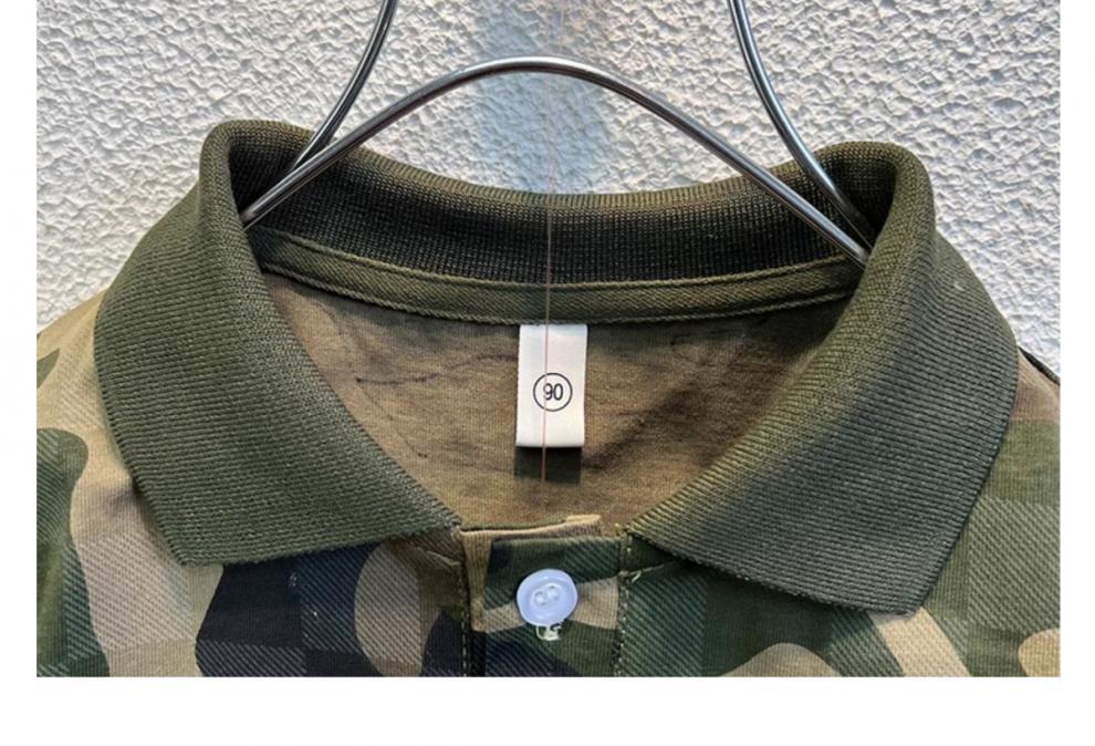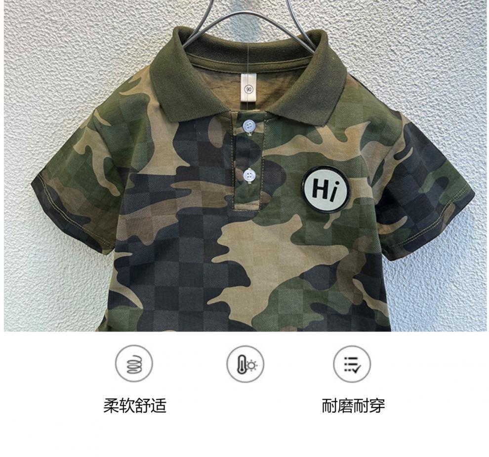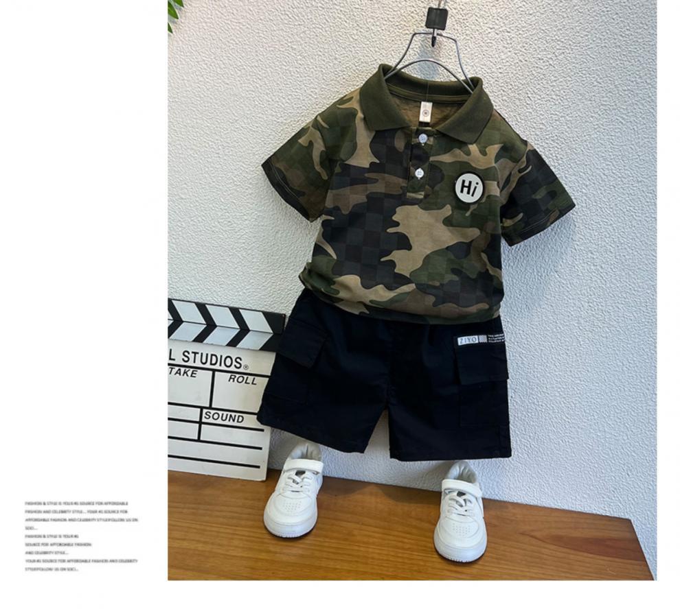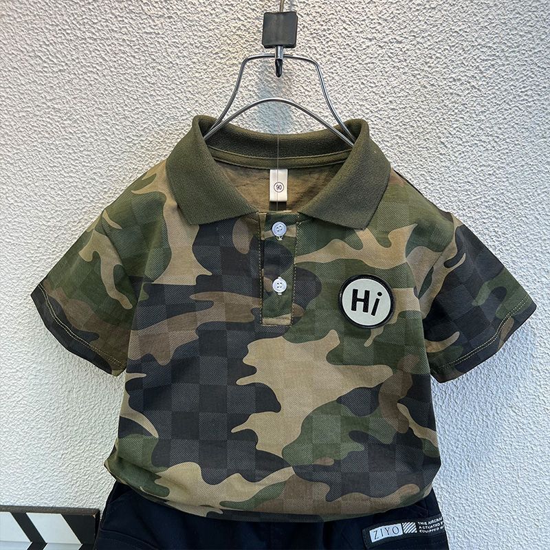 소년 위장 반팔 티셔츠 여름 2024 새로운 러피 잘 생긴 어린이 아기 여름 옷 옷깃 튀긴 거리 세트
