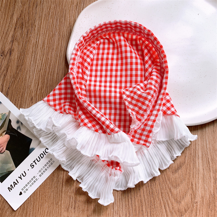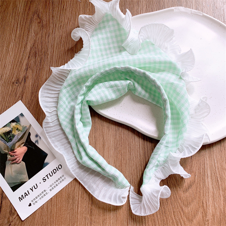 새로운 어린이 격자 무늬 레이스 머리띠 머리띠 우아한 달콤한 귀여운 목가적 스타일 삼각형 머리띠 사진 헤드웨어