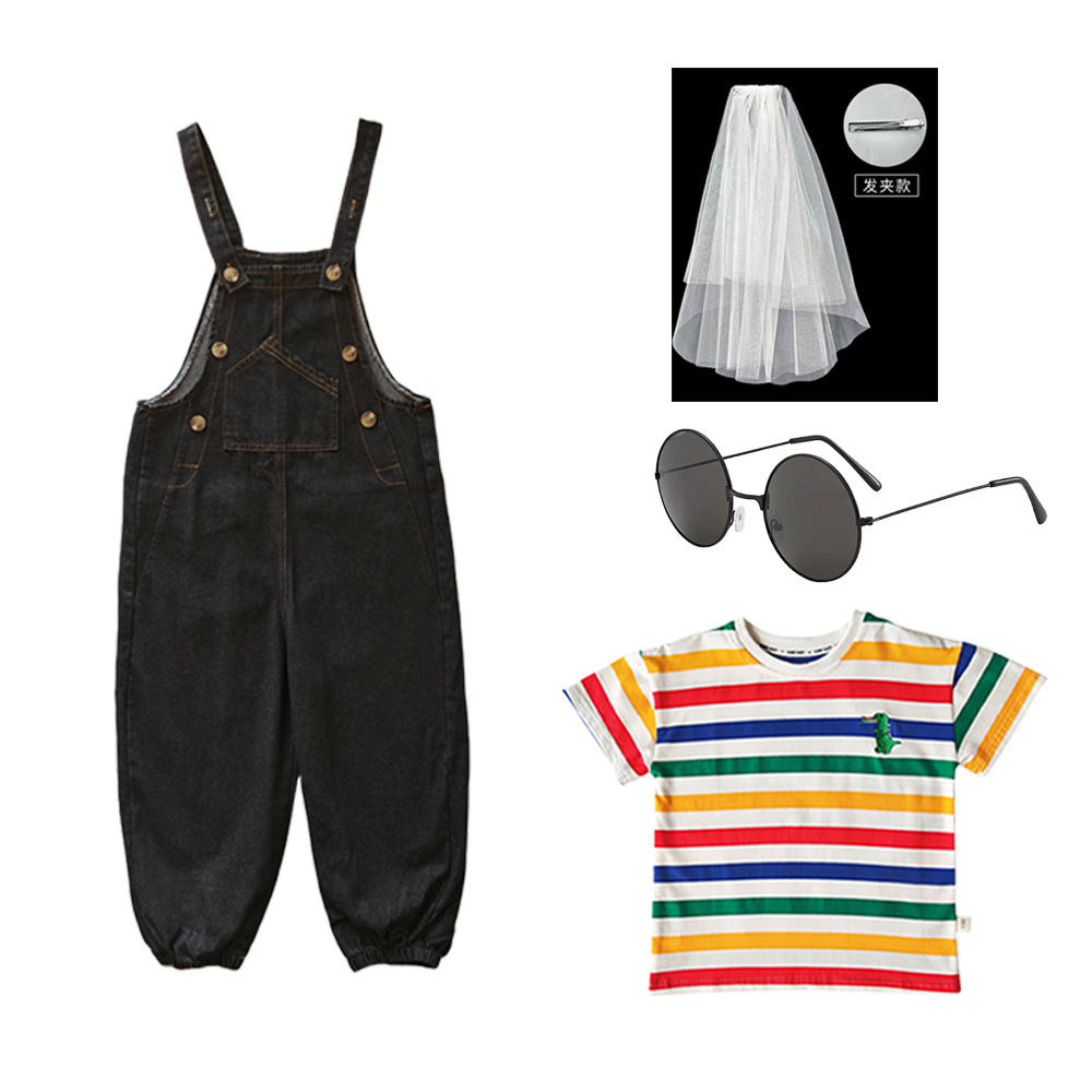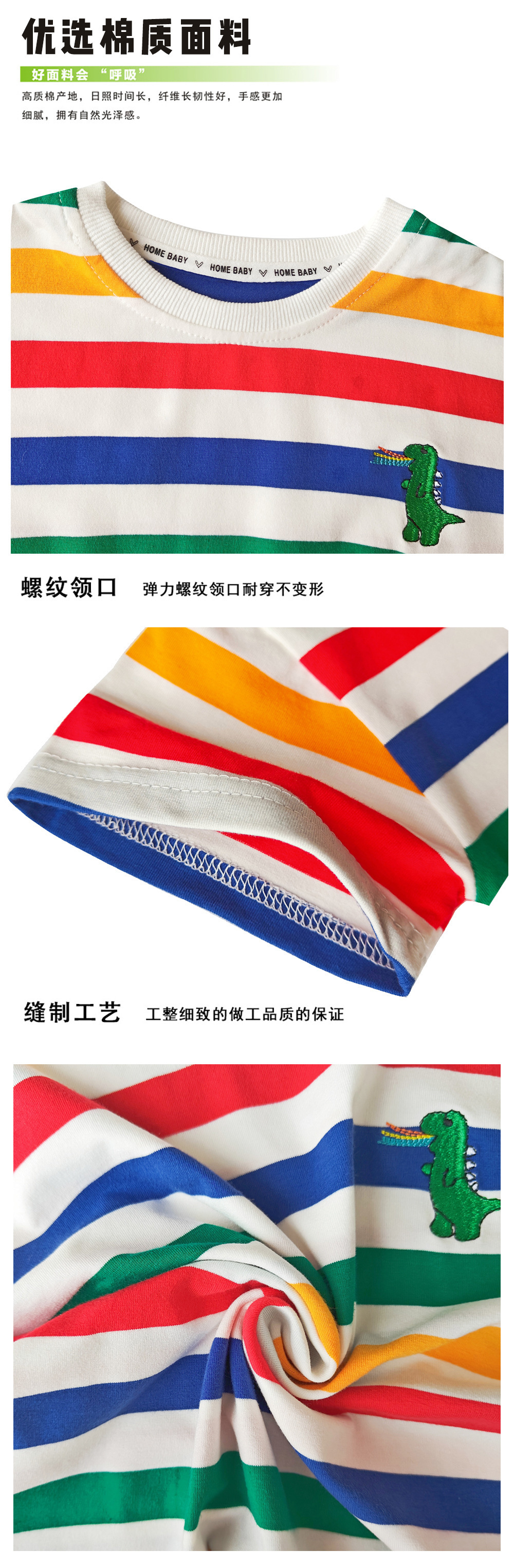유치원 의류 어린이 여름 무지개 줄무늬 반팔 블랙 스트랩 롱 바지 클래스 의류 서양식 6 일 댄스