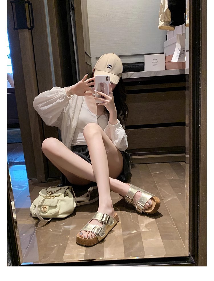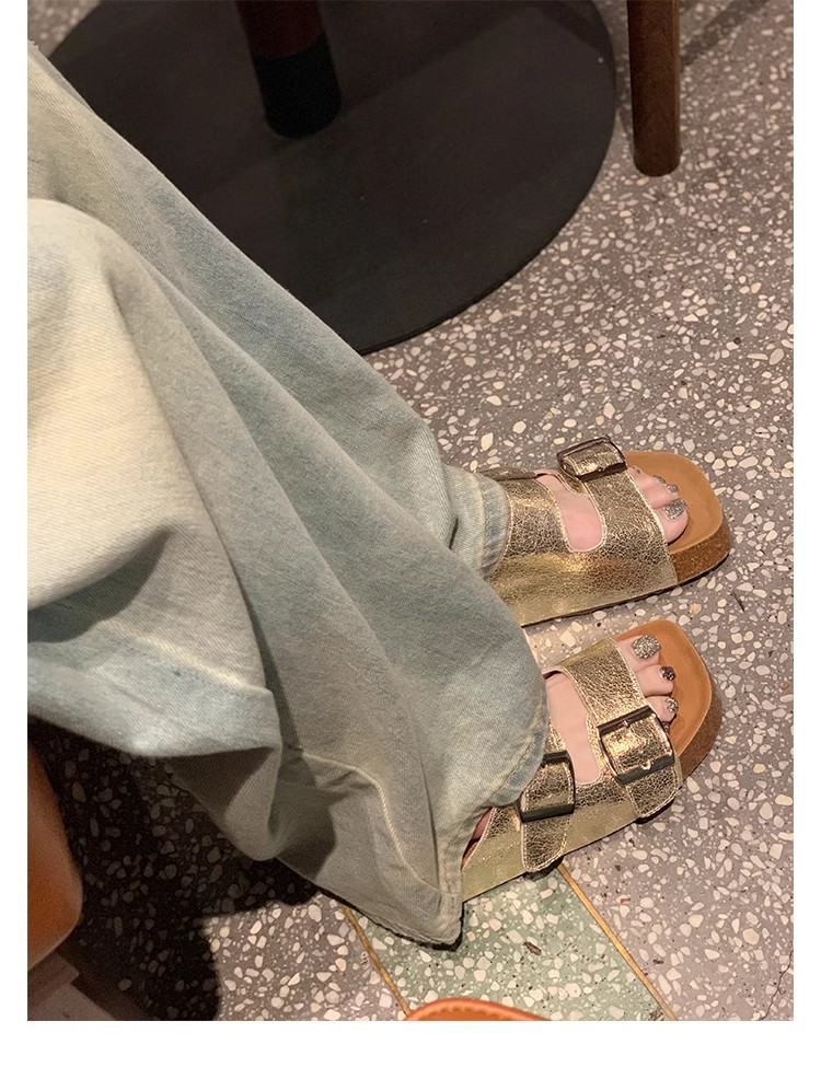 재고 포도 엄마 게으른 한 페달 더블 브레스트 비치 두꺼운 밑창 샌들 여성용 여름 외투스토어 가기