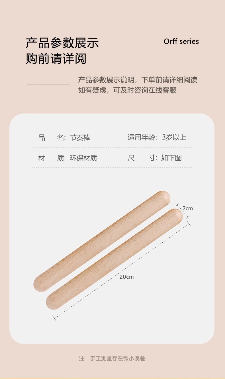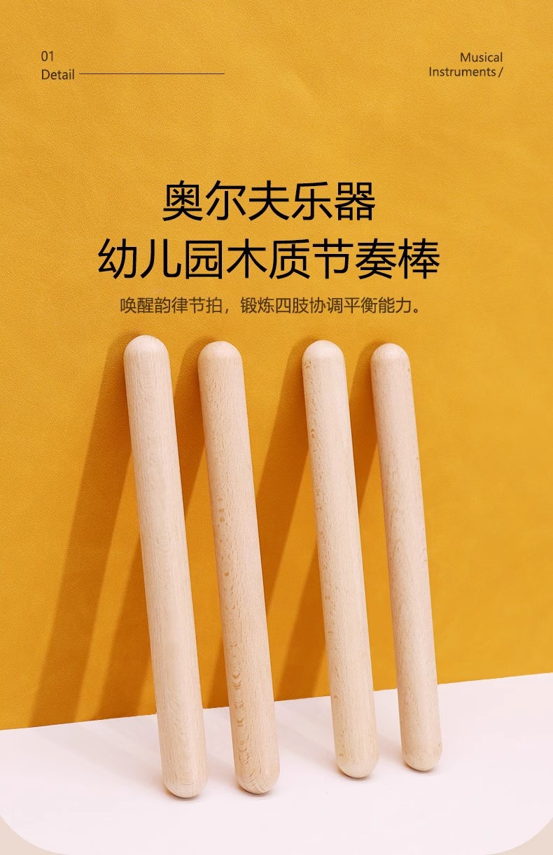 리듬 스틱 타악기 Orff 타악기 어린이 음악 교육 보조 유치원 사운드 스틱 조기 교육 로그 스틱스토어 가기