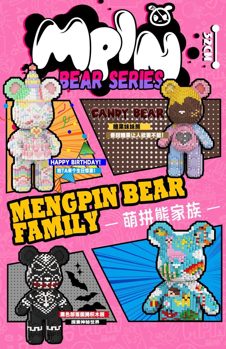 Meng Pin Meng Li Bear M66 시리즈 작은 입자 빌딩 블록 조립 교육 장난감 소년 소녀 뇌 선물 장식품