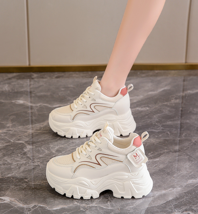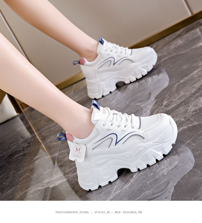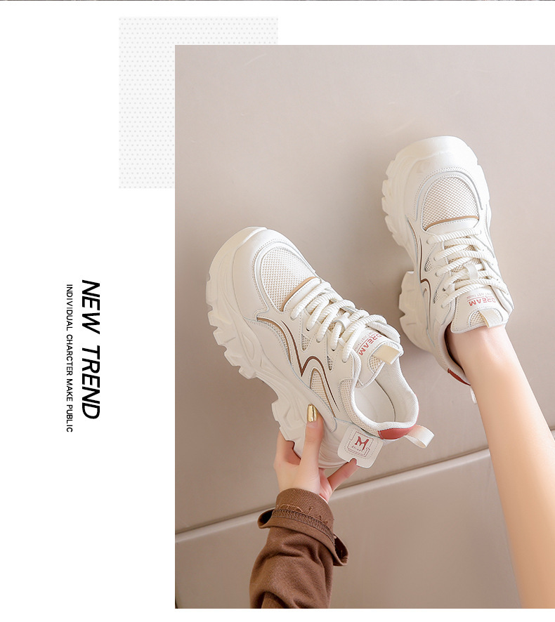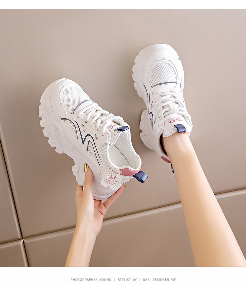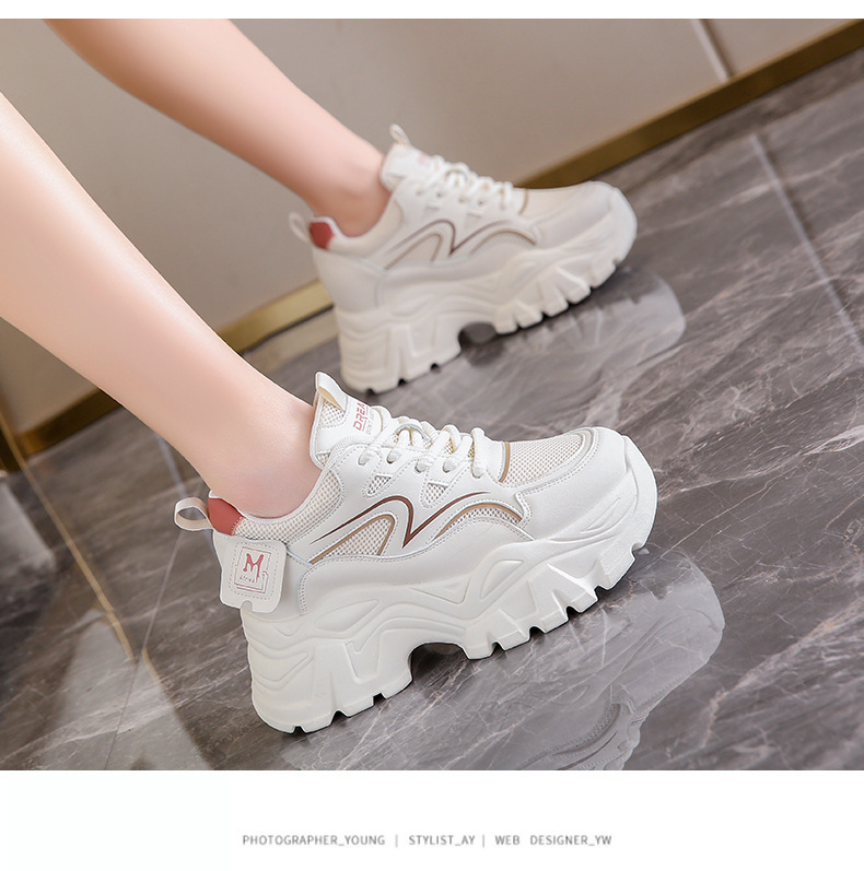 두꺼운 밑창 작은 흰색 신발 2025 어린이를위한 새로운 높이 증가 신발 여름 얇은 통기성 짧은 슬림 키 큰 아빠 신발스토어 가기