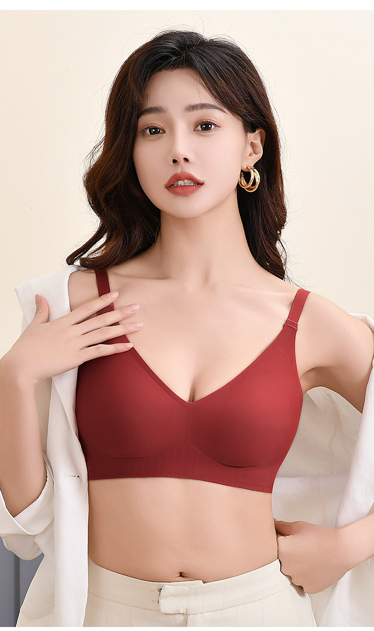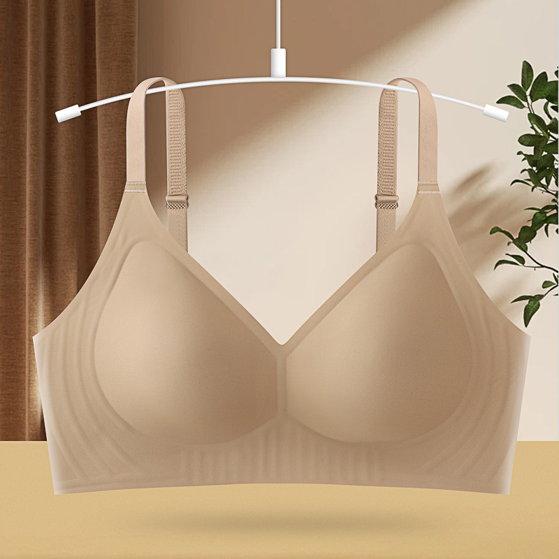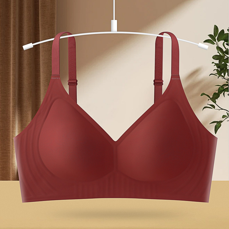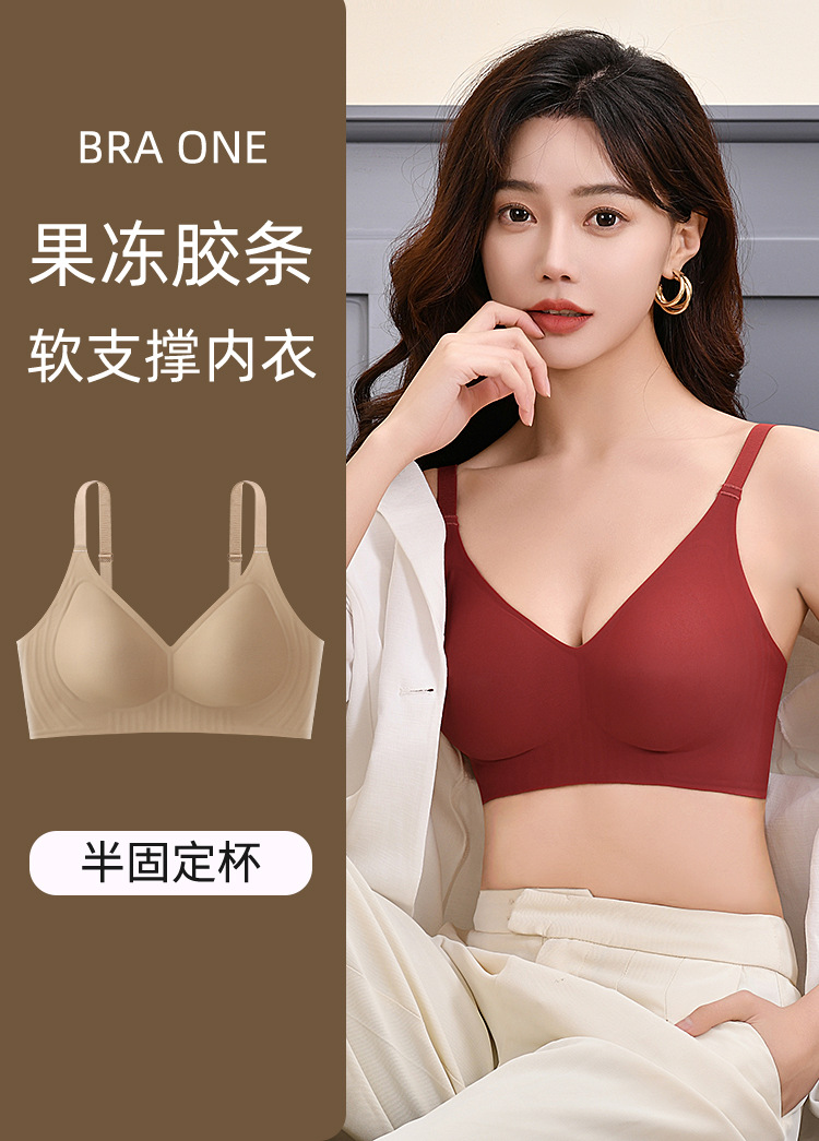 여름 얇은 스틸 링 젤리 브라 푸쉬 업 패러 머리 브라 노마크 속옷 여성의 큰 가슴 작은 브래지어 여성스토어 가기