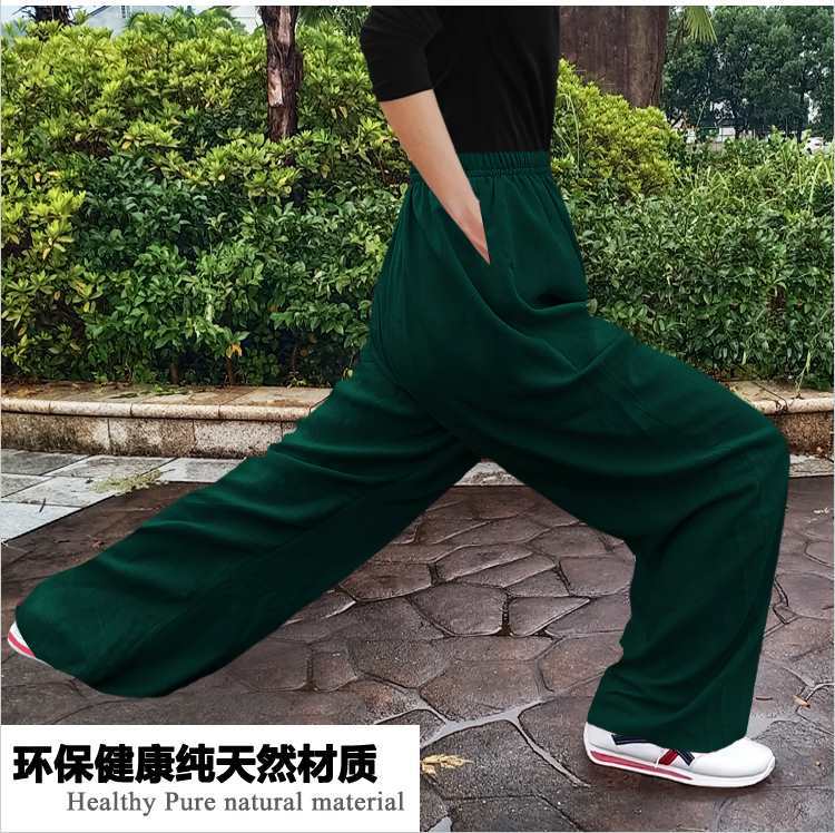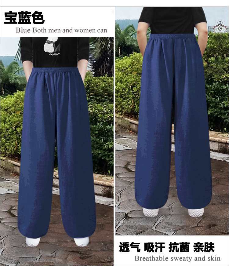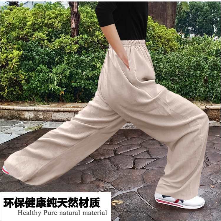 봄과 여름 코튼 타이치 바지 남녀 느슨한 블루머스 리넨 요가 바지 피트니스 바지 격투기 공연 바지 운동 바지