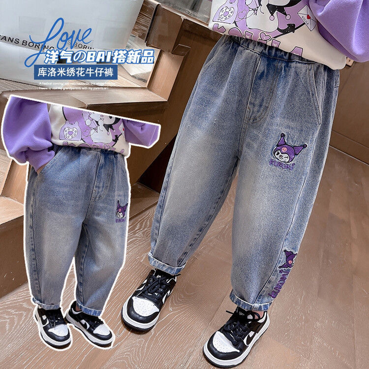 새로운 도착 올매치 걸스 청바지 봄 및 가을 자수 만화 유행 캐주얼 바지 중소 어린이 소녀와 아기 소녀 유행 캐주얼 바지스토어 가기