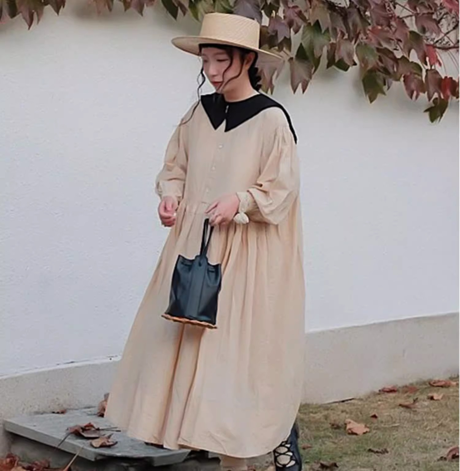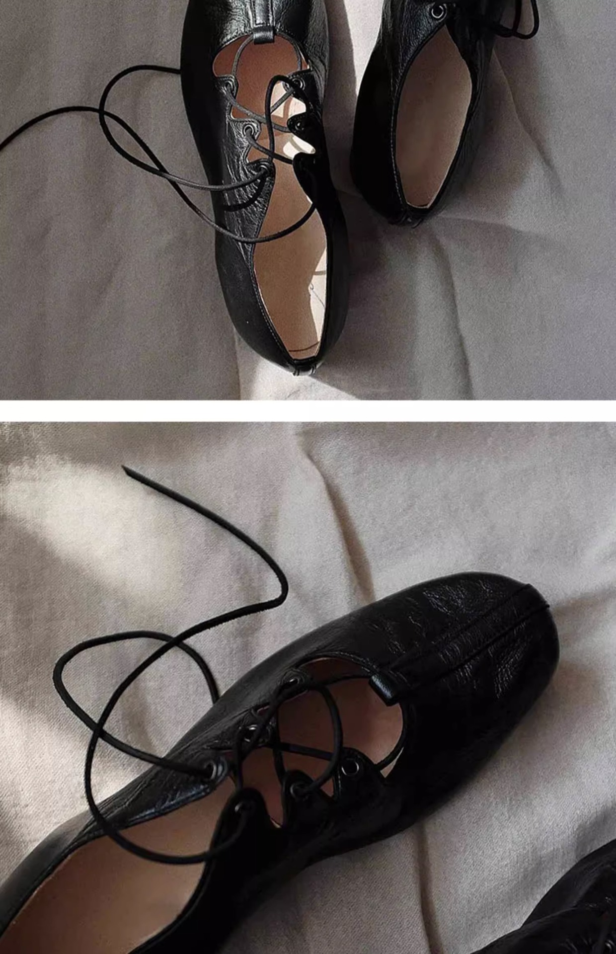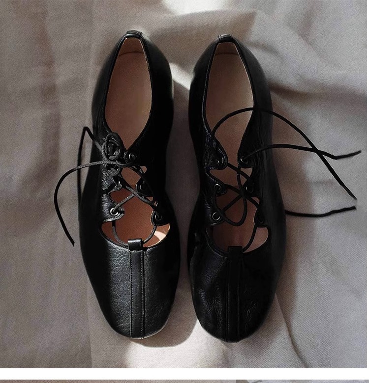 발레 슈즈 여성의 2023 봄과 가을 새로운 작은 가죽 신발 둥근 발가락 레이스 업 할로우 신발 얕은 입 플랫 메리 제인 신발스토어 가기