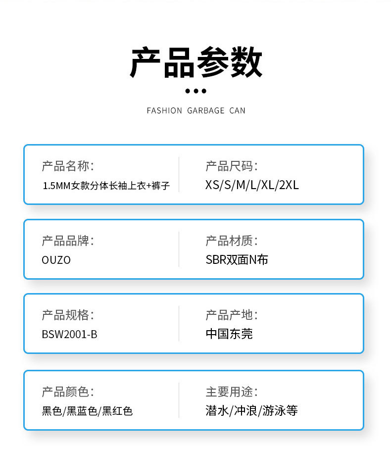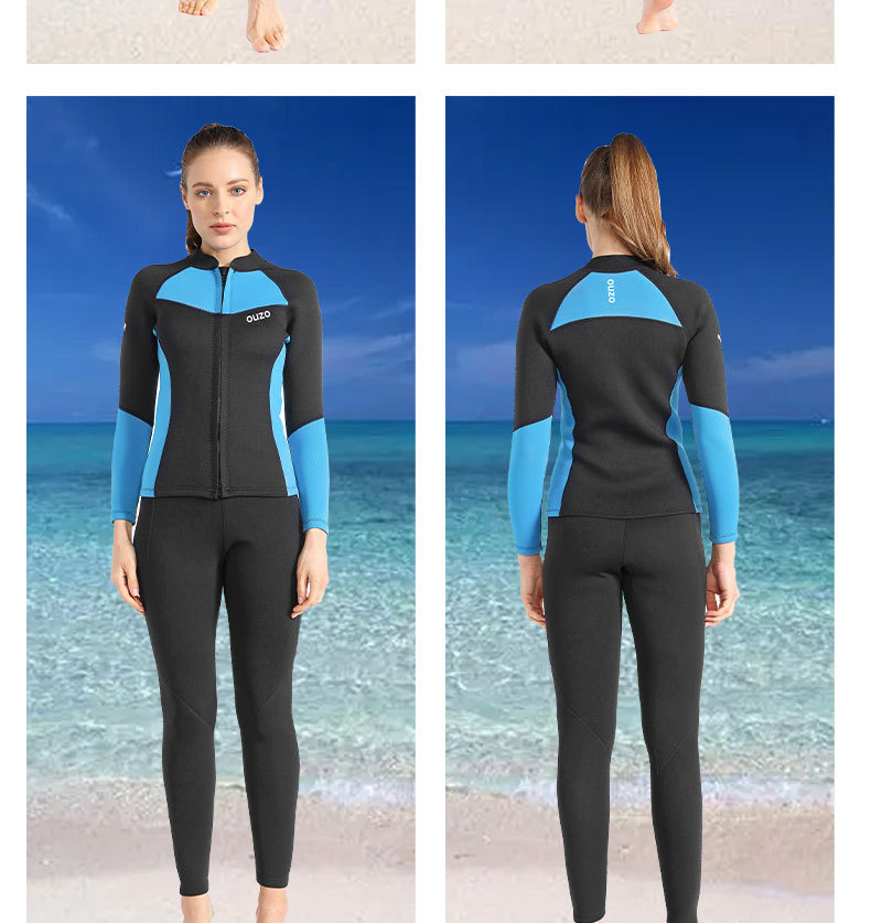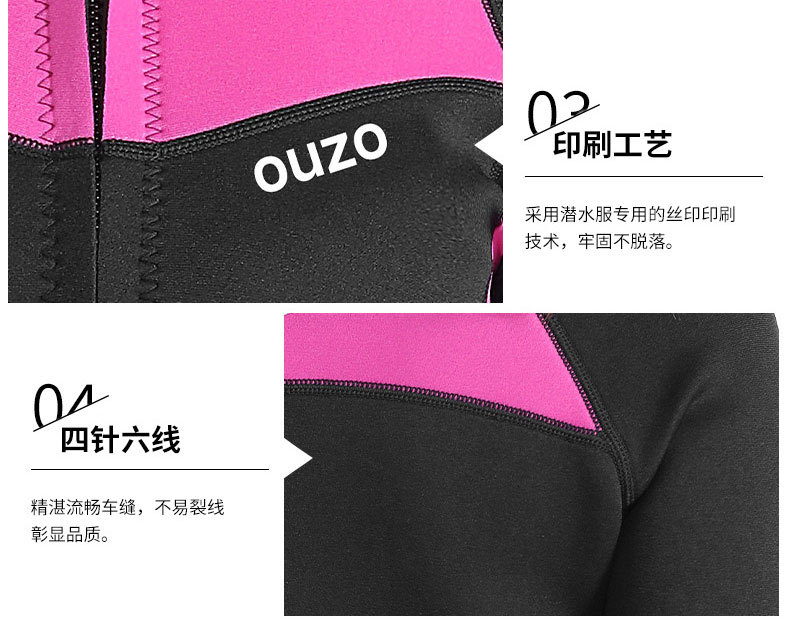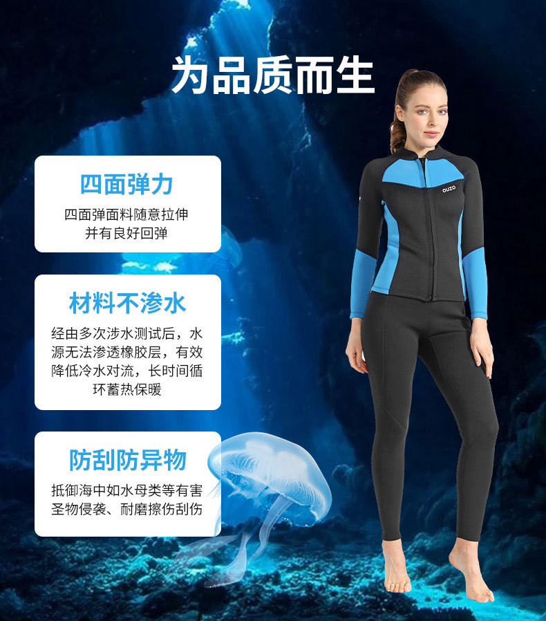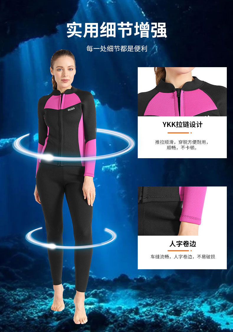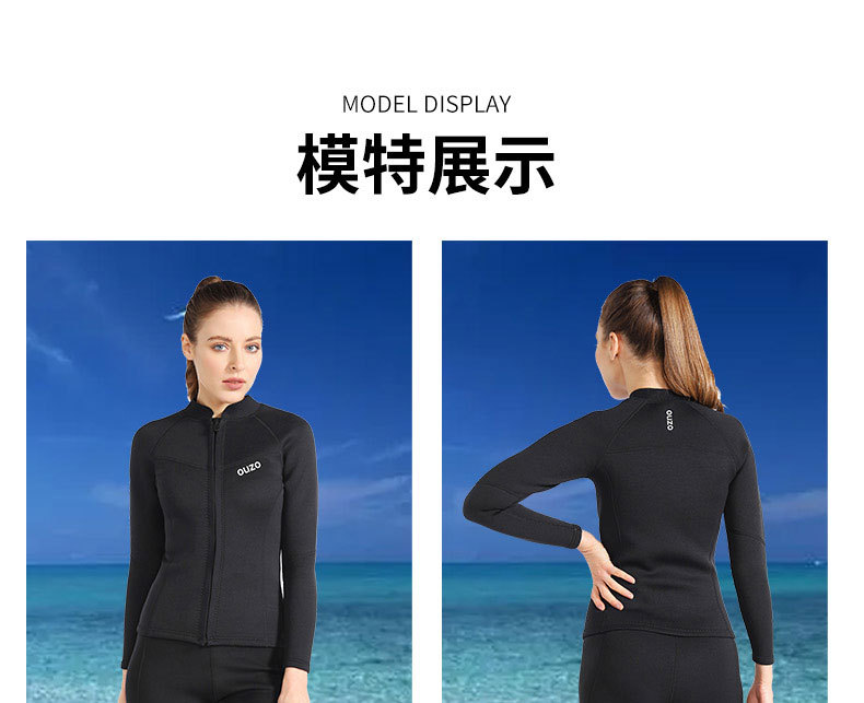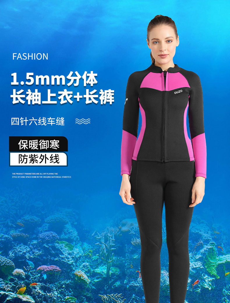 1.5mm潜水服ouzo女款长袖分体潜水衣防寒保暖防晒游泳冲浪服上衣