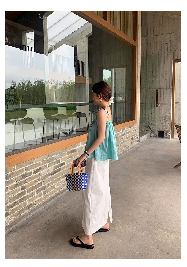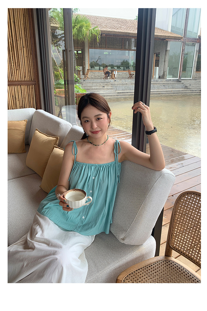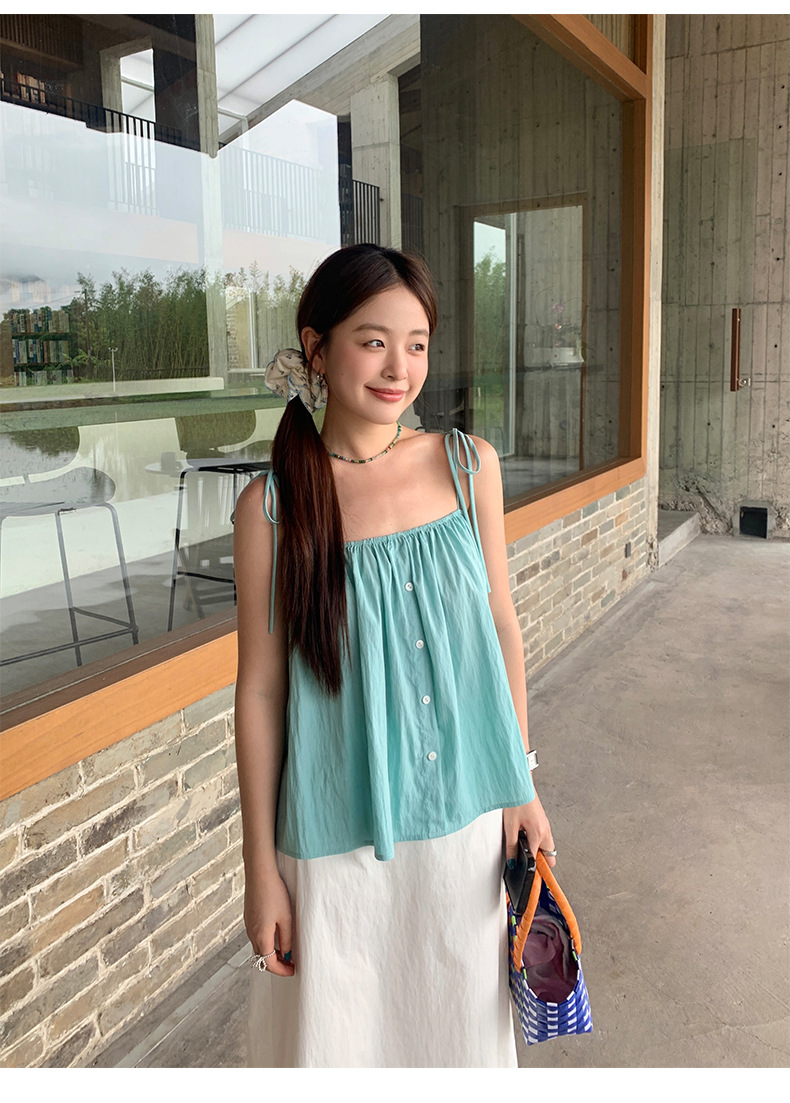 Huang Zhe 달콤하고 매운 스타일 스트랩 작은 서스펜더 여성 여름 한국 스타일 아기 인형 셔츠 민소매 조끼 셔츠 142SH332