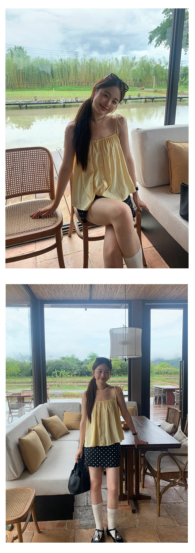 Huang Zhe 달콤하고 매운 스타일 스트랩 작은 서스펜더 여성 여름 한국 스타일 아기 인형 셔츠 민소매 조끼 셔츠 142SH332스토어 가기