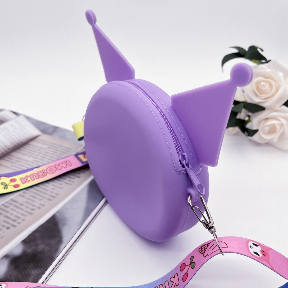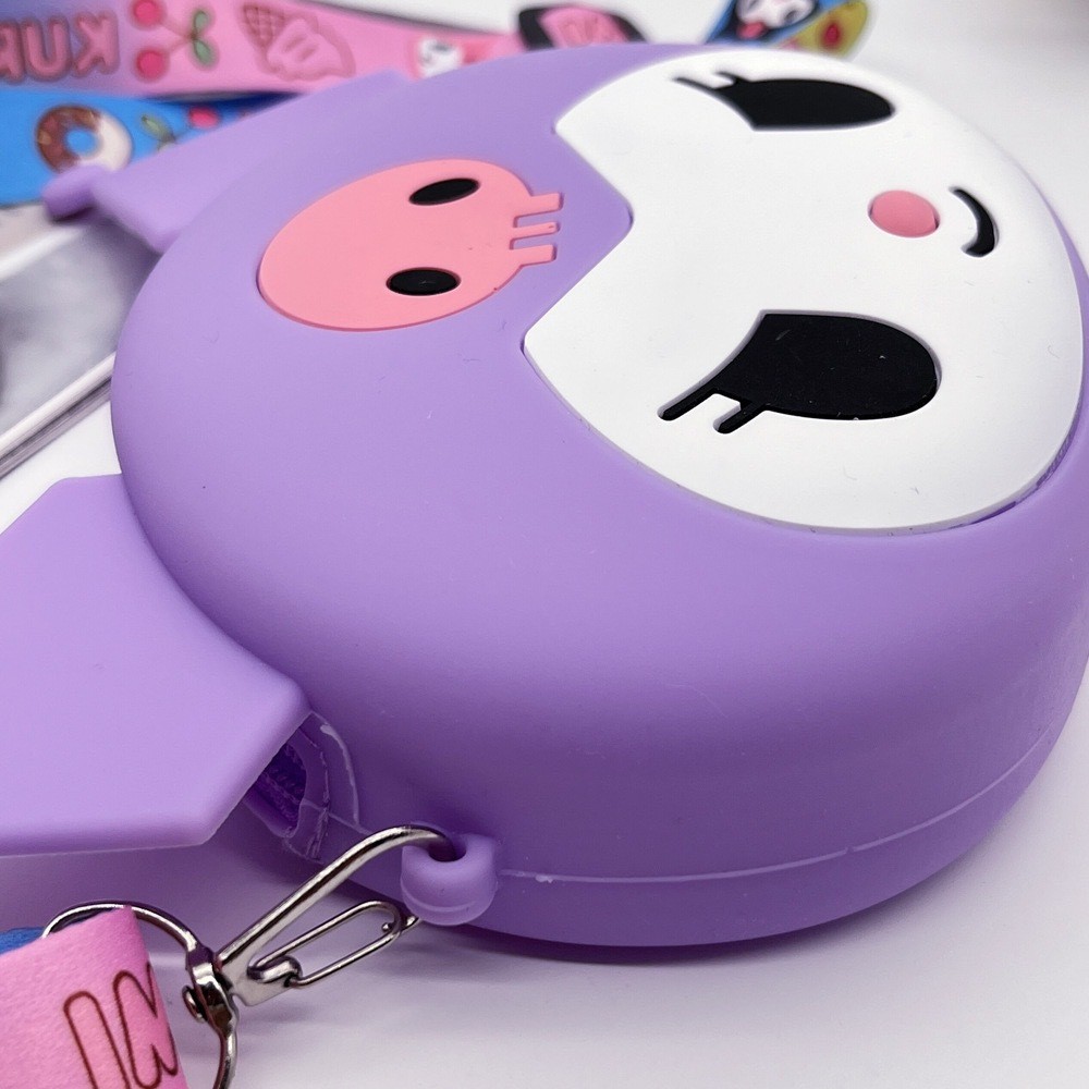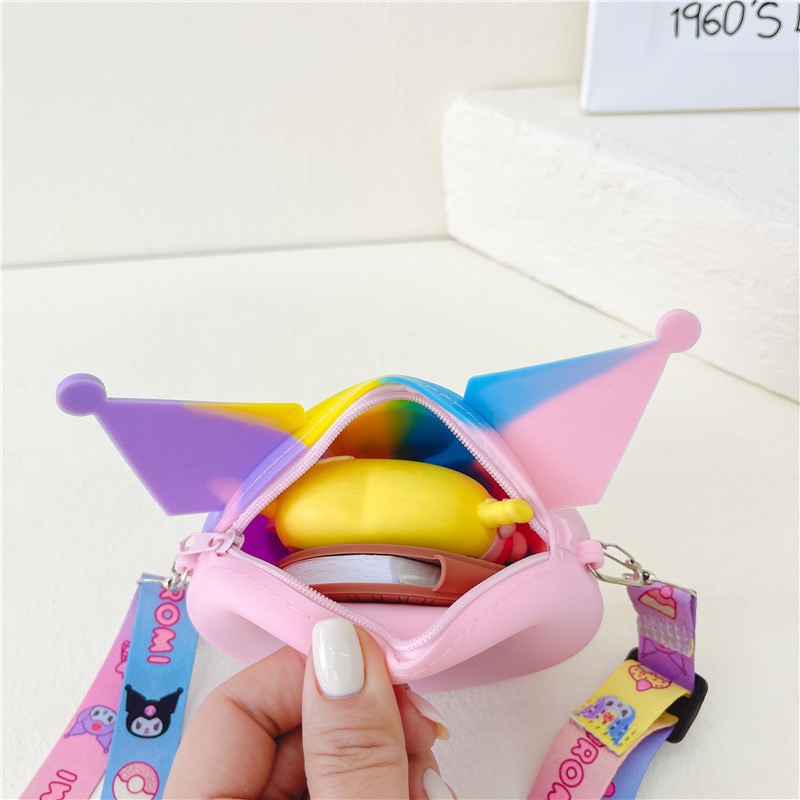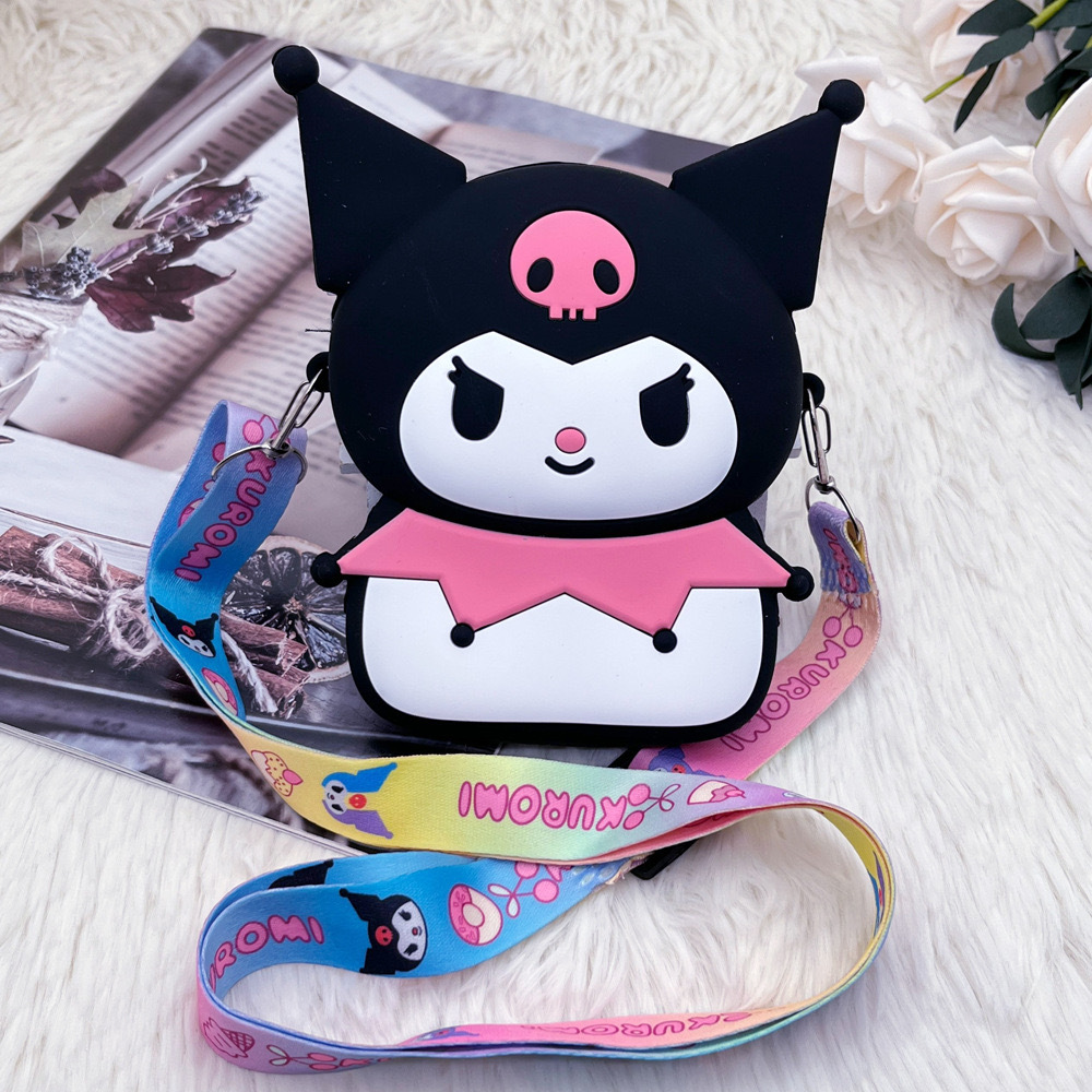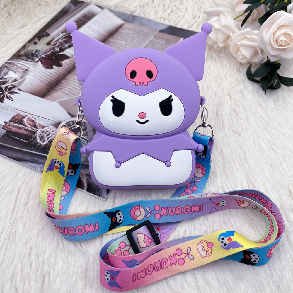 쿠로미 어린이 가방 만화 동전 지갑 이어폰 수납 가방 어린 소녀용 숄더 크로스백 가벼운 실리콘 가방