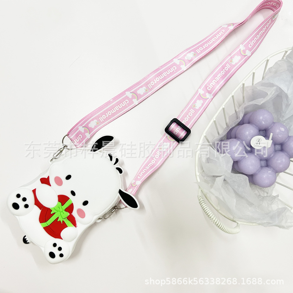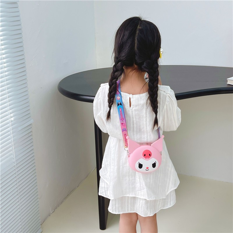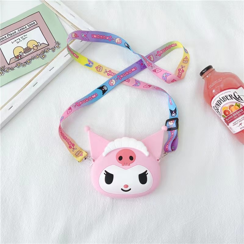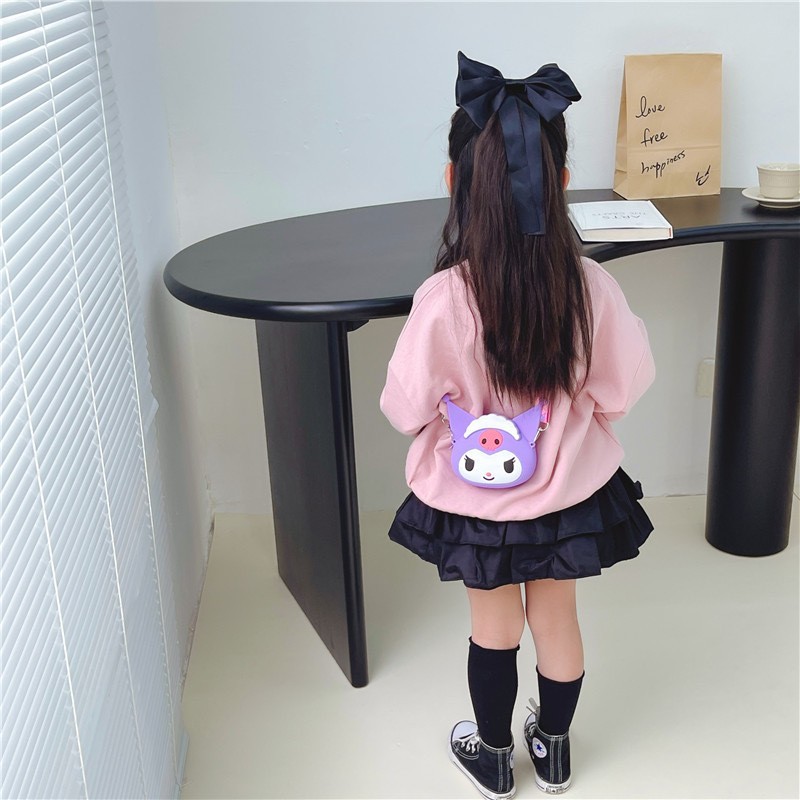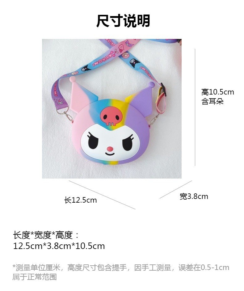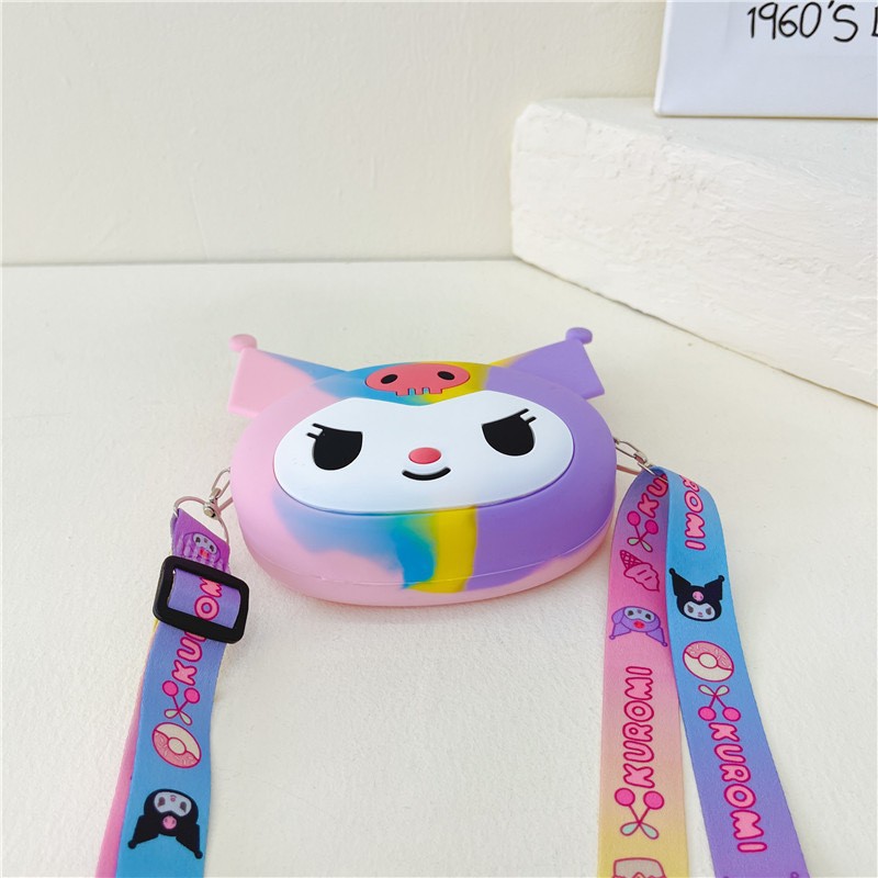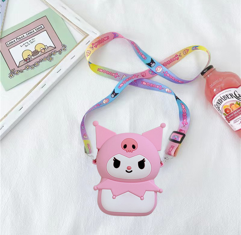쿠로미 어린이 가방 만화 동전 지갑 이어폰 수납 가방 어린 소녀용 숄더 크로스백 가벼운 실리콘 가방