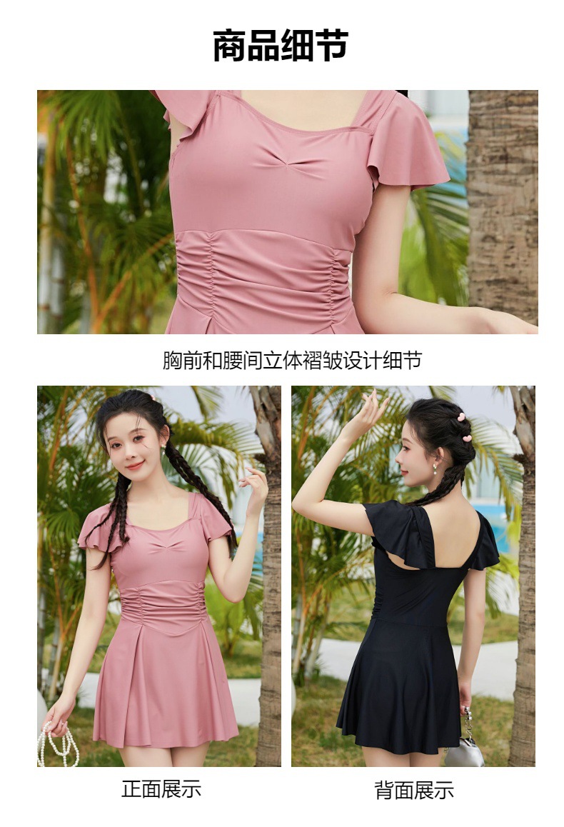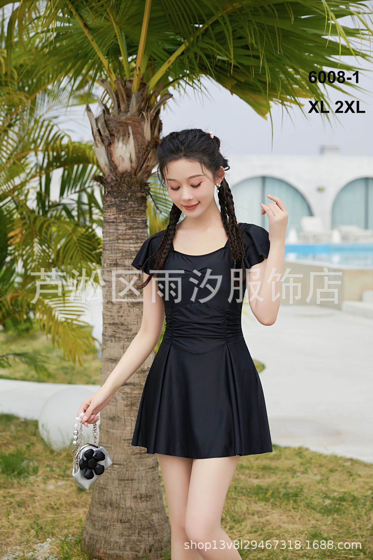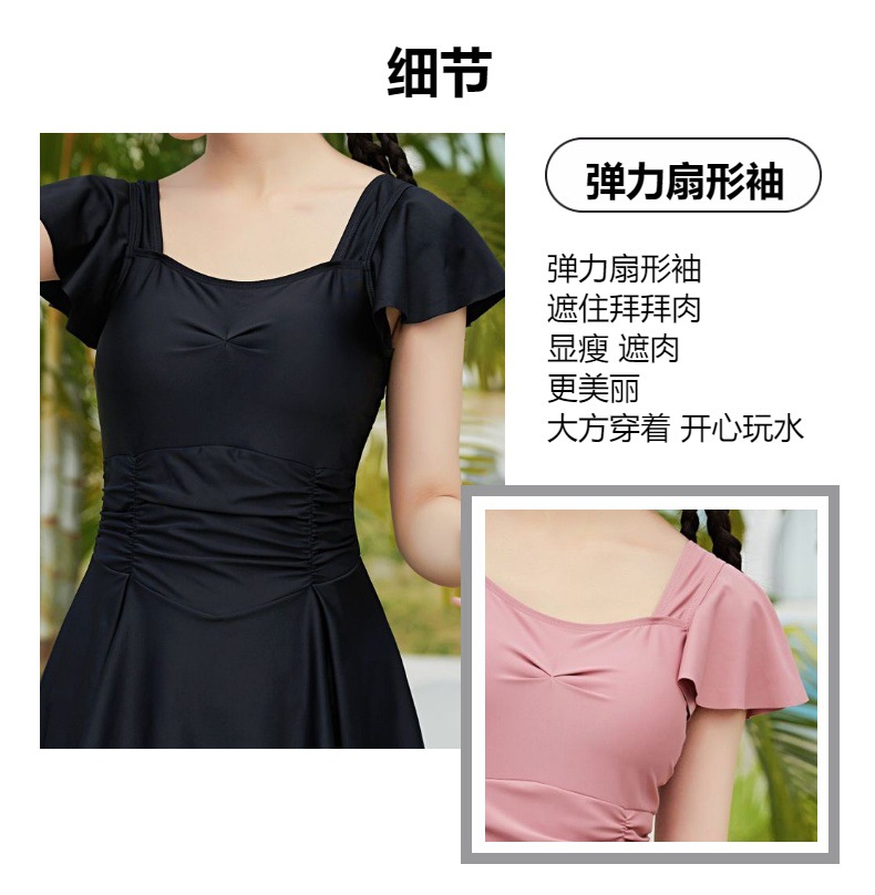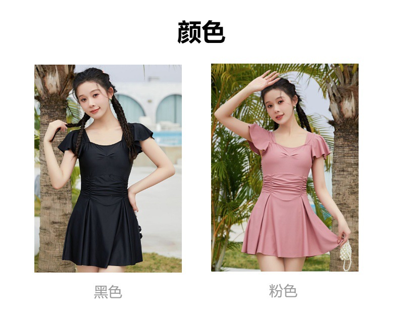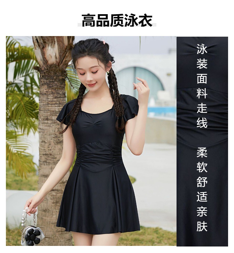 새로운 좋은 품질의 나일론 수영복 여성의 원피스 대형 스커트 보수적 인 복서 반바지 슬림하고 우아한 순수한 색상의 아름다움스토어 가기