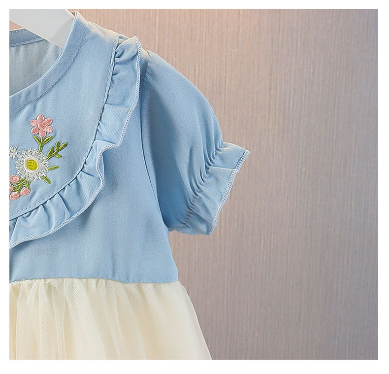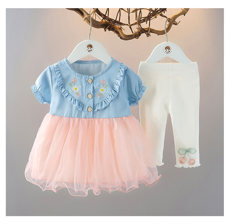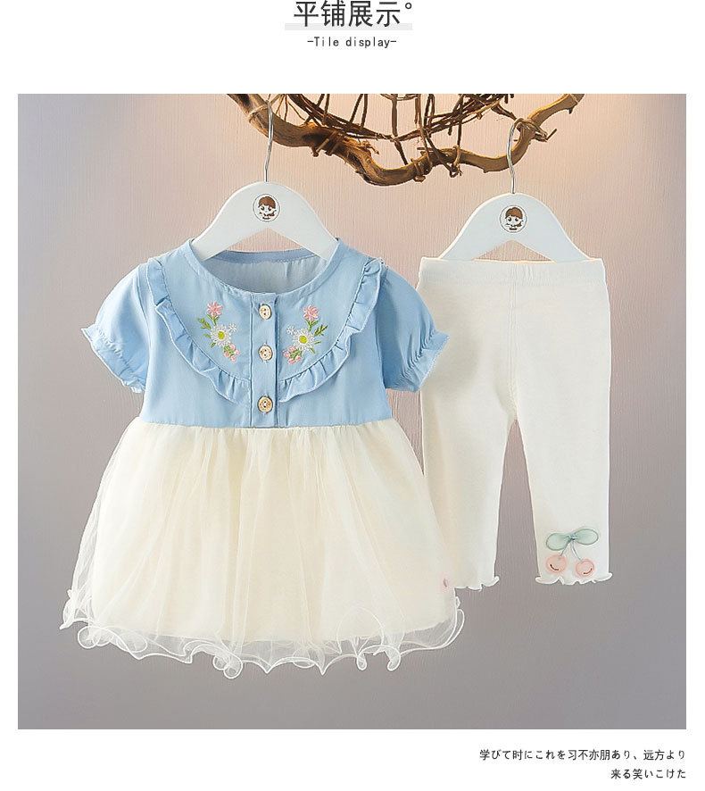1-2-3 세 소녀 짧은 소매 거즈 스커트 여름 두 조각 여름 새로운 아기 소녀 공주 스커트 크롭 바지 스커트-스토어 가기