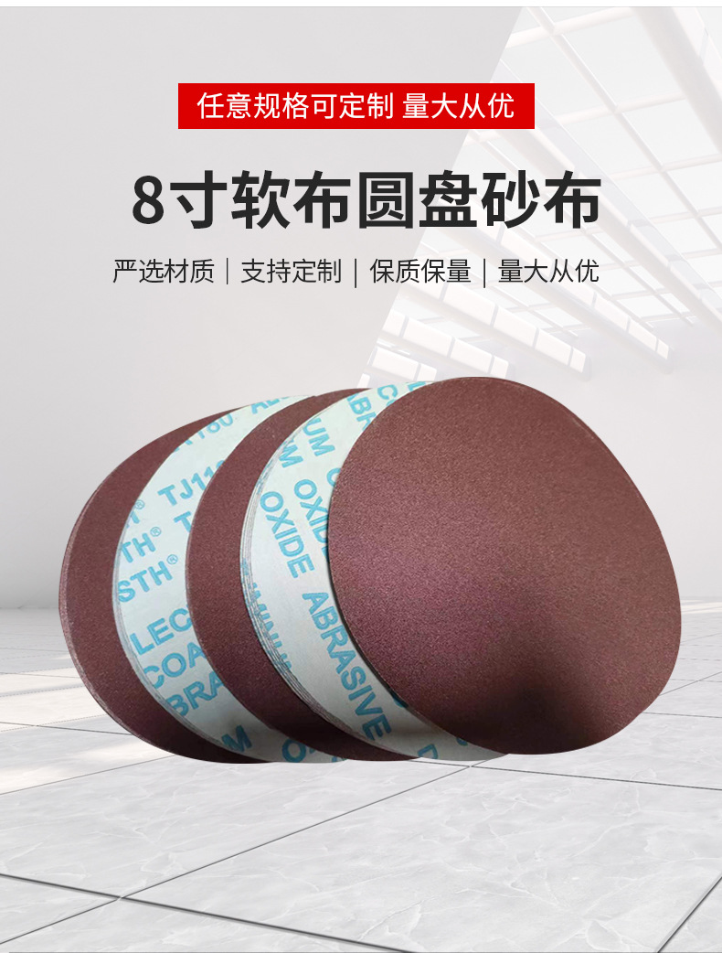 8 인치 부드러운 천 디스크 사포 에머리 천 접착제 미세 연마 사포 디스크 사포 종이 양면 접착 종이 빨간 사포 도매