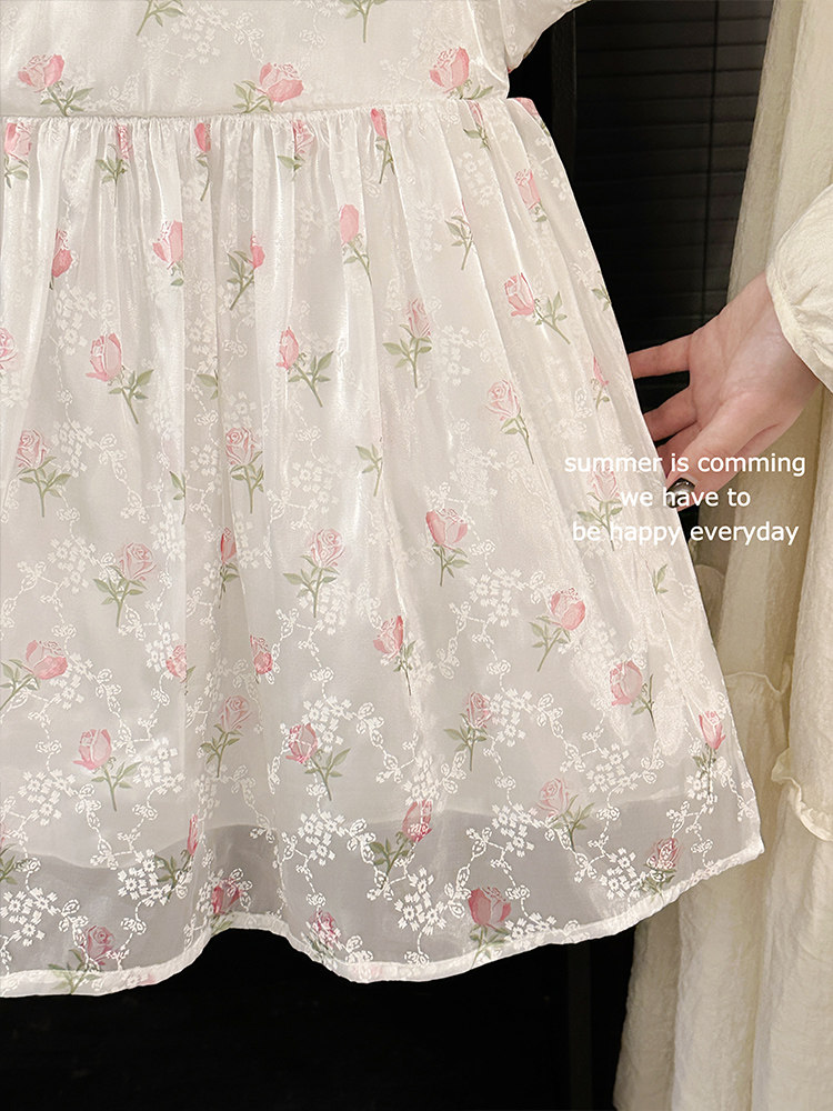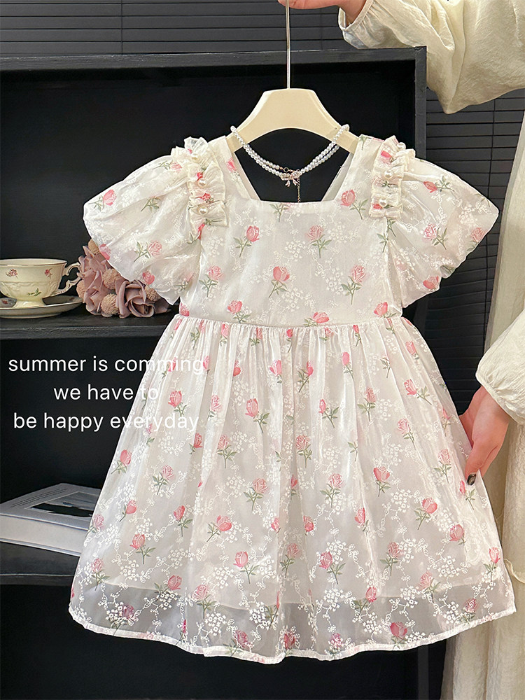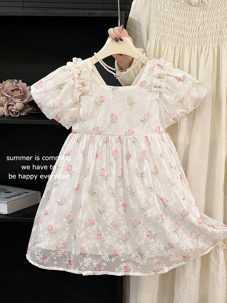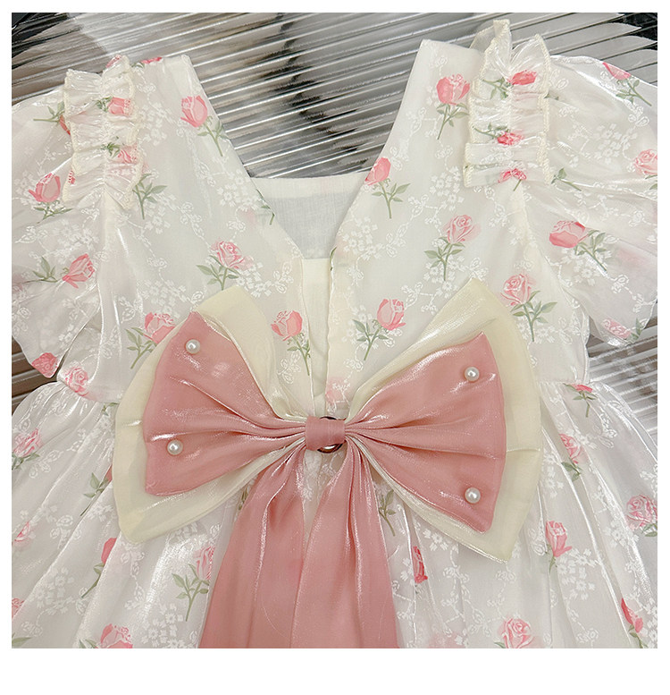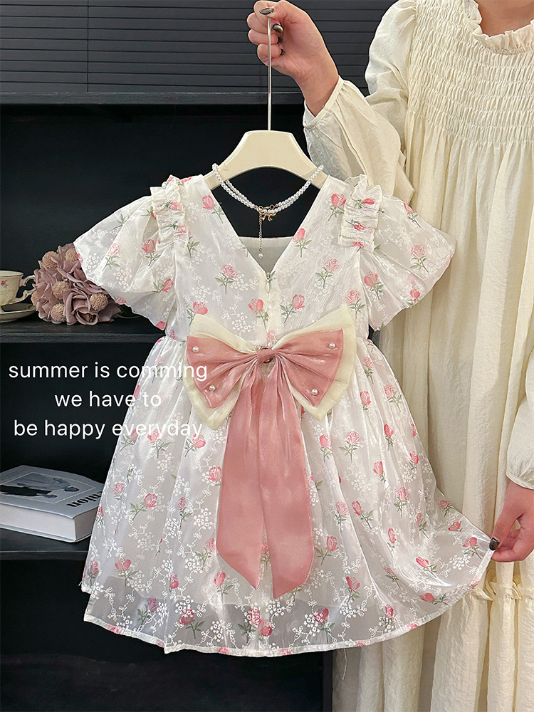 소녀 여름 반팔 원피스 어린이 공연 원피스 빅 보우 D 구슬 원피스 공주 원피스