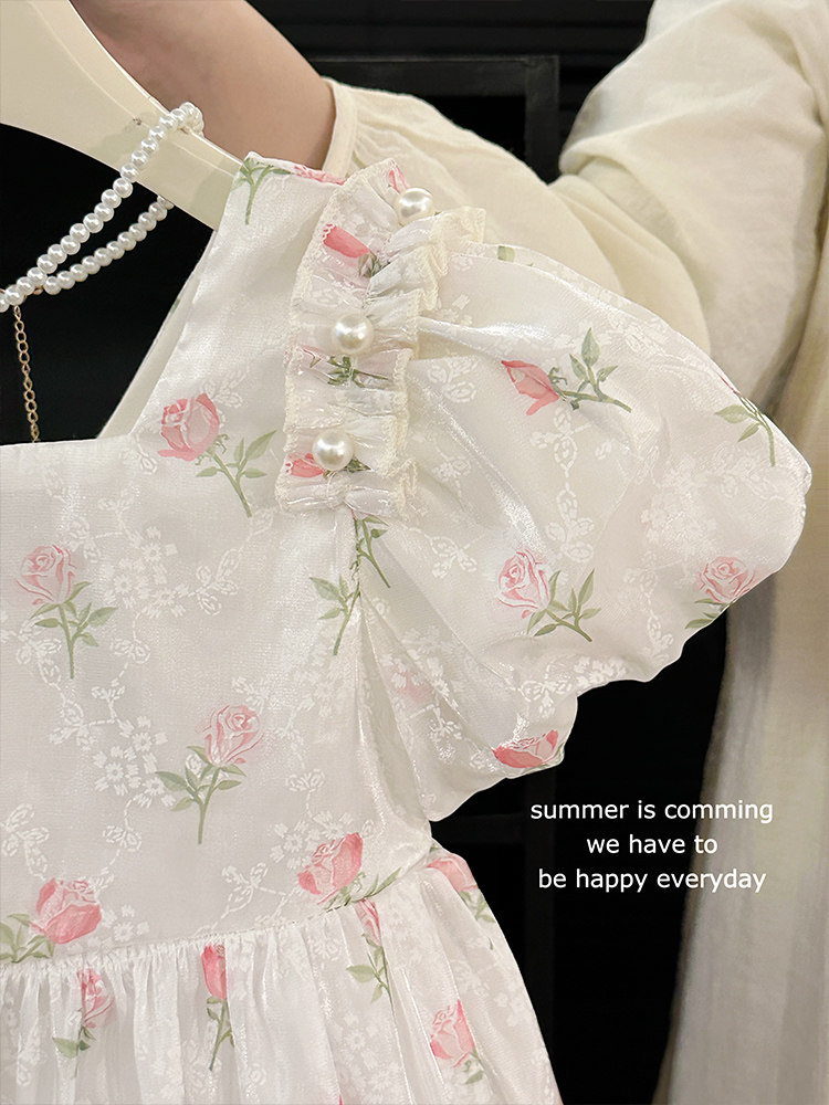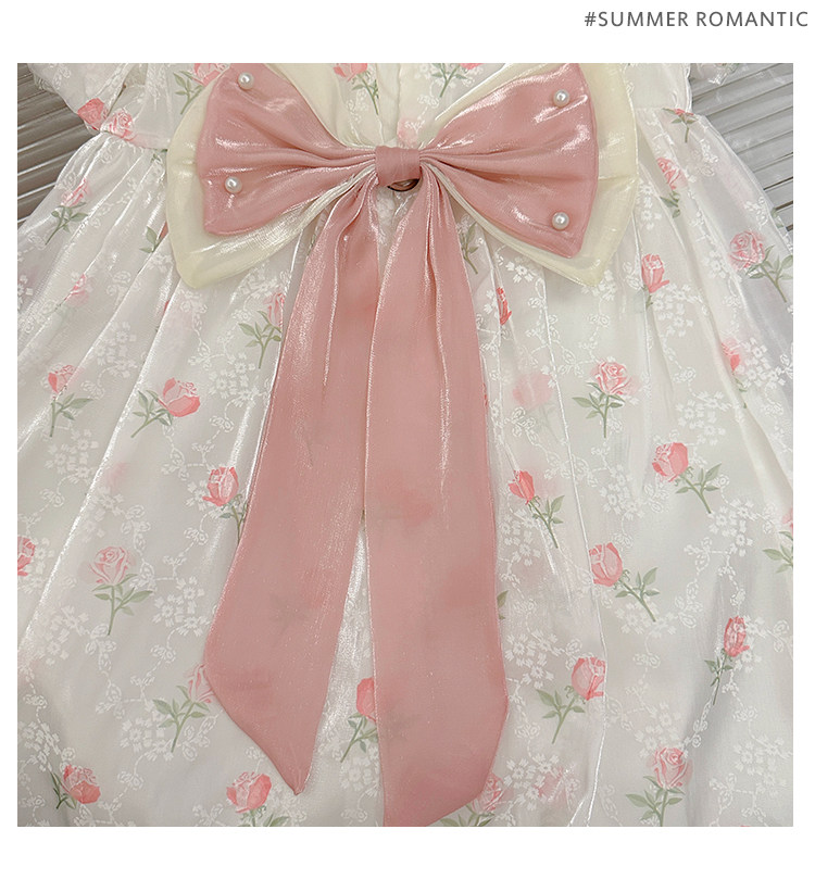 소녀 여름 반팔 원피스 어린이 공연 원피스 빅 보우 D 구슬 원피스 공주 원피스스토어 가기