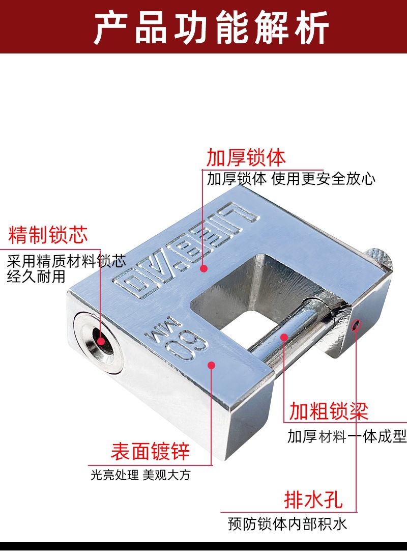 재고 도매 가드 빔 전단 방지 직사각형 자물쇠 빔 블레이드 멀티 사양 멀티 키 직사각형 잠금 수평 오픈 직사각형 잠금